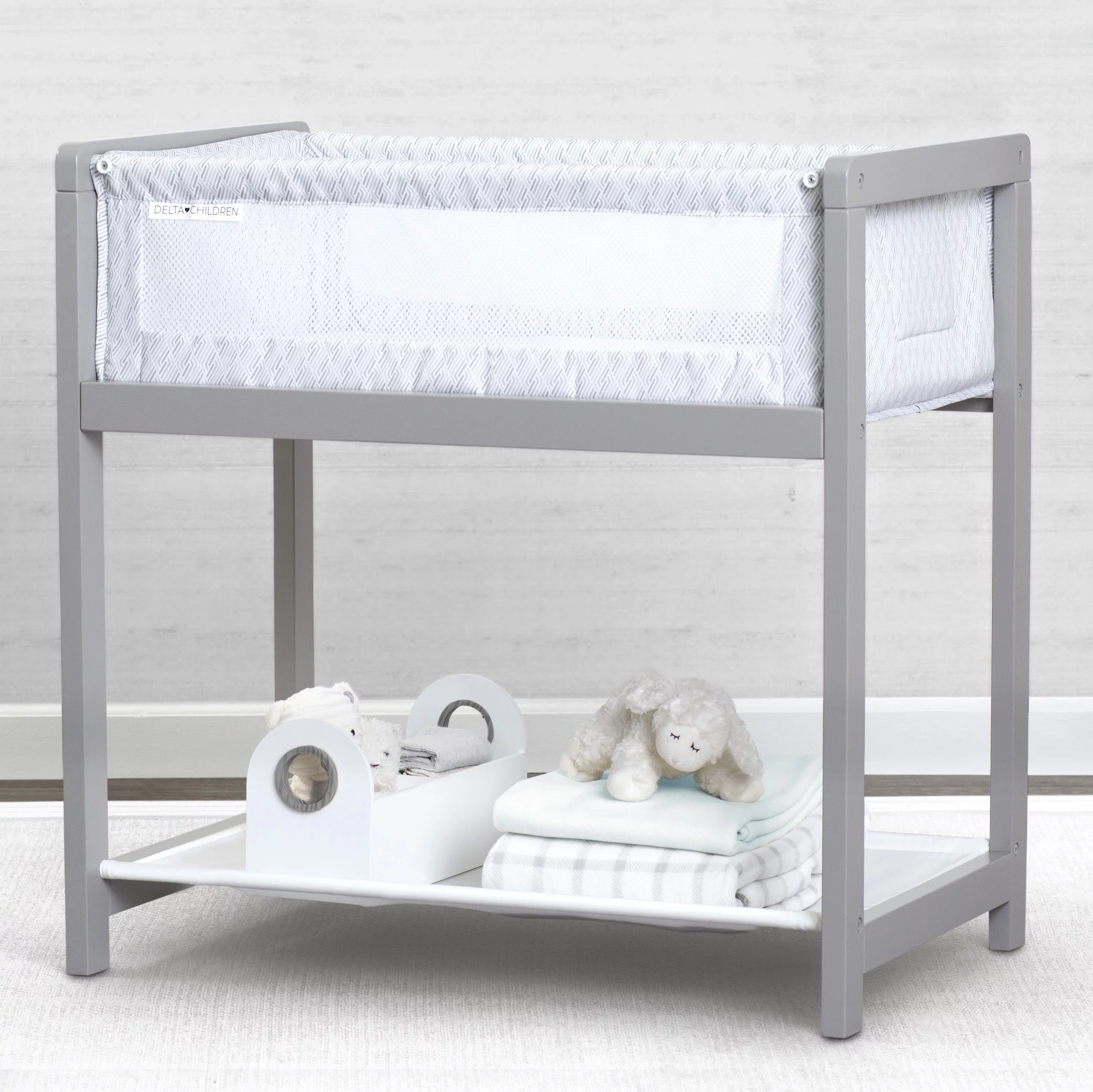 Delta Children Classic Wood Bedside Bassinet Sleeper, Portable Crib with High-End Wood Frame, Link