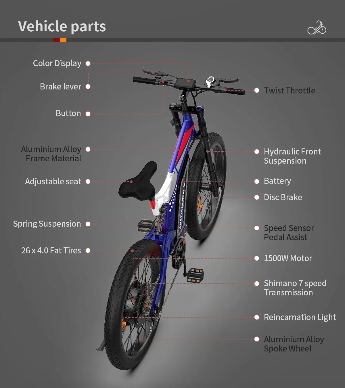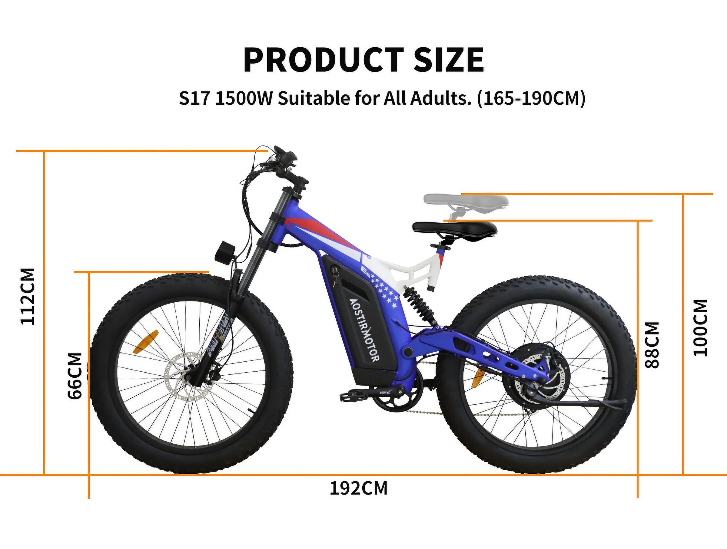AOSTIRMOTOR 26" 1500W Electric Bike Fat Tire P7 48V 20AH Removable Lithium Battery for Adults S17-1500W