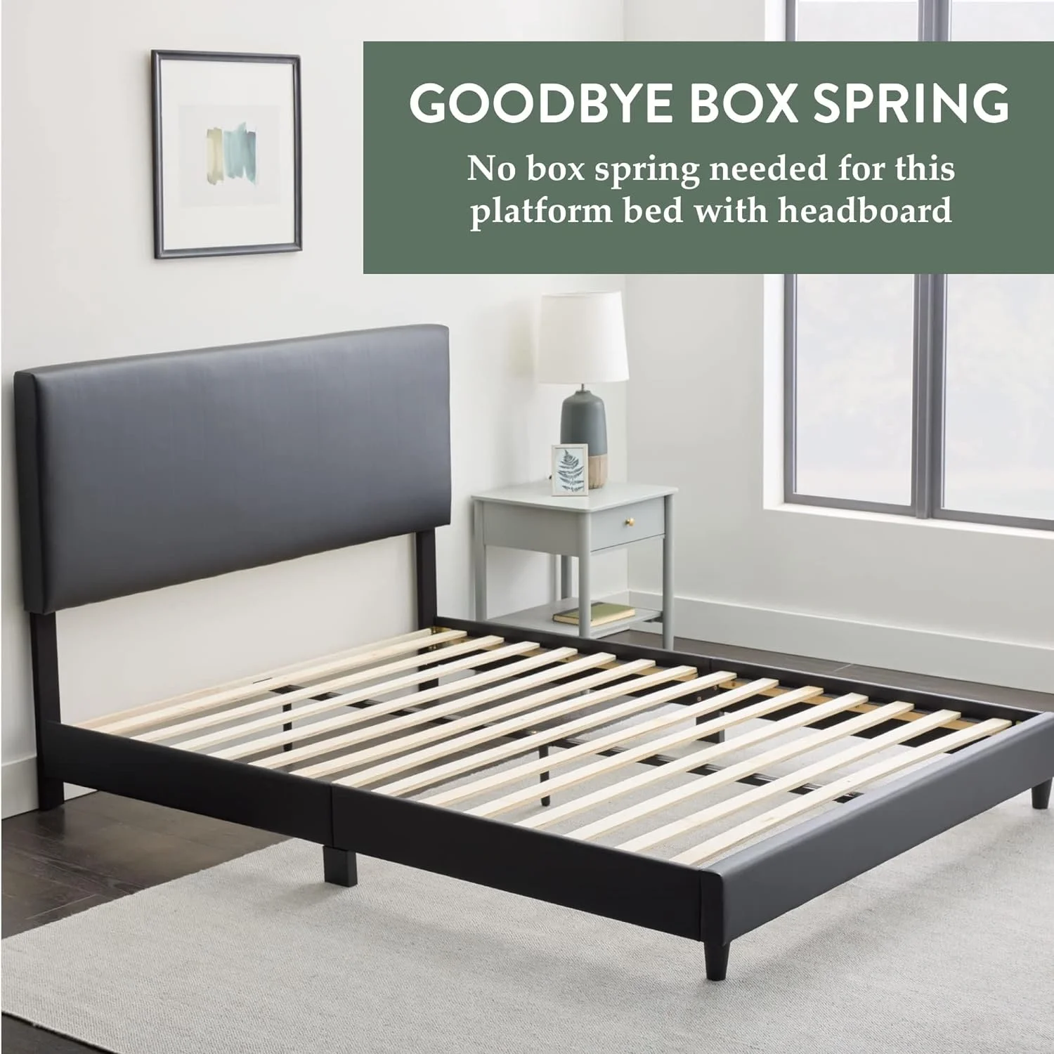 Modern Walnut Full Floating Platform Bed Frame with Contemporary Design