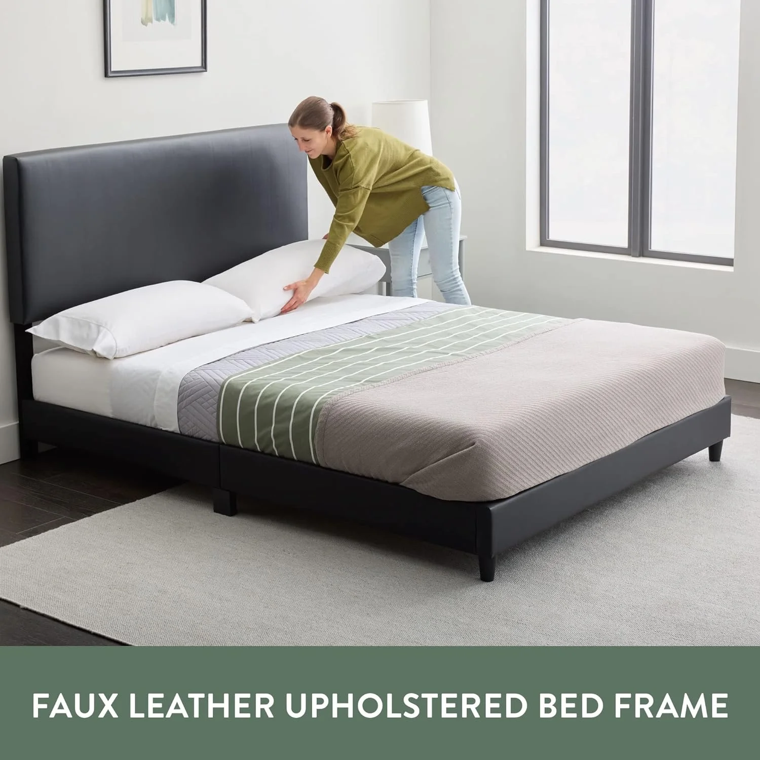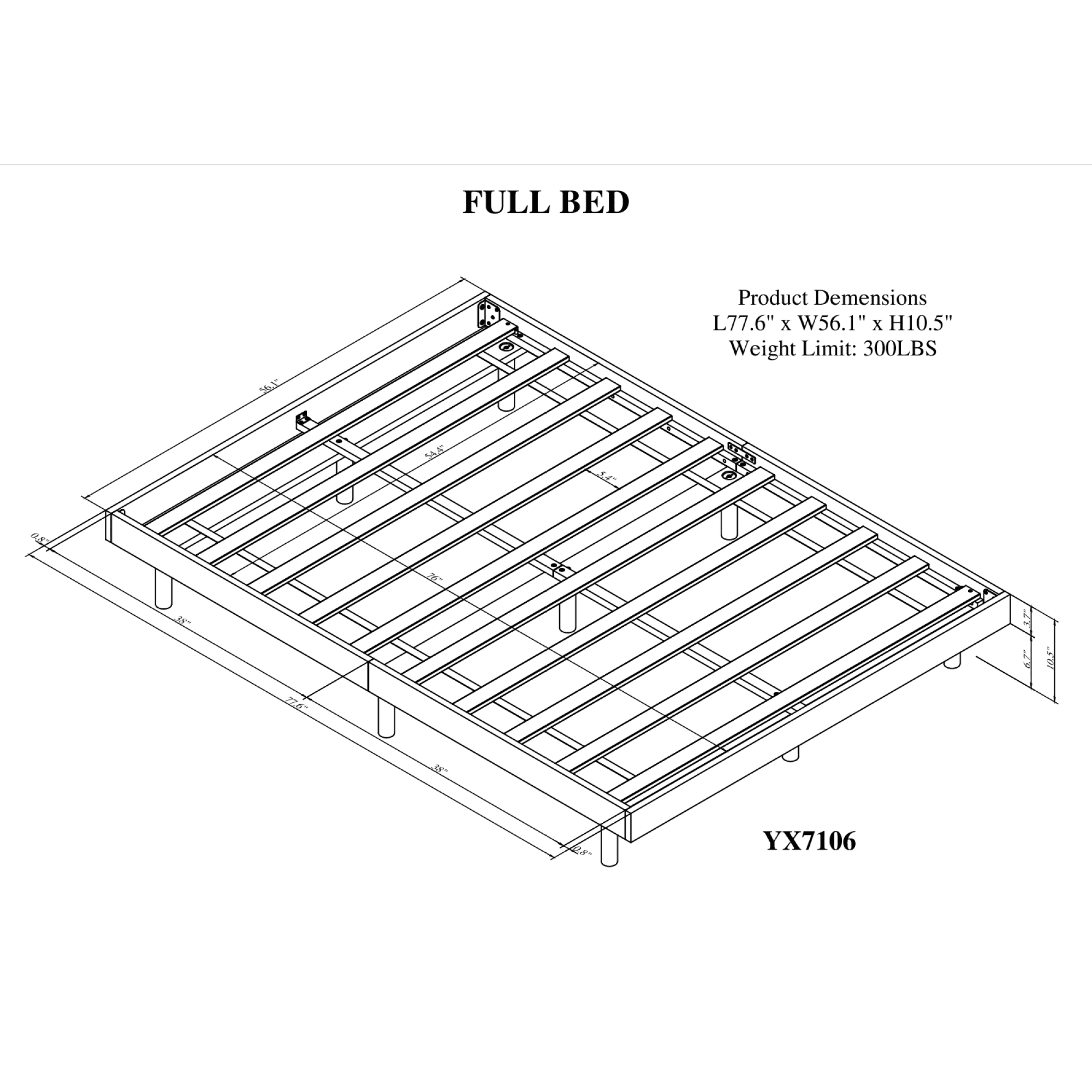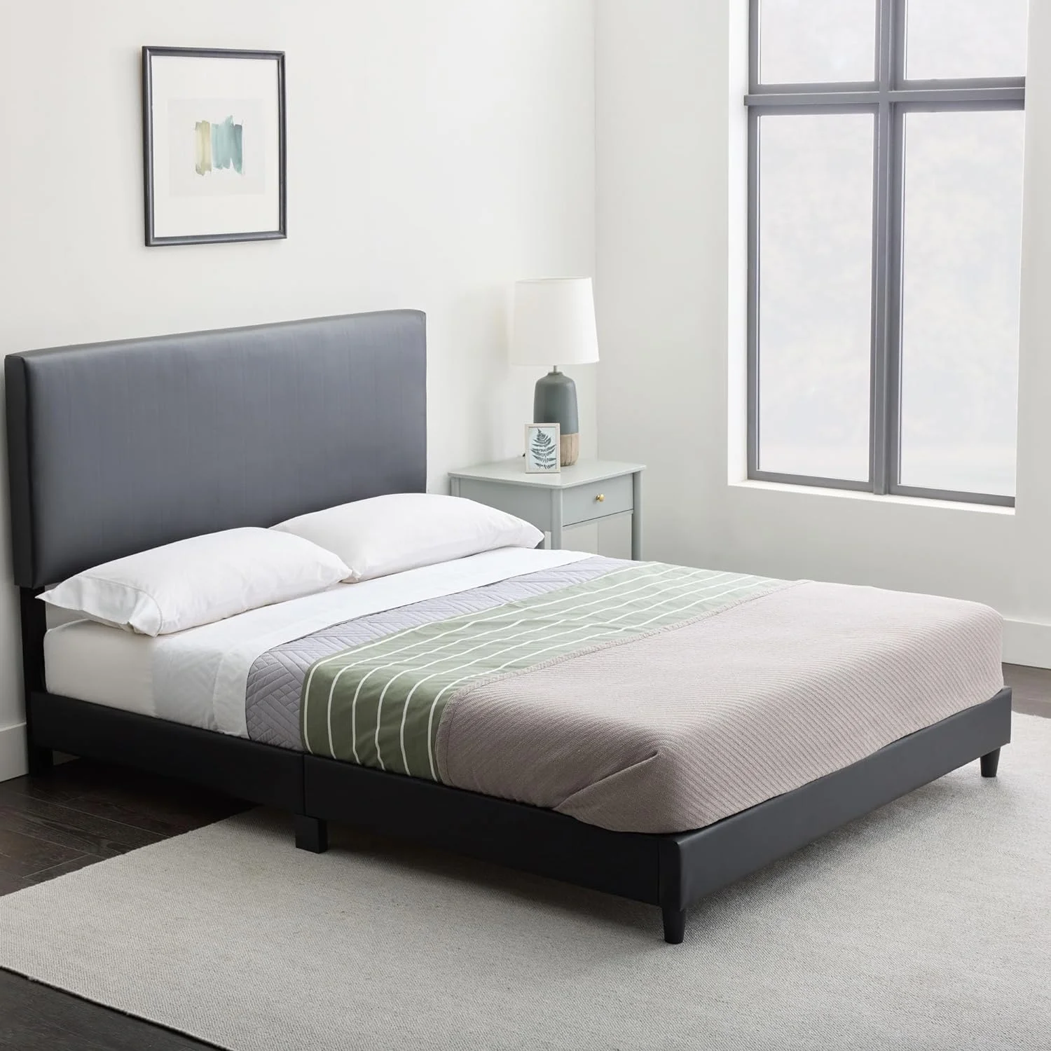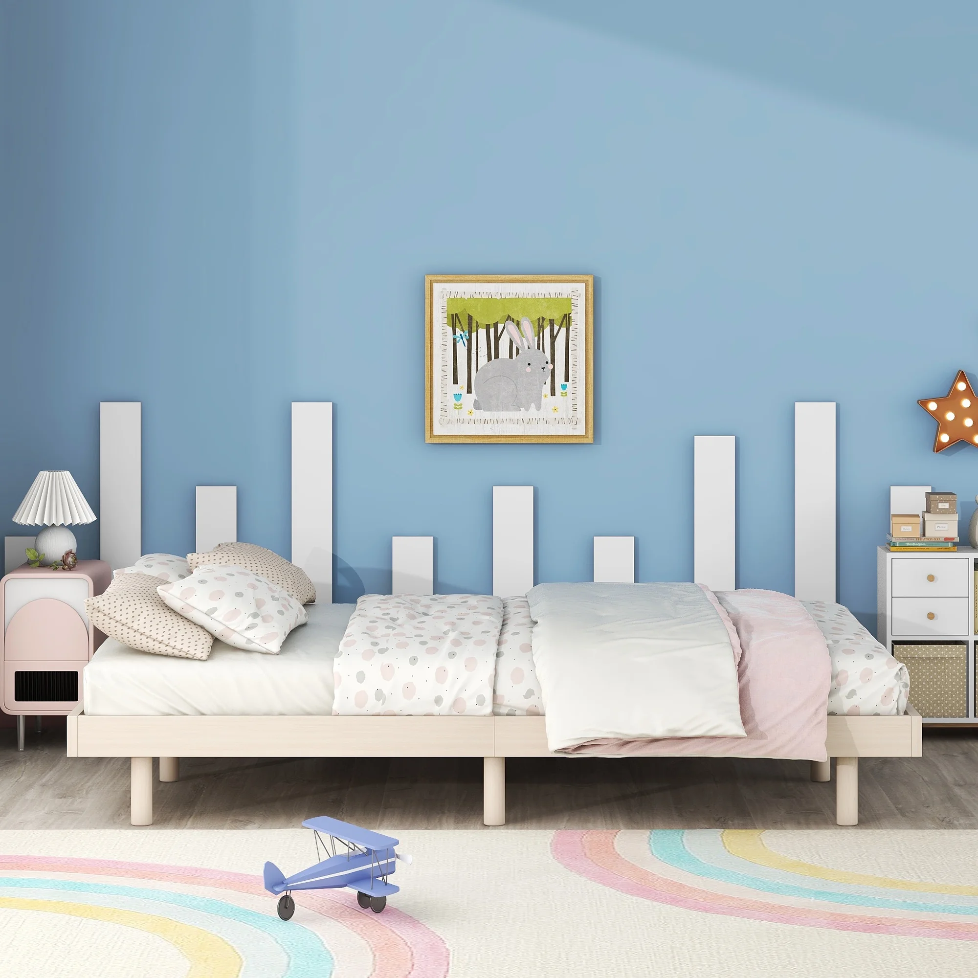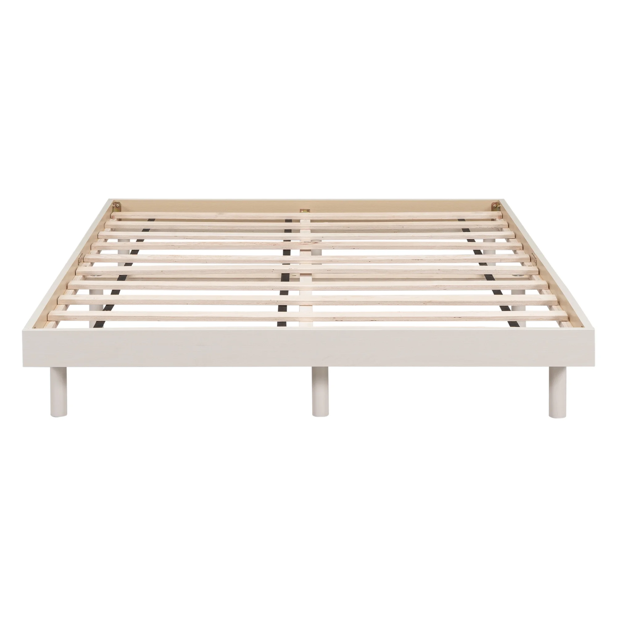 Contemporary White Washed Full Floating Platform Bed Frame with Modern Design