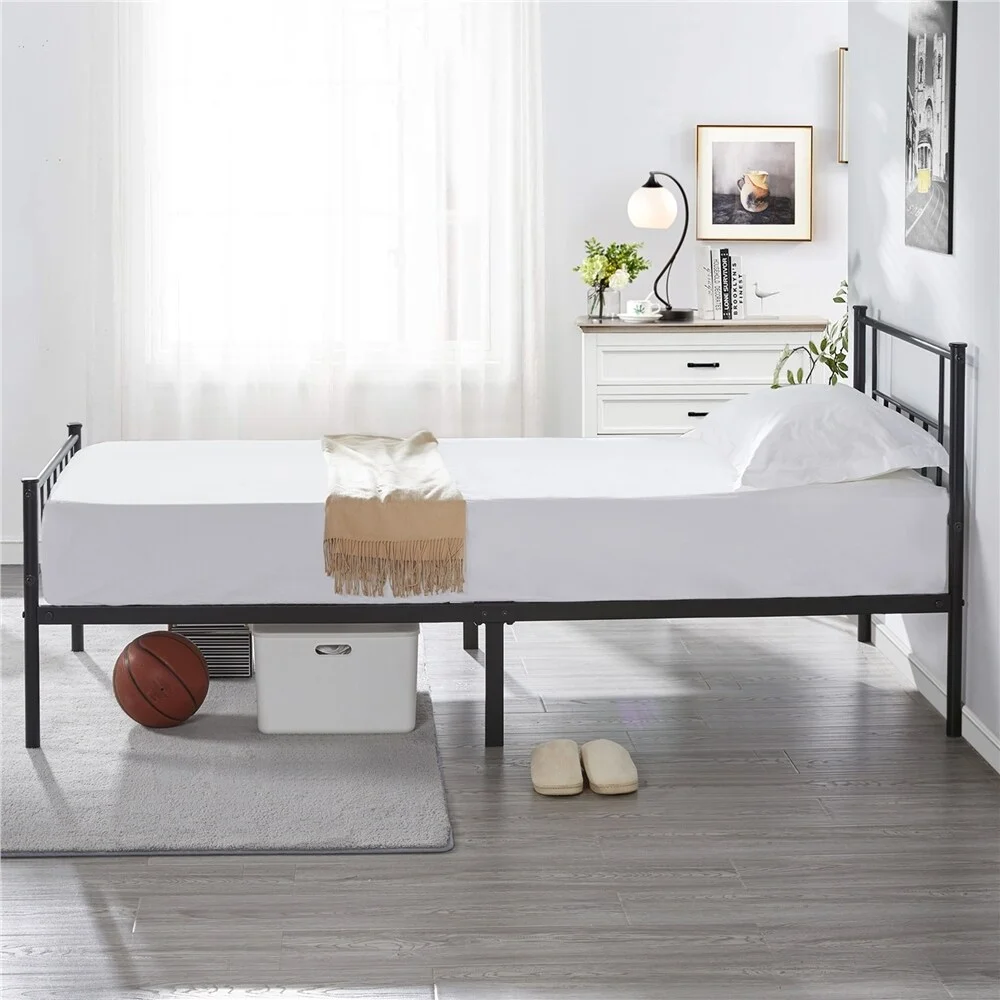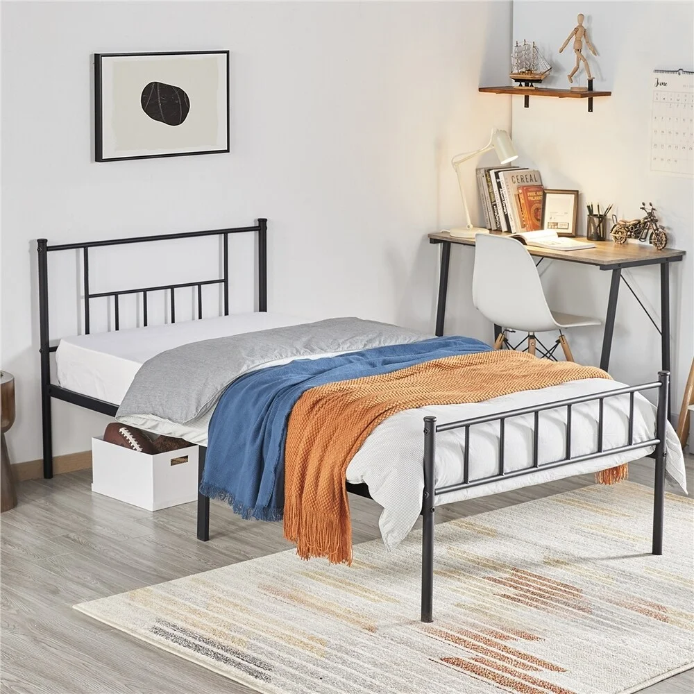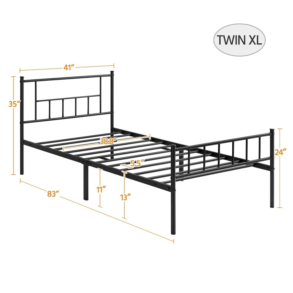 Yaheetech Basic Metal Bed Frame with Headboard and Footboard Bed Foundation Black Twin XL
