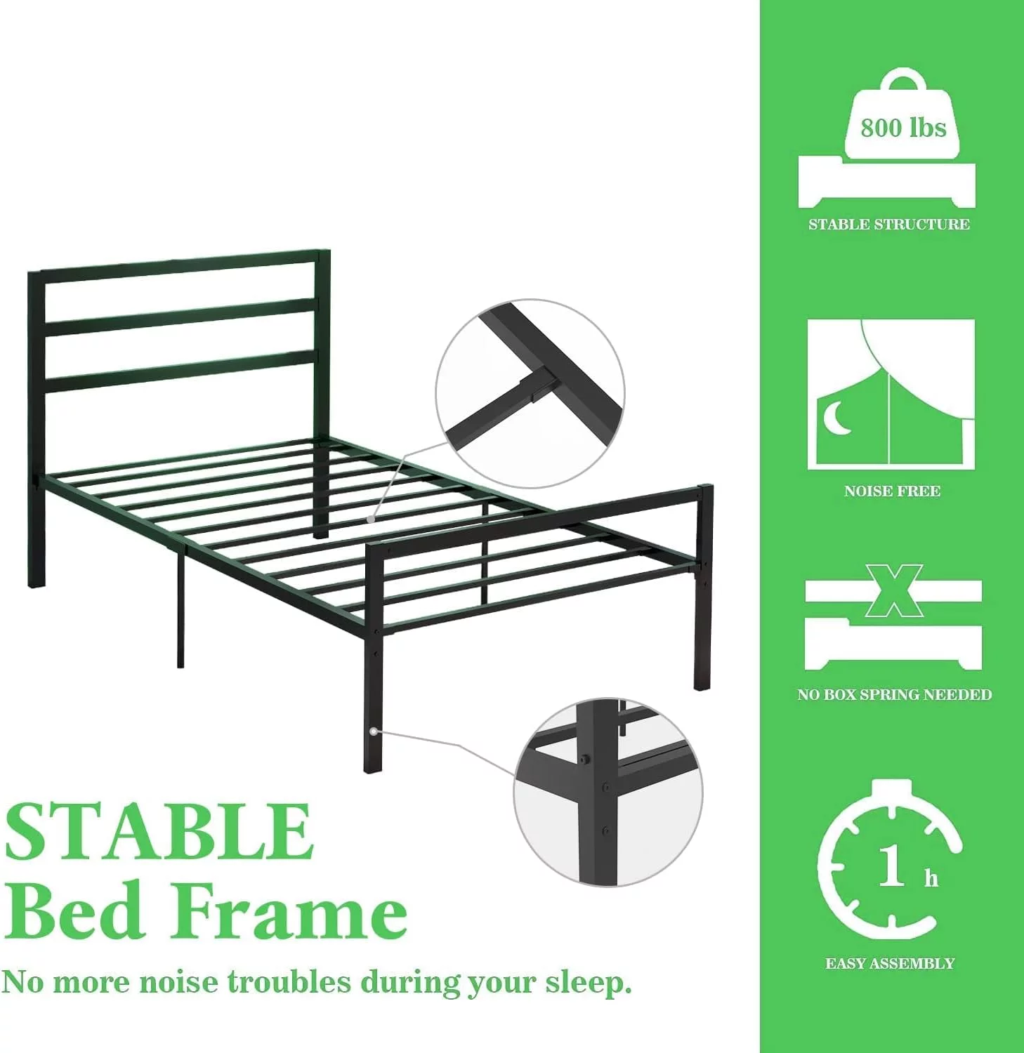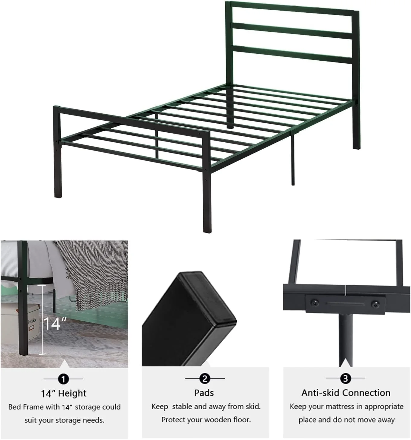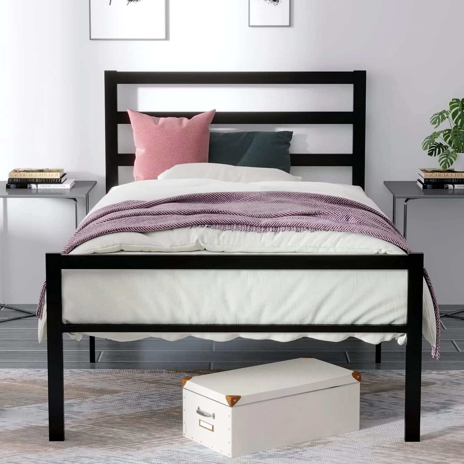 Yaheetech Basic Metal Bed Frame with Headboard and Footboard Bed Foundation Black Twin XL