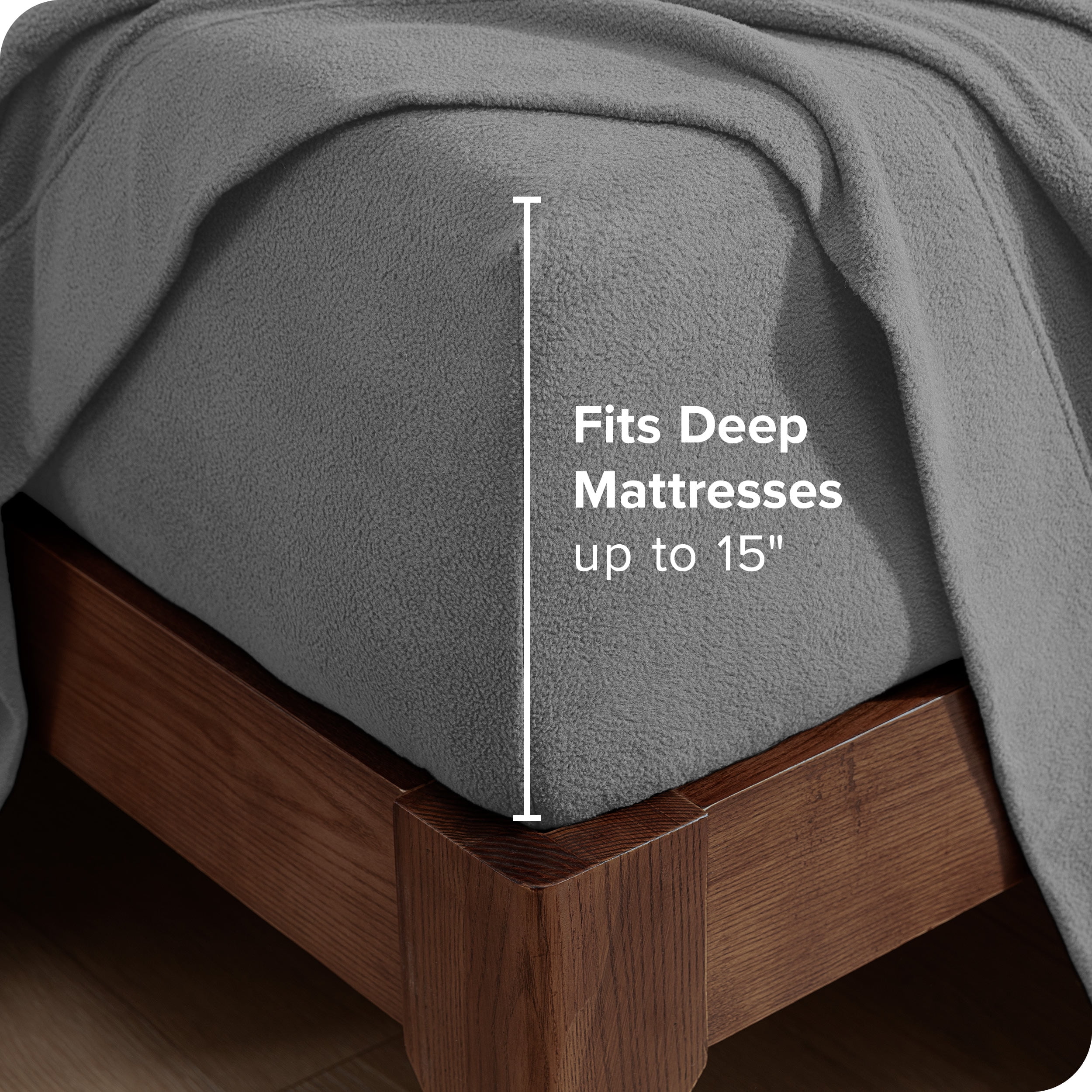 Bare Home Cozy Fleece Sheet Set - Extra Plush Polar Fleece - Deep Pocket - Split Head Flex King, Grey