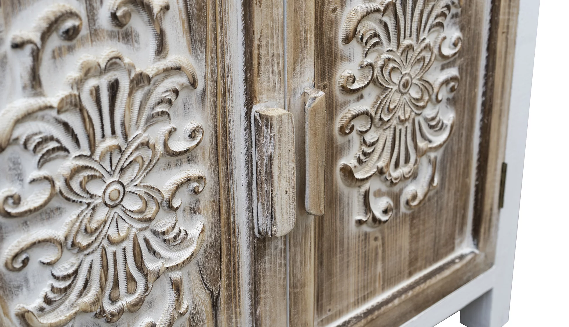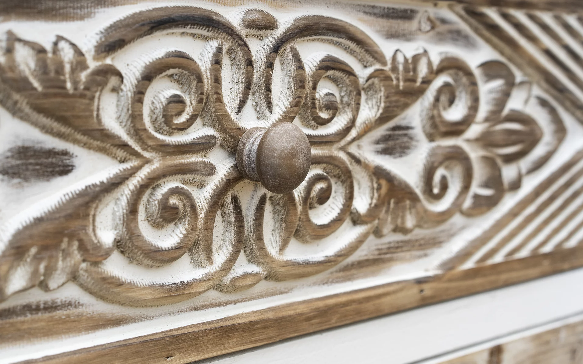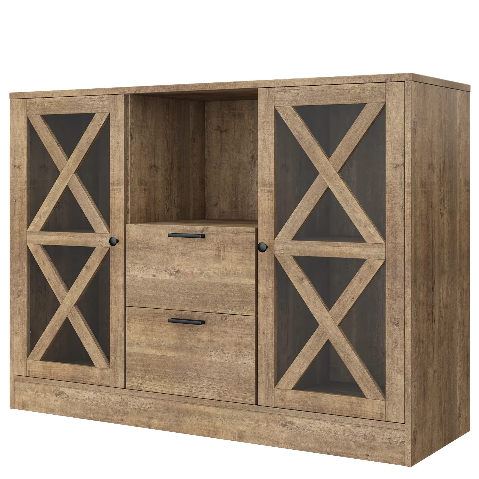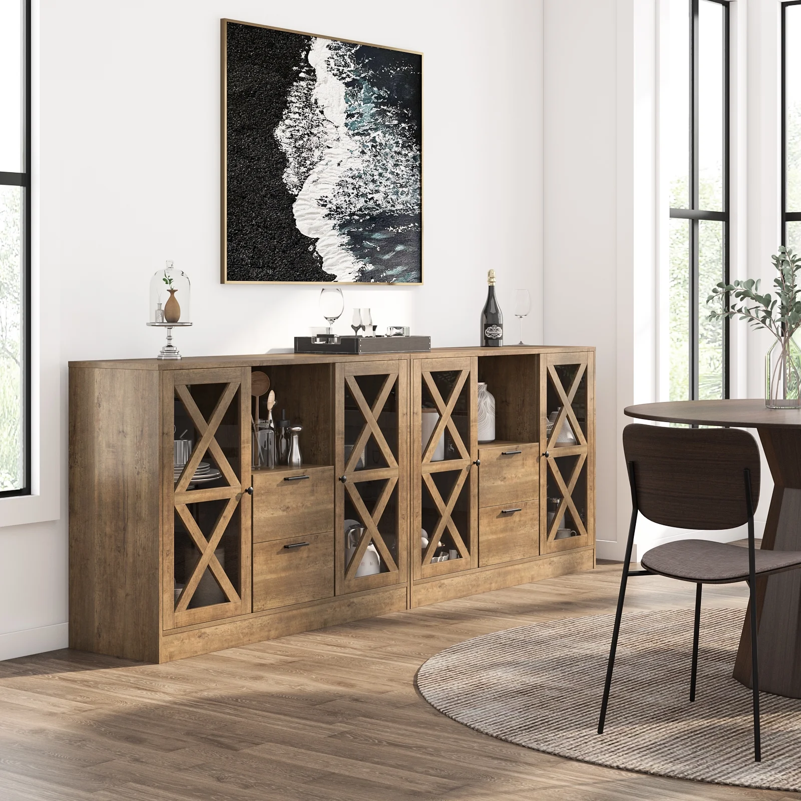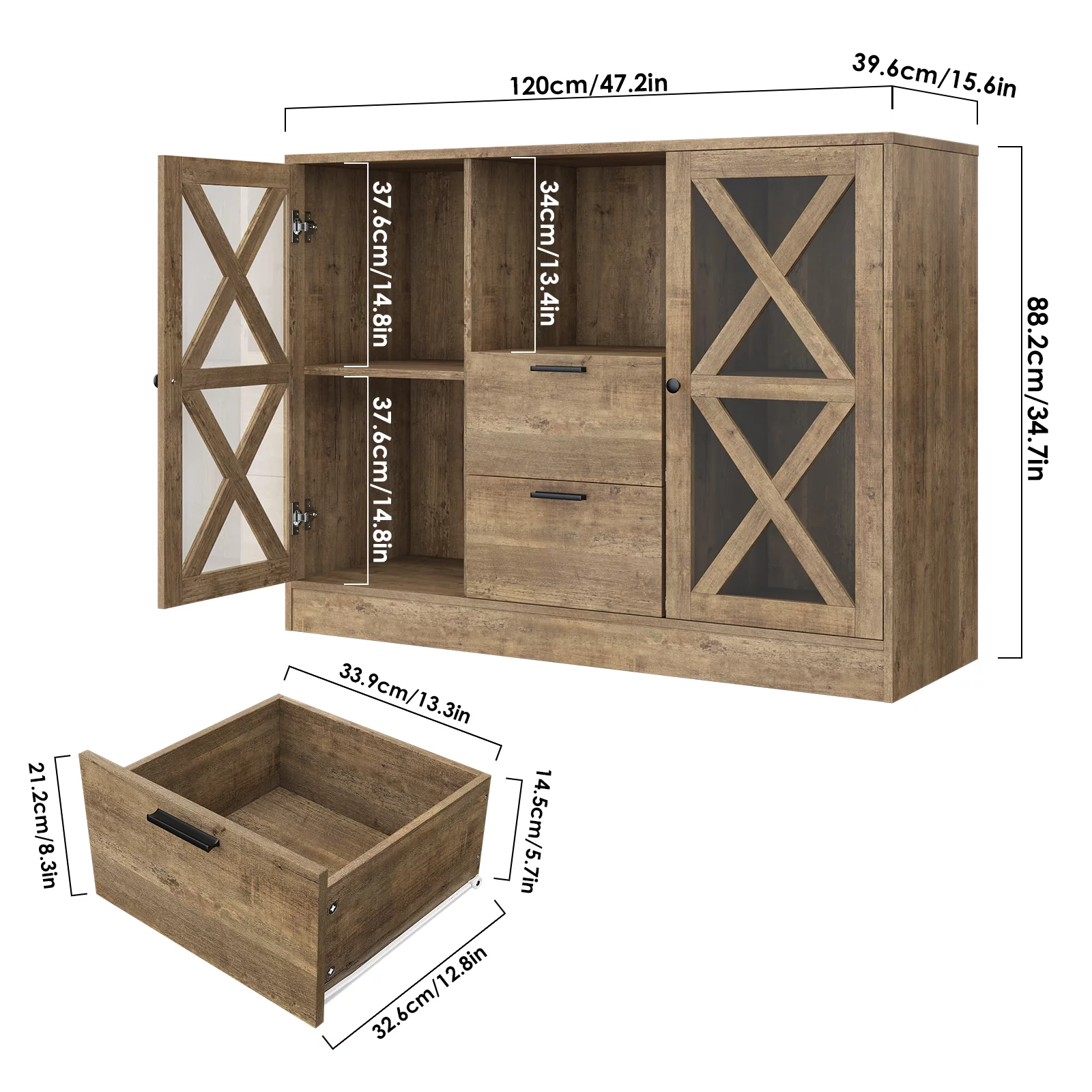 Vintage Style Wood Storage Cabinet with Metal Handles and 4 Drawers for Dining Room, Living Room, Natural