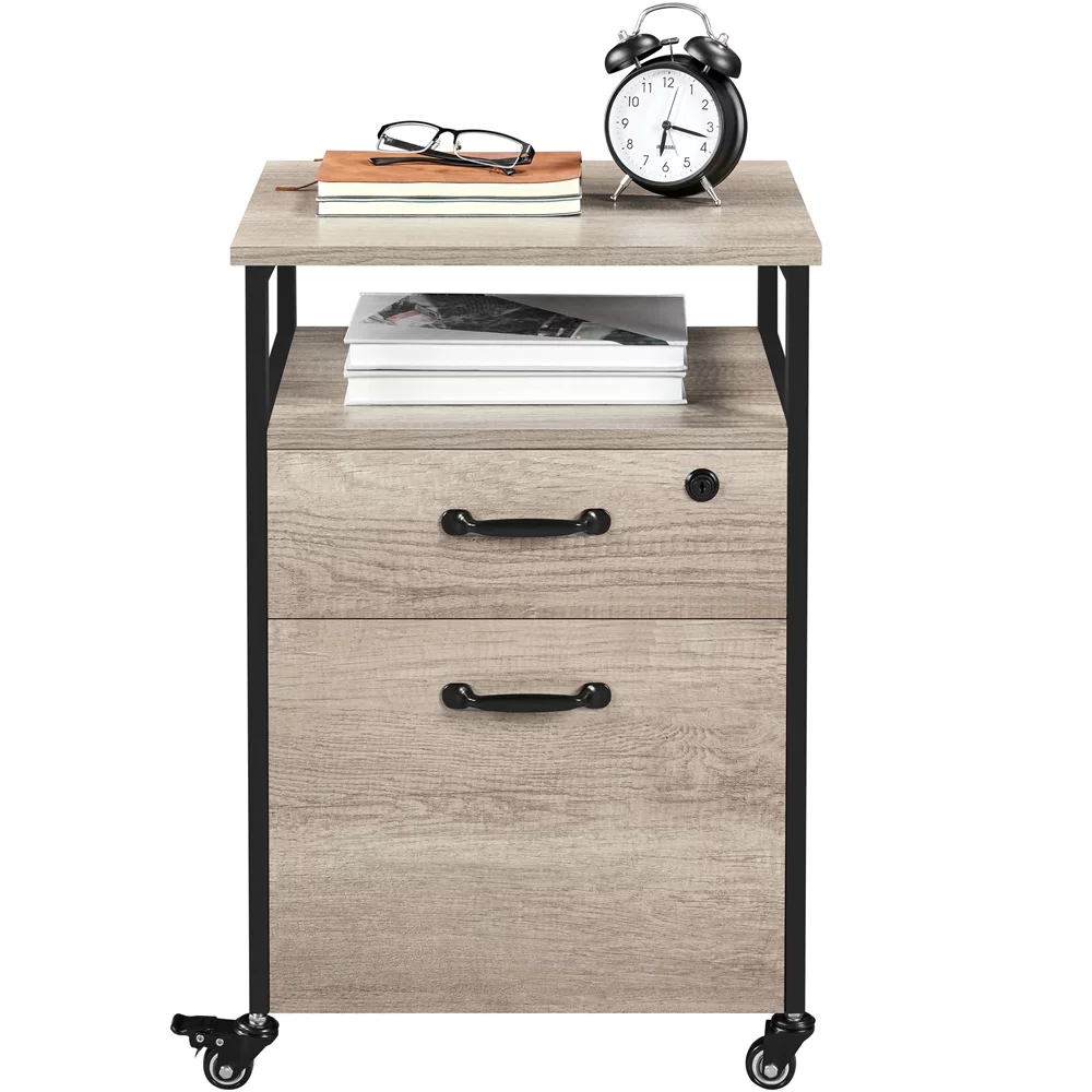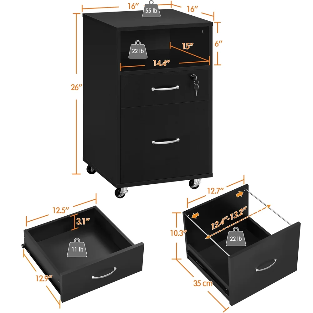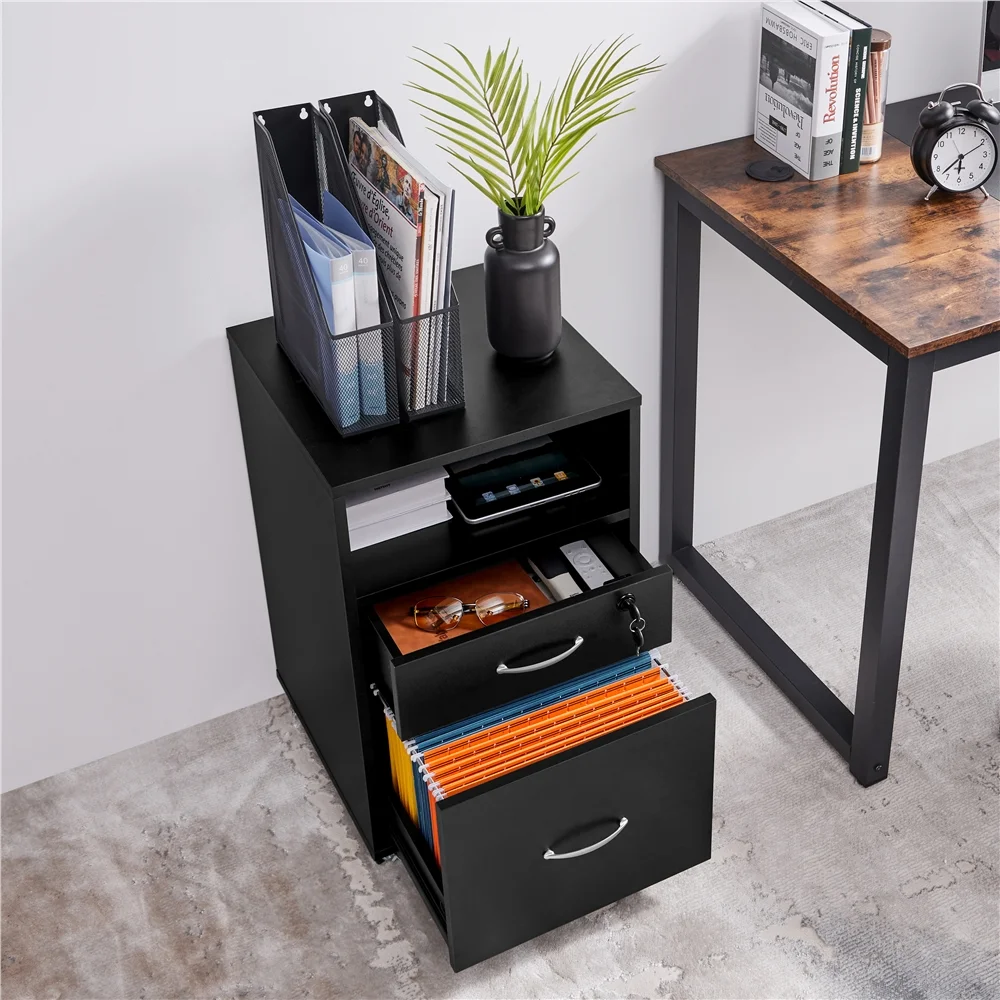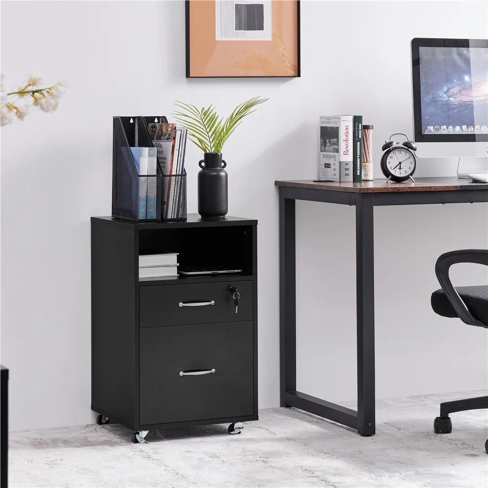 SmileMart 2- Drawer Wooden Vintage Mobile File Cabinet for Home and Office, Black