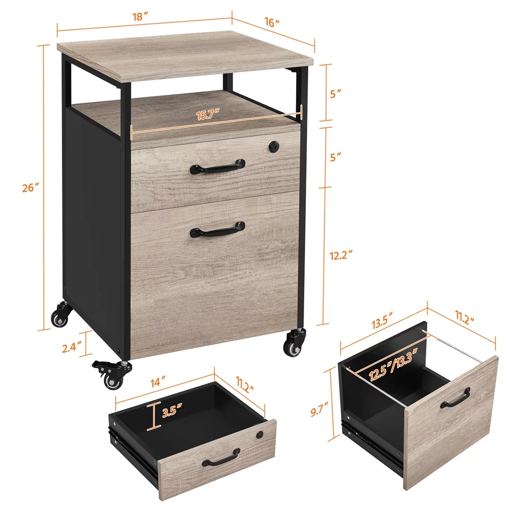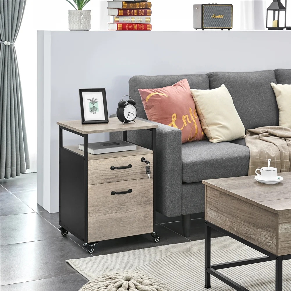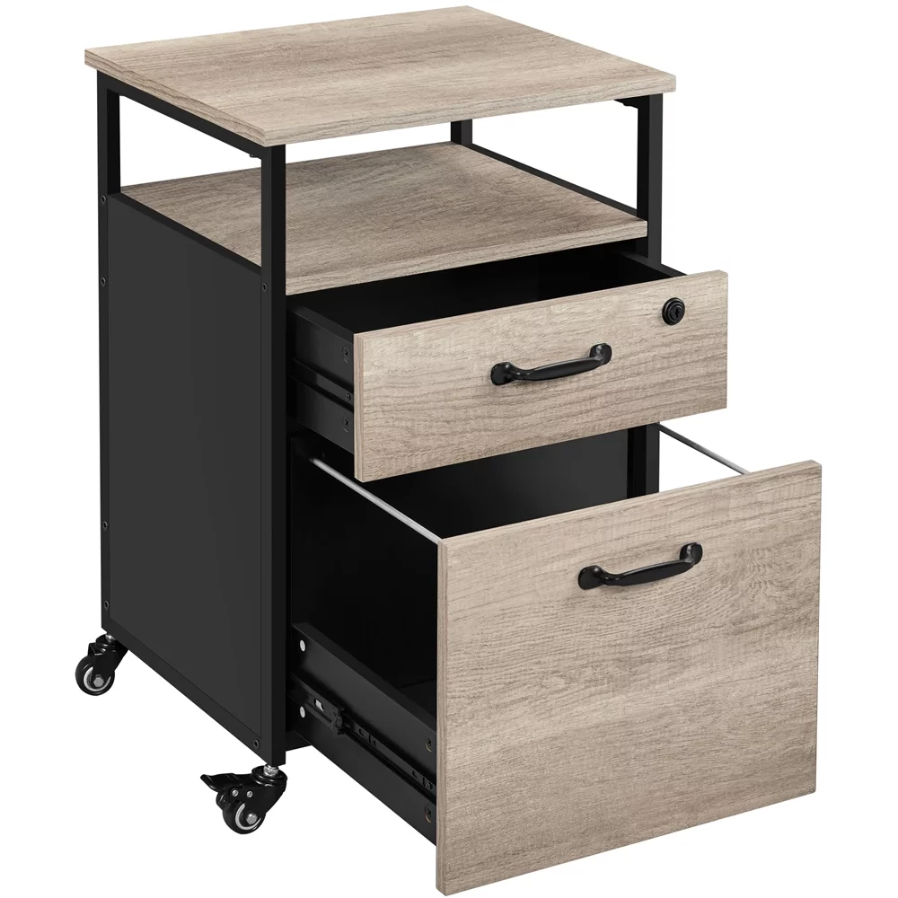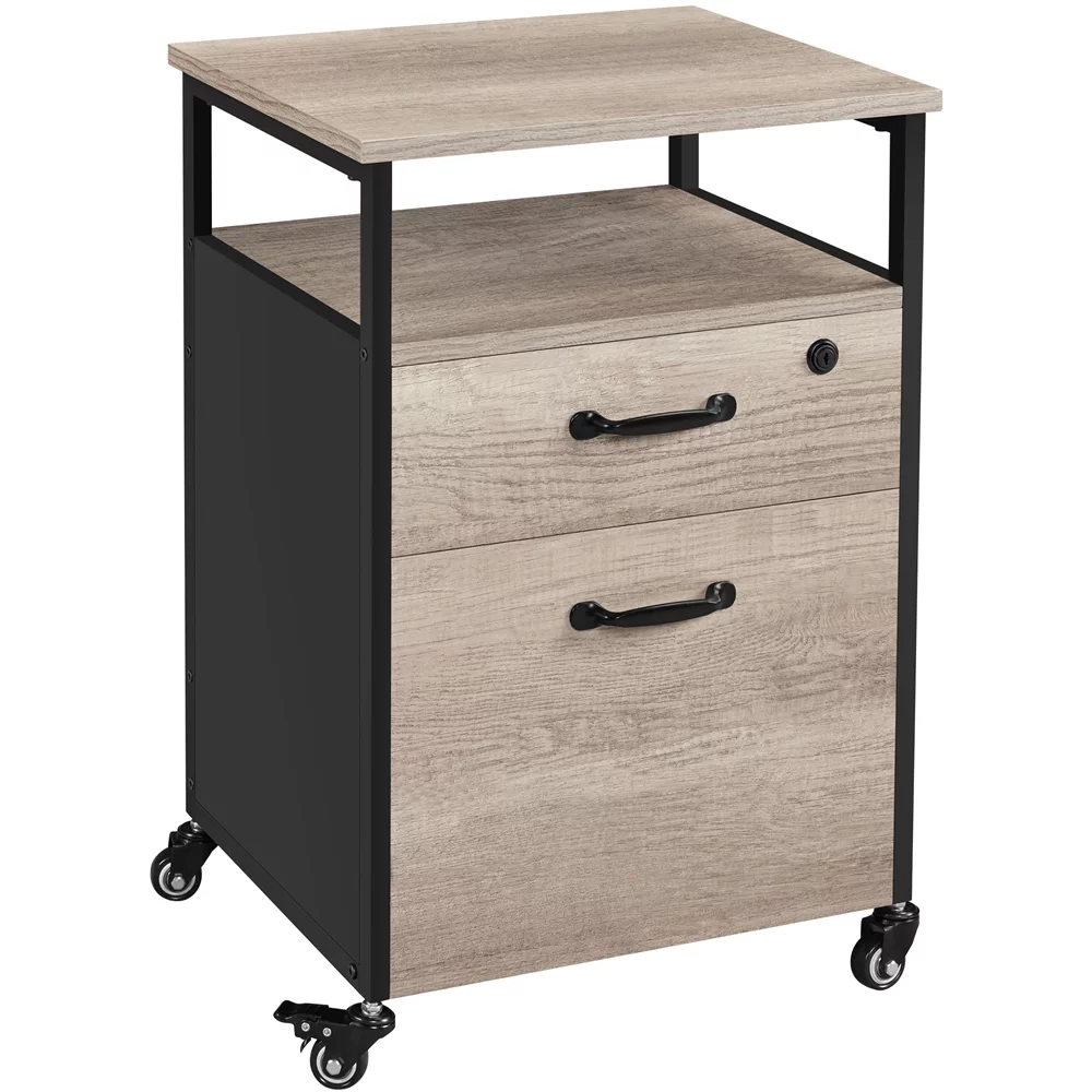 SmileMart 2- Drawer Wooden Vintage Mobile File Cabinet for Home and Office, Black