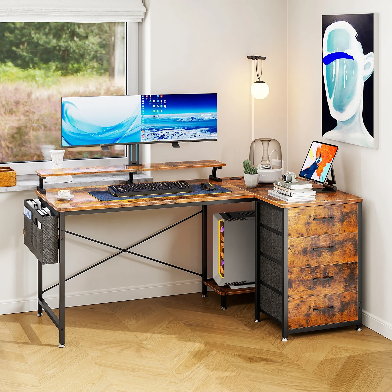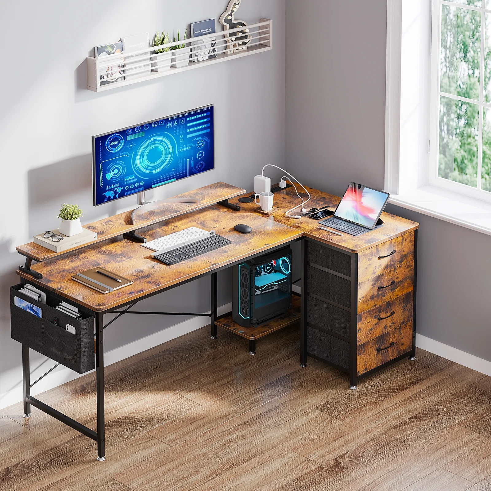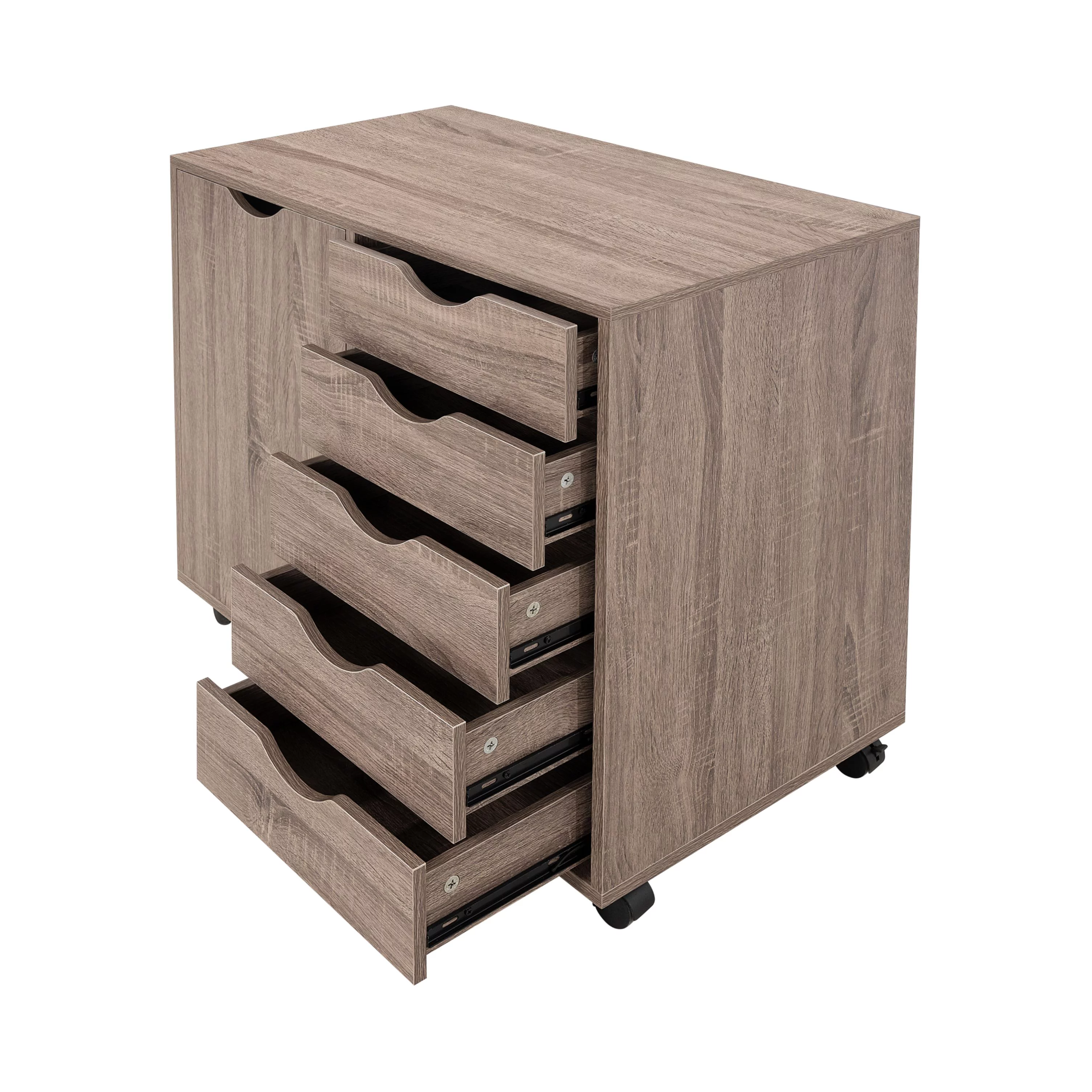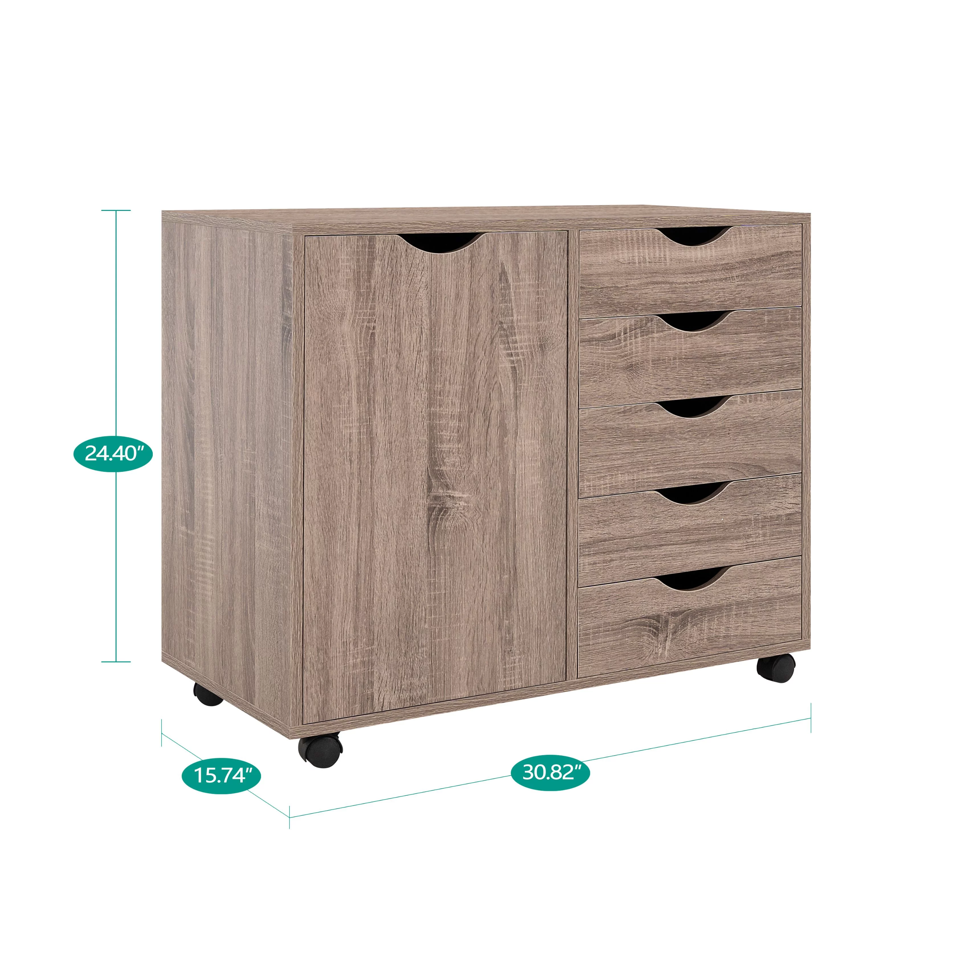 Smile Mart 3-Drawer Mobile Vintage File Cabinet with Power Outlet for Home and Office Black, Rustic Brown