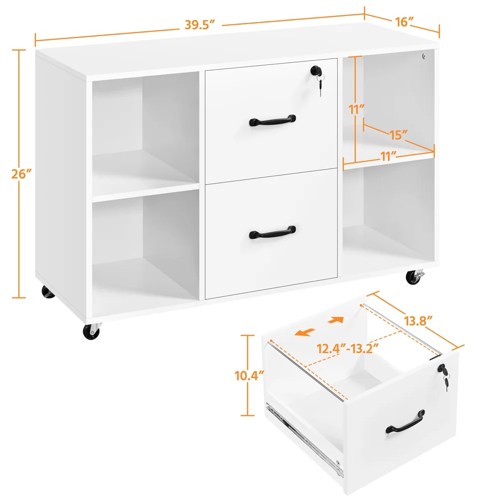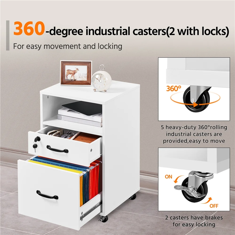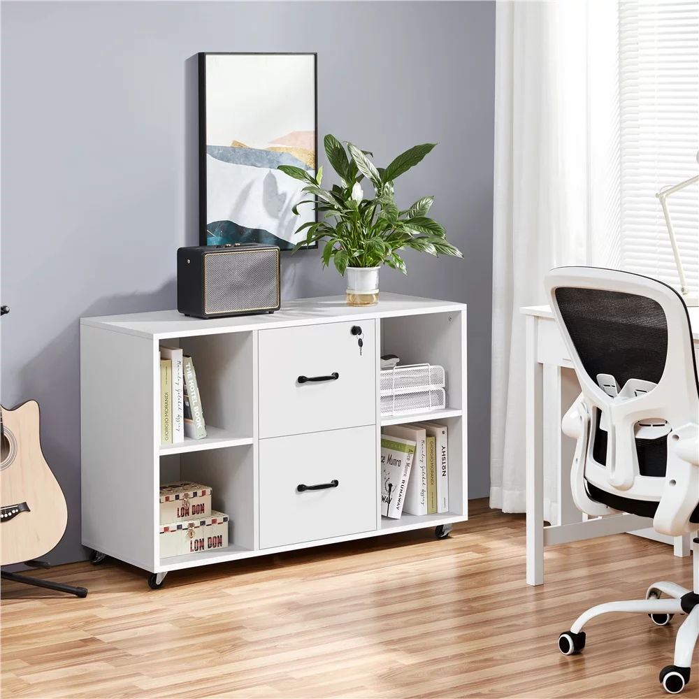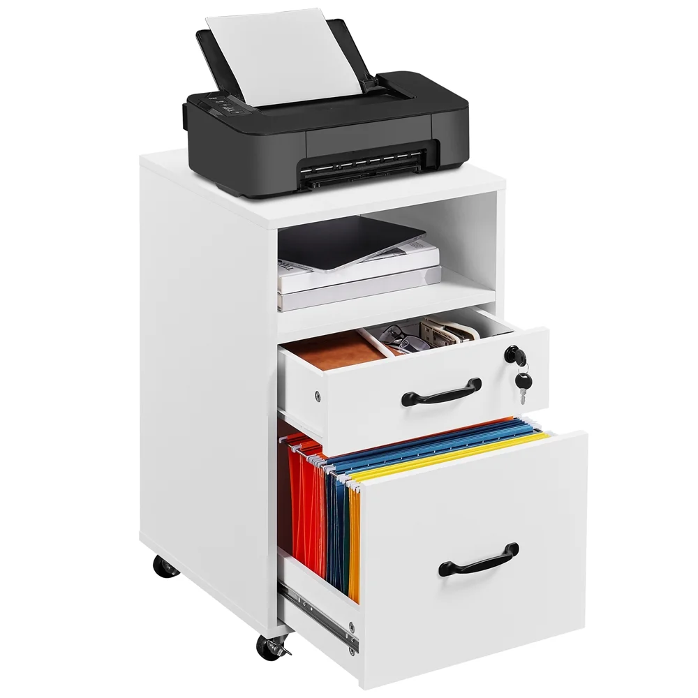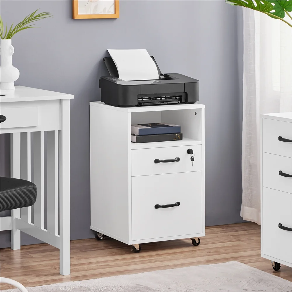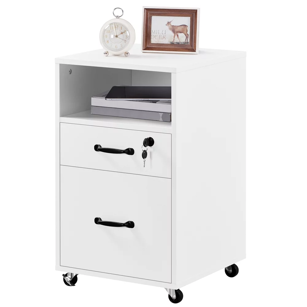 SmileMart Mobile Vintage File Cabinet with 2-Drawer for Home and Office, White