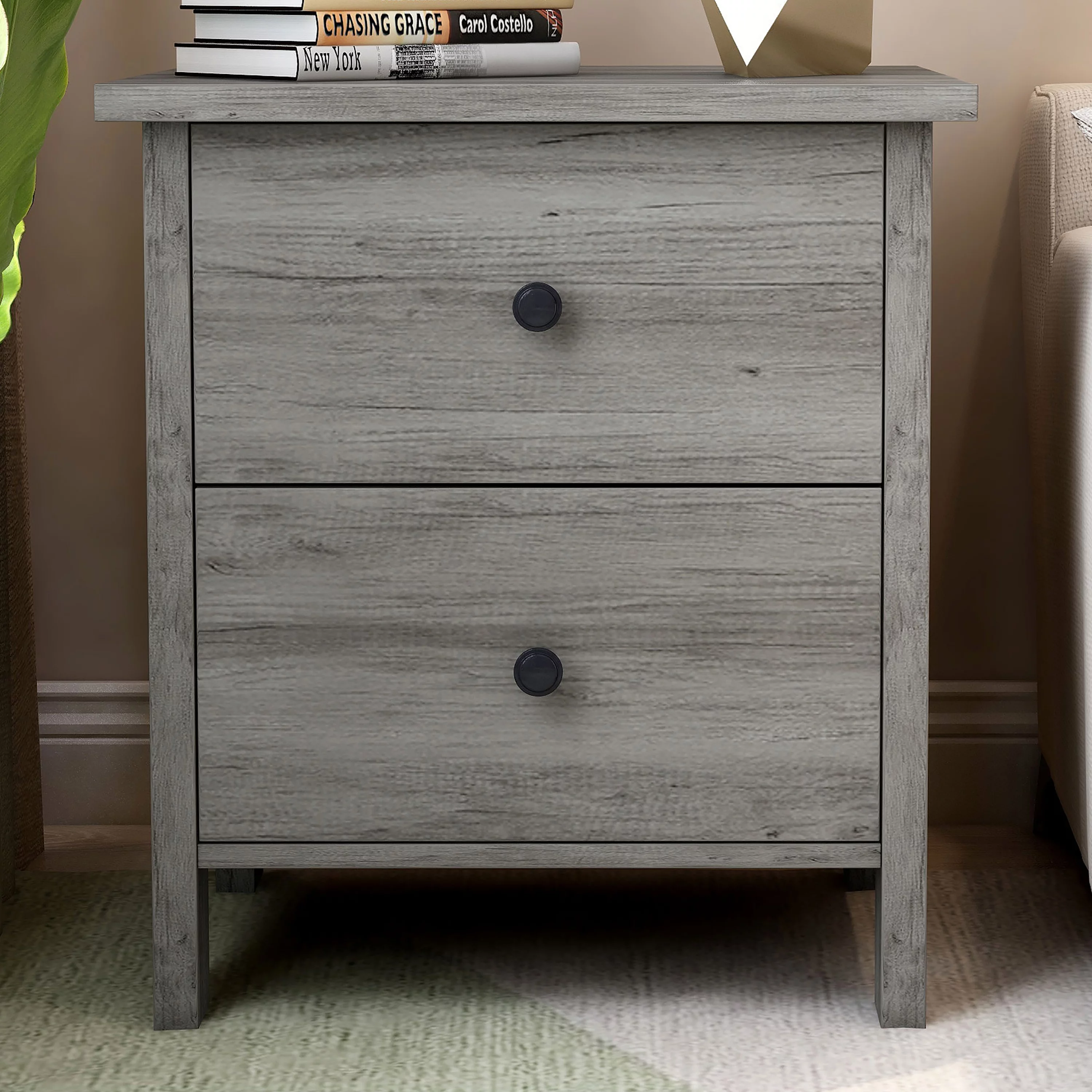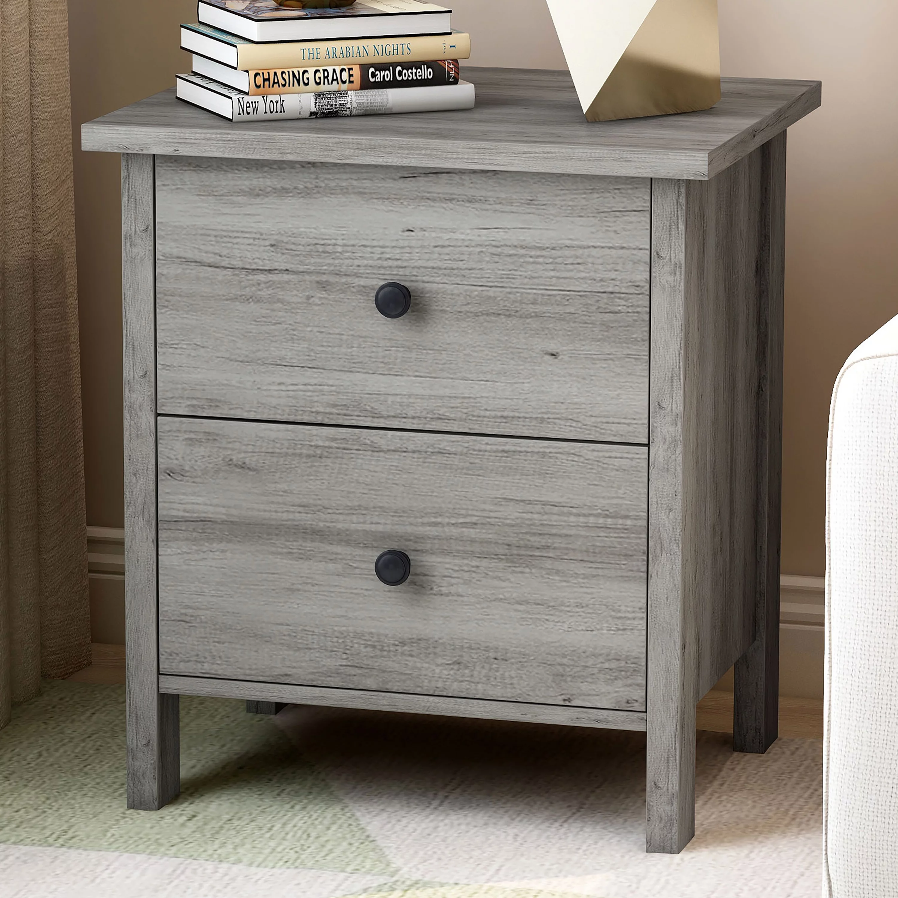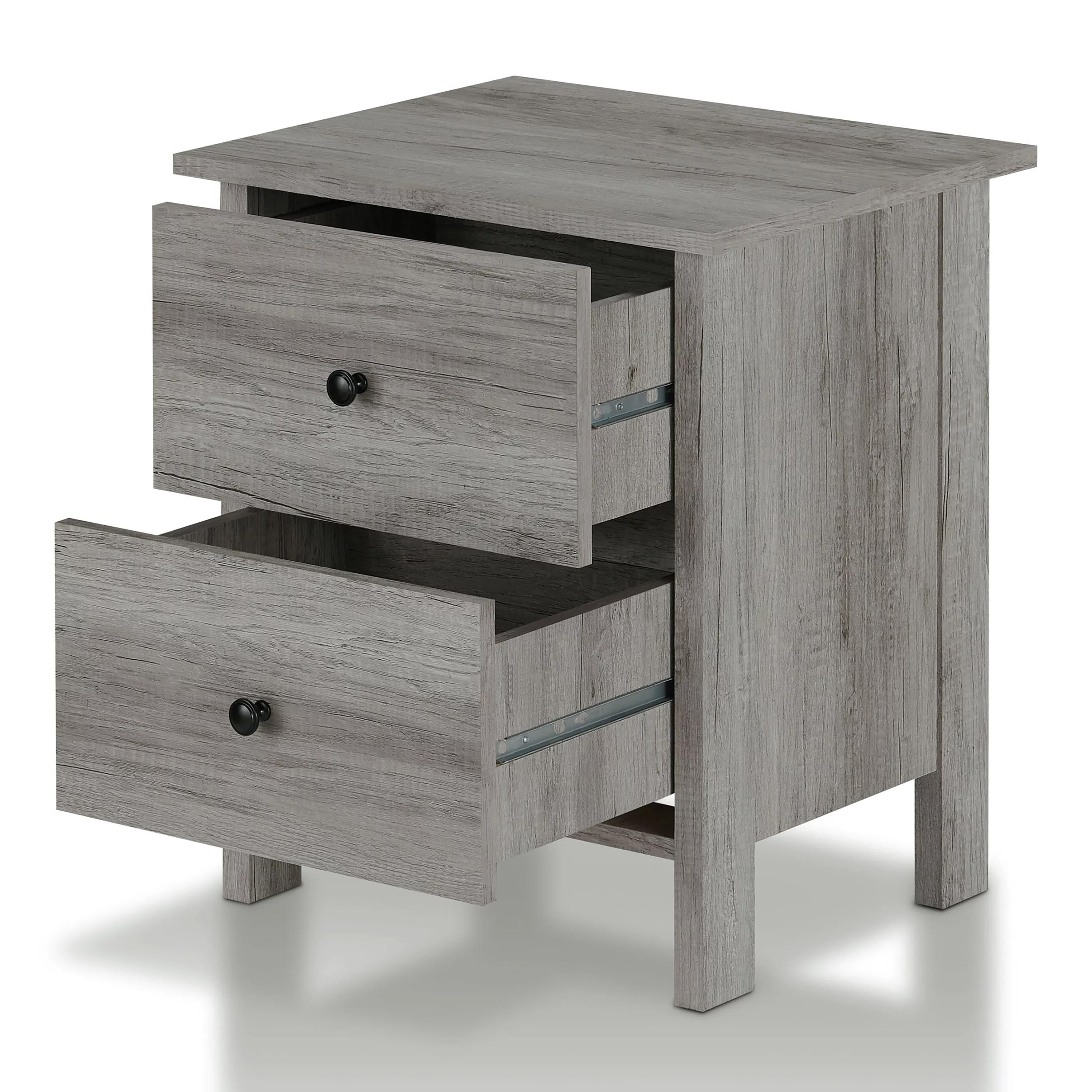 Furniture of America Abbie Farmhouse 2-Drawer Nightstand, Vintage Gray Oak