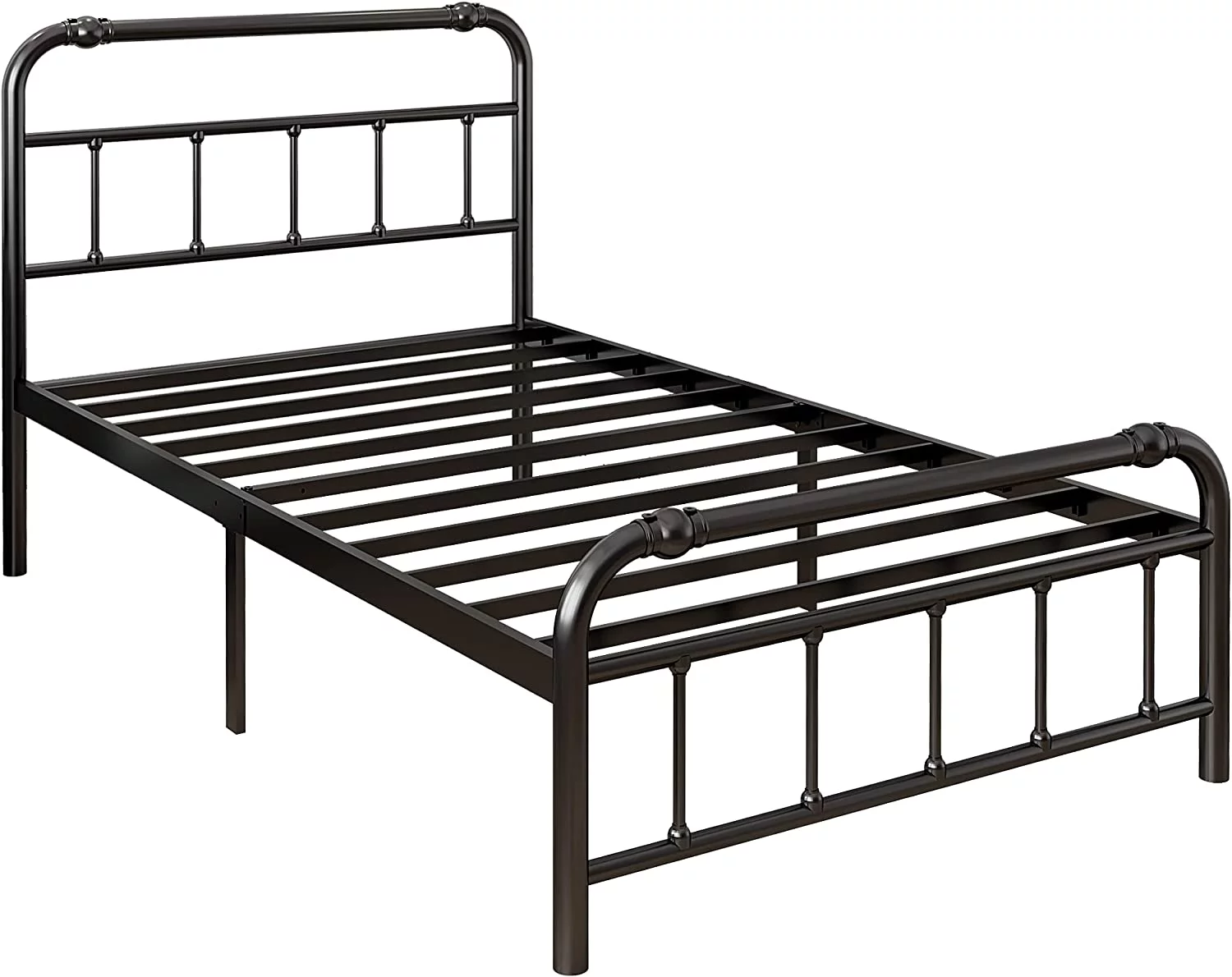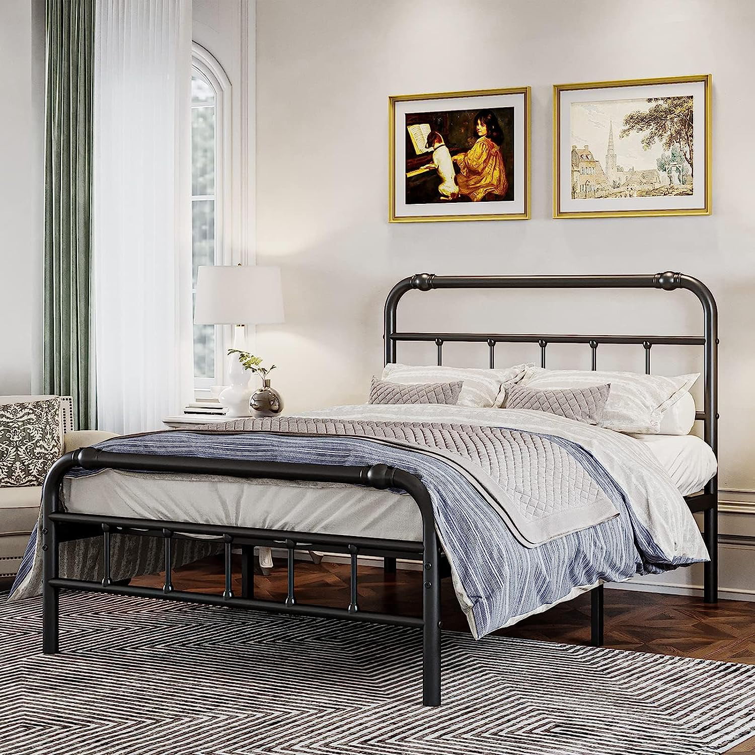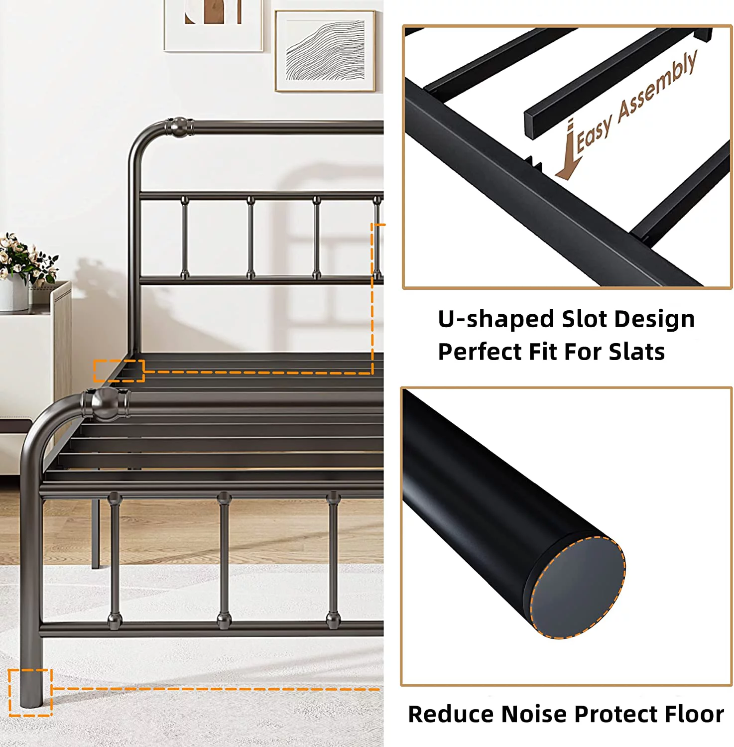 3-Piece Bedroom Sets, Queen Size Metal Bed Frame and 2 Brown Nightstands