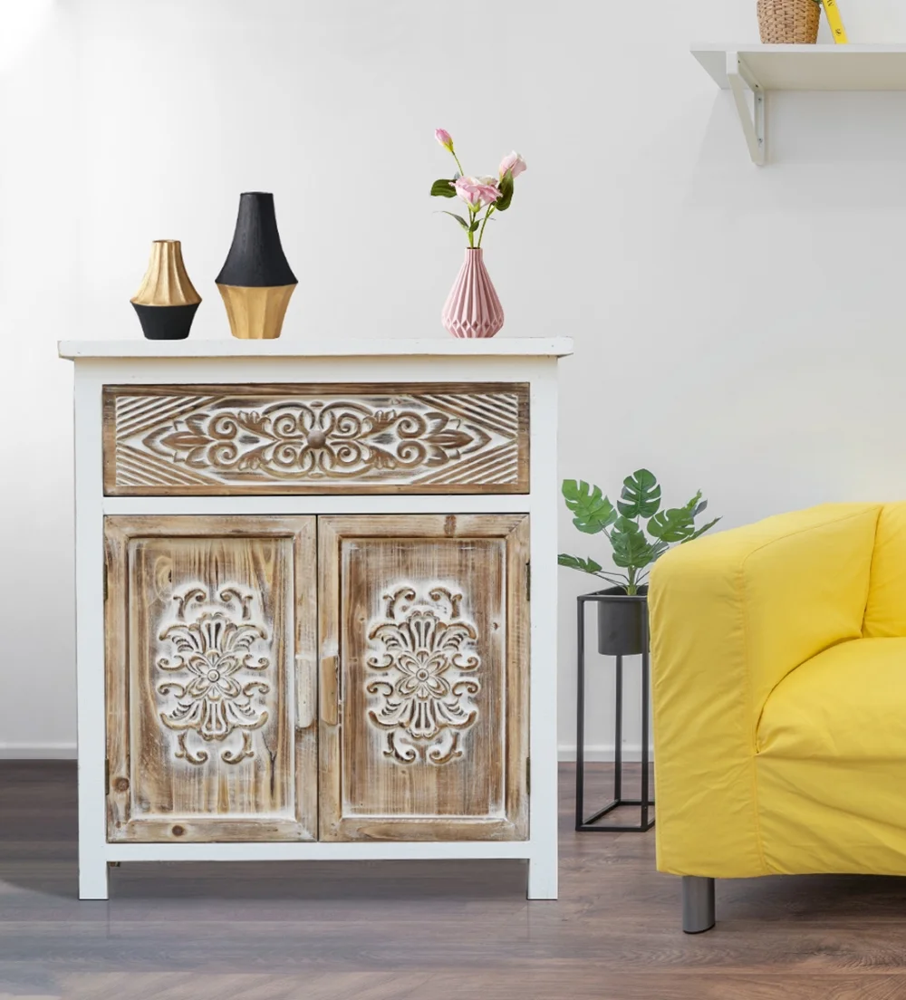 SmileMart 2- Drawer Wooden Vintage Mobile File Cabinet for Home and Office, White