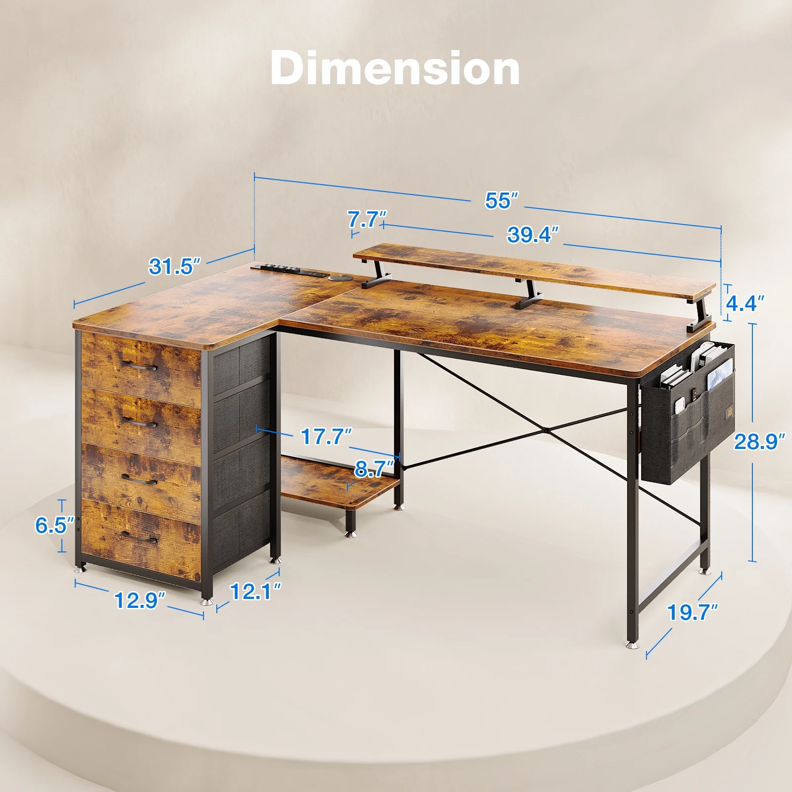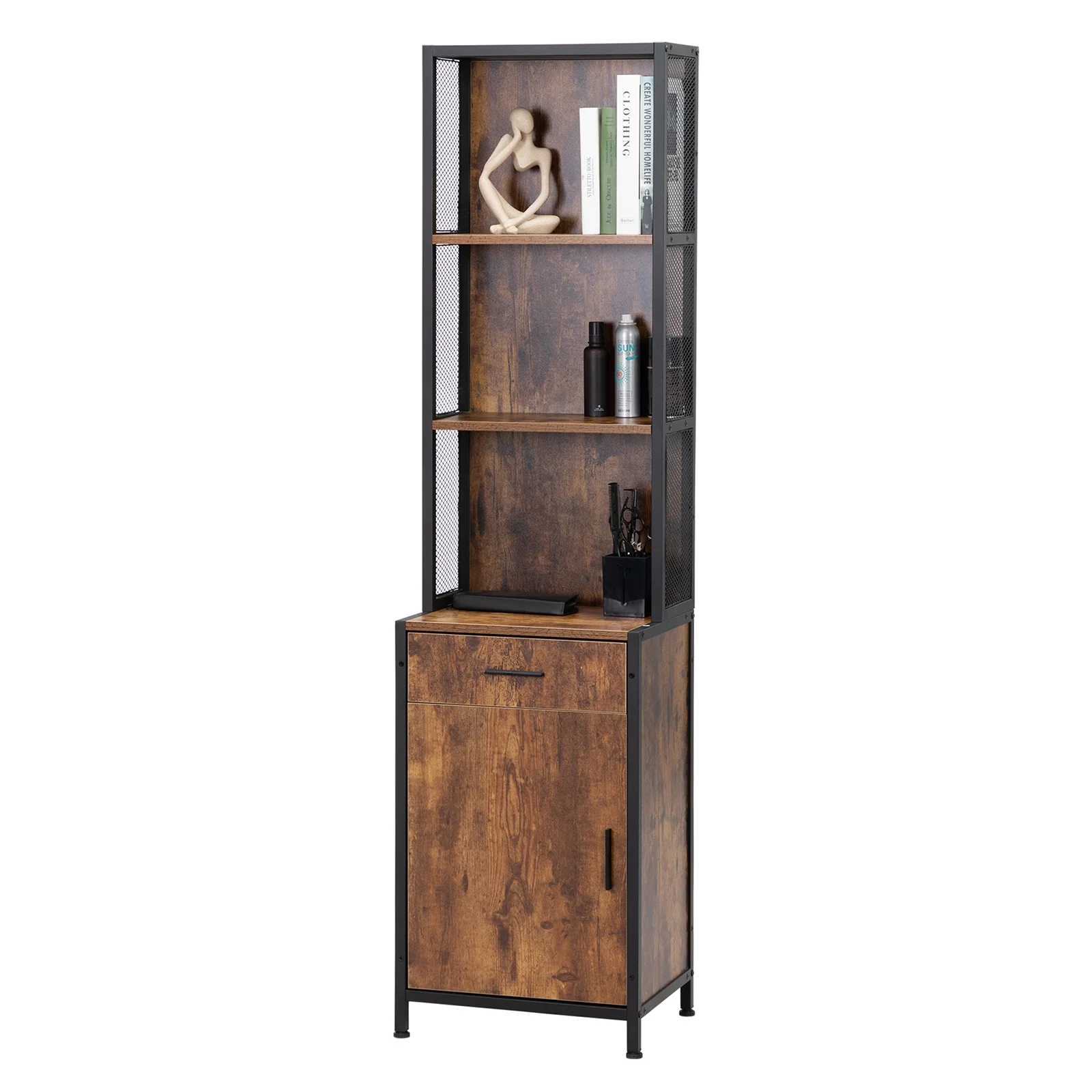 moobody Salon Station for Hair Stylist, Barber Equipment with Drawer, Cabinet and Shelves, Vintage Brown