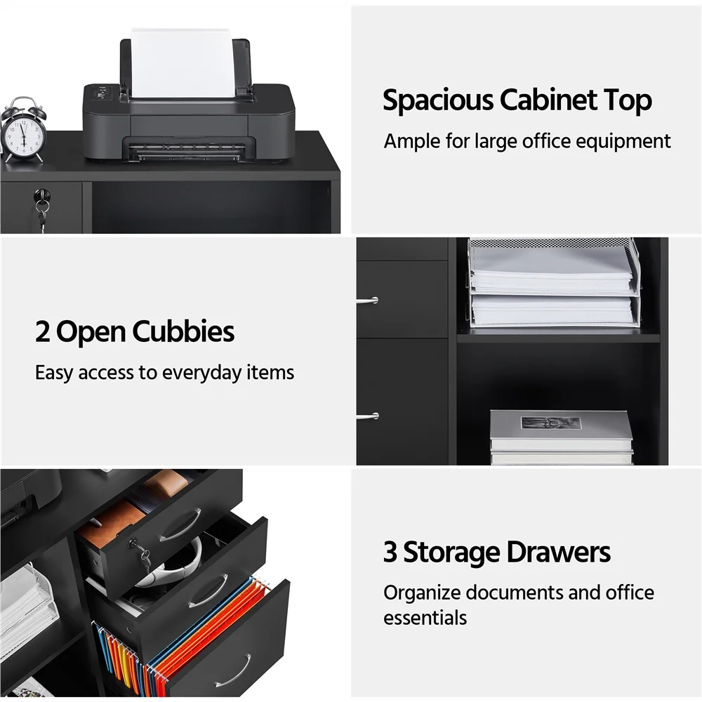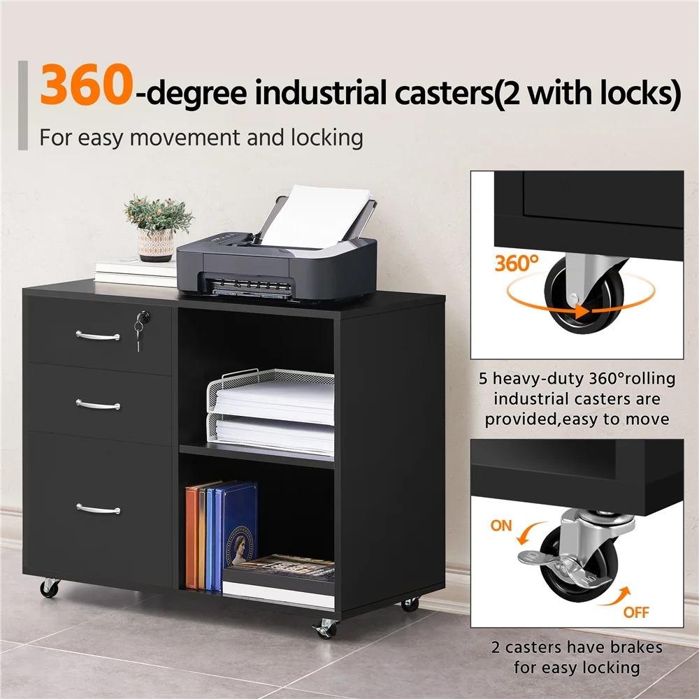 SmileMart Mobile Vintage File Cabinet with 3-Drawer for Home and Office, Black
