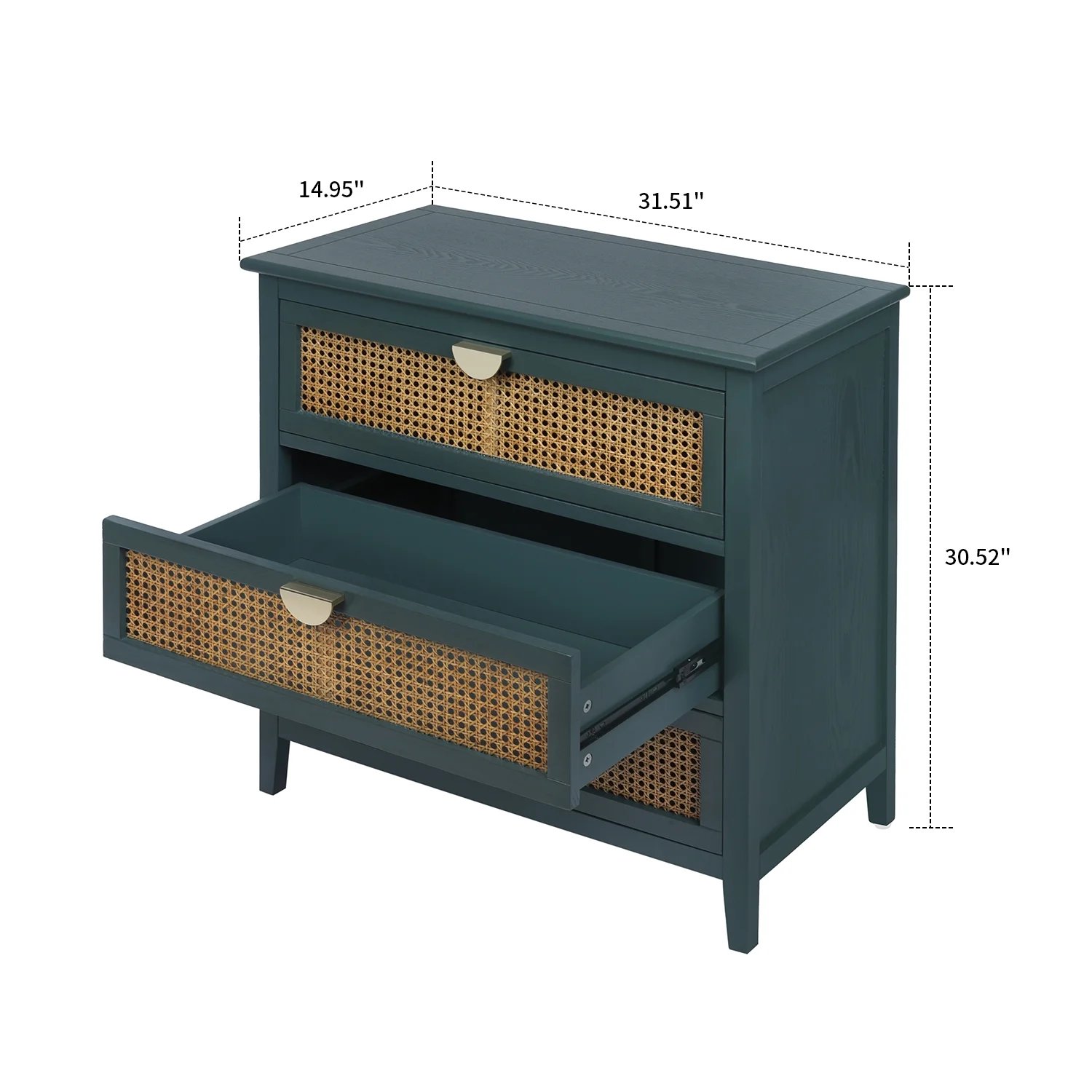 Vintage Style Wood Storage Cabinet with Metal Handles and 3 Drawers for Dining Room, Living Room, Green