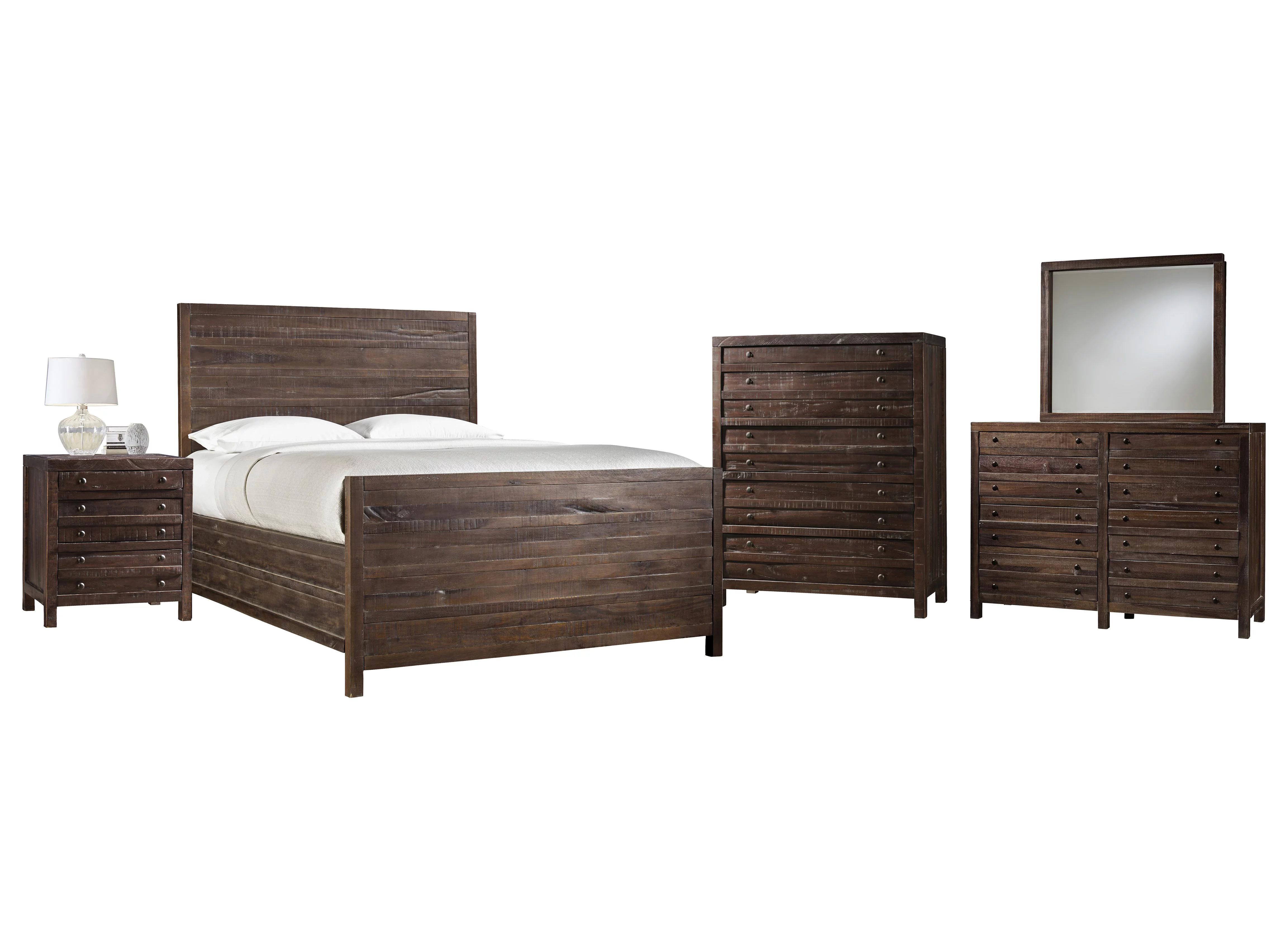 Tempton 5PC Queen Platform Bed, Nightstand, Dresser, Mirror & Chest Set in Coffee Brown