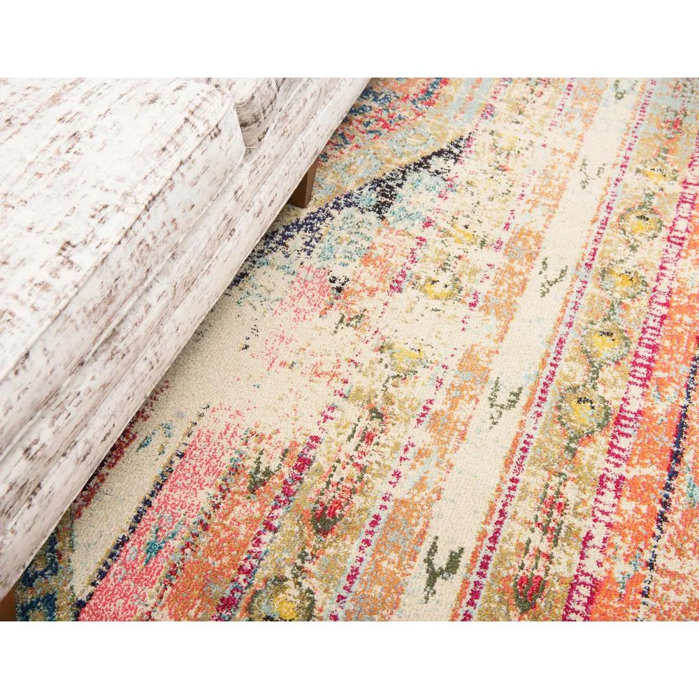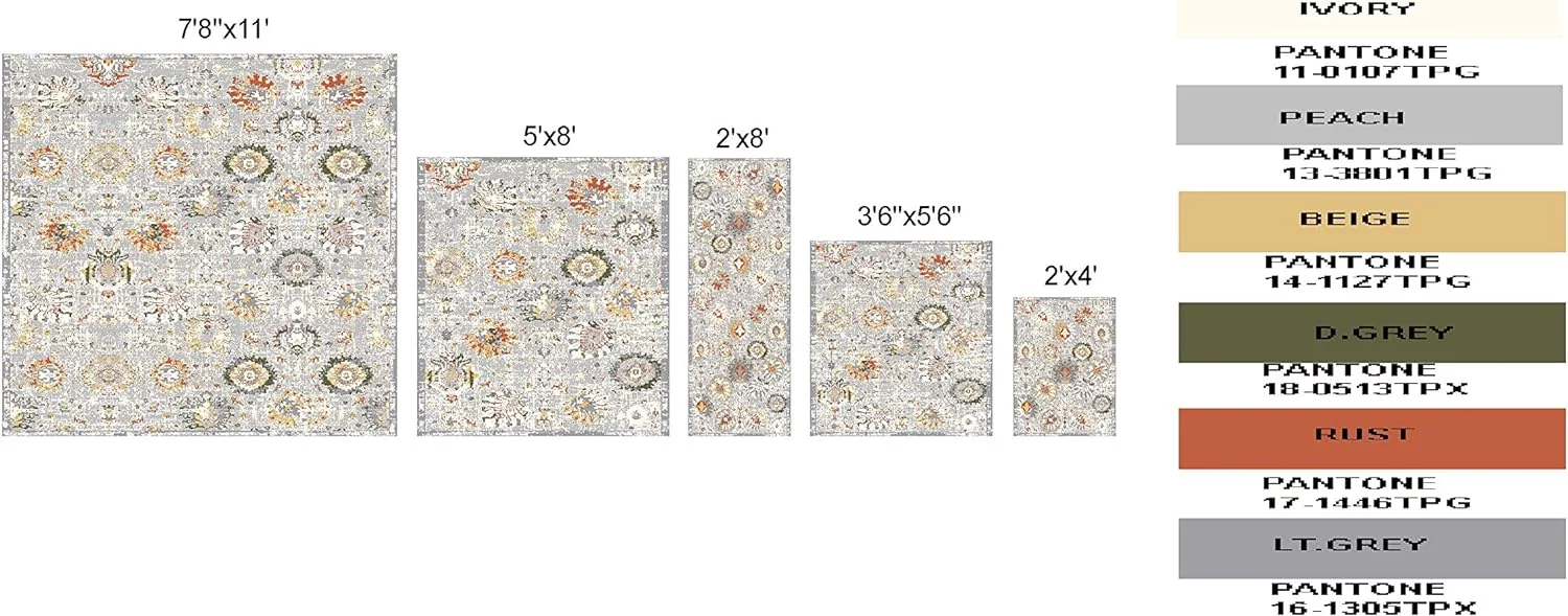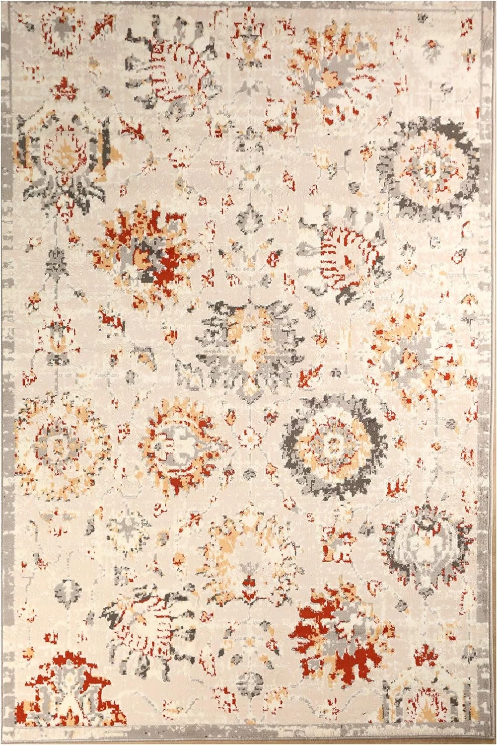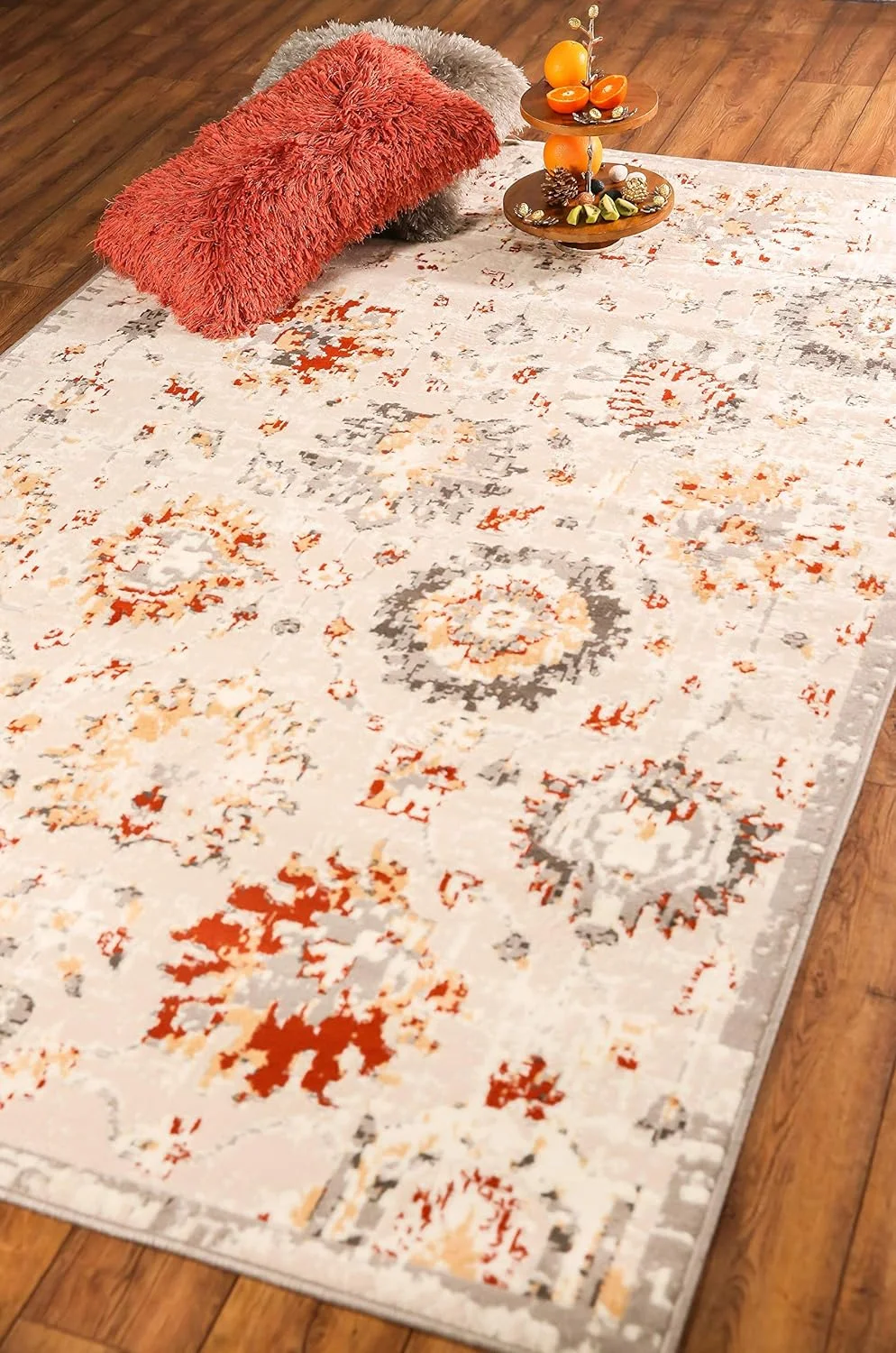 Ambient Rugs Abstract Area Rug - 5 ft. x 8 ft., Peach, Distressed, Floral Rug with Rustic Print