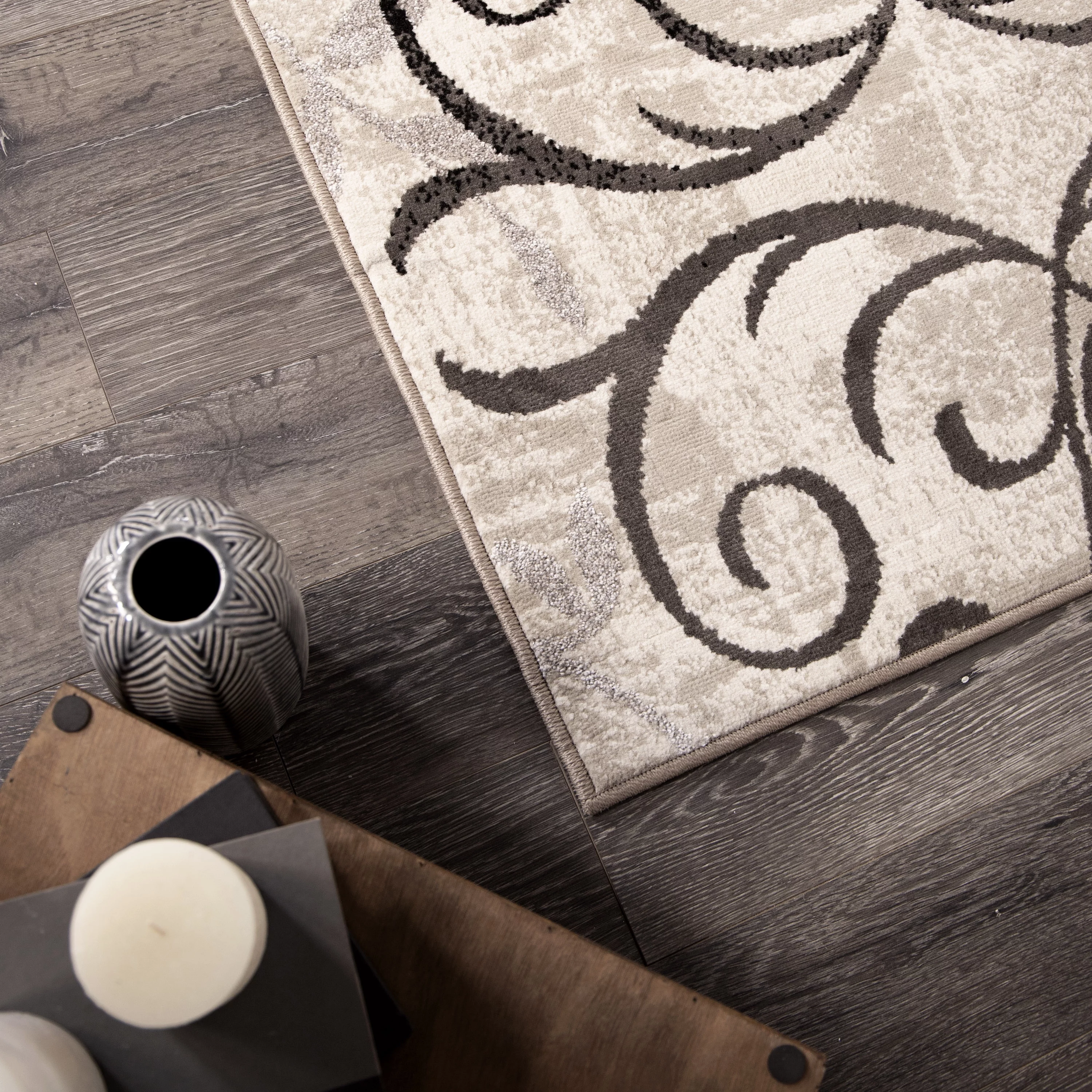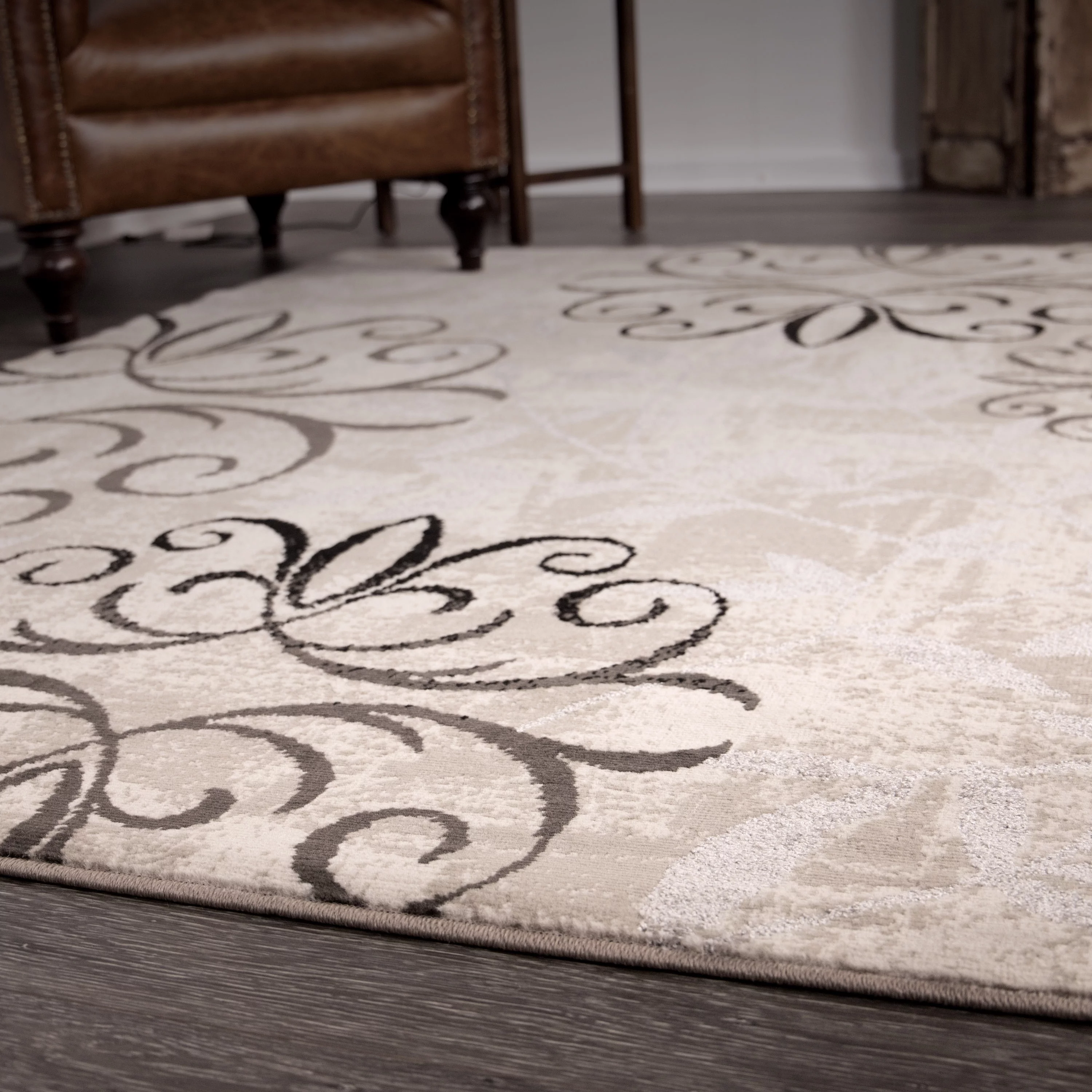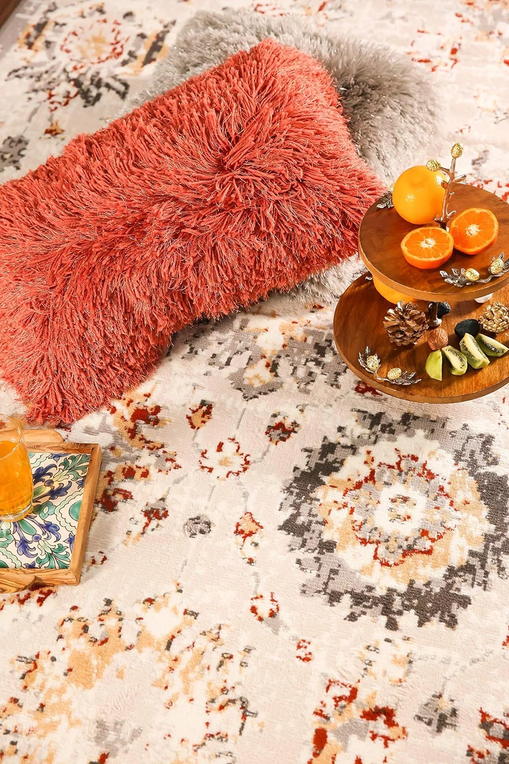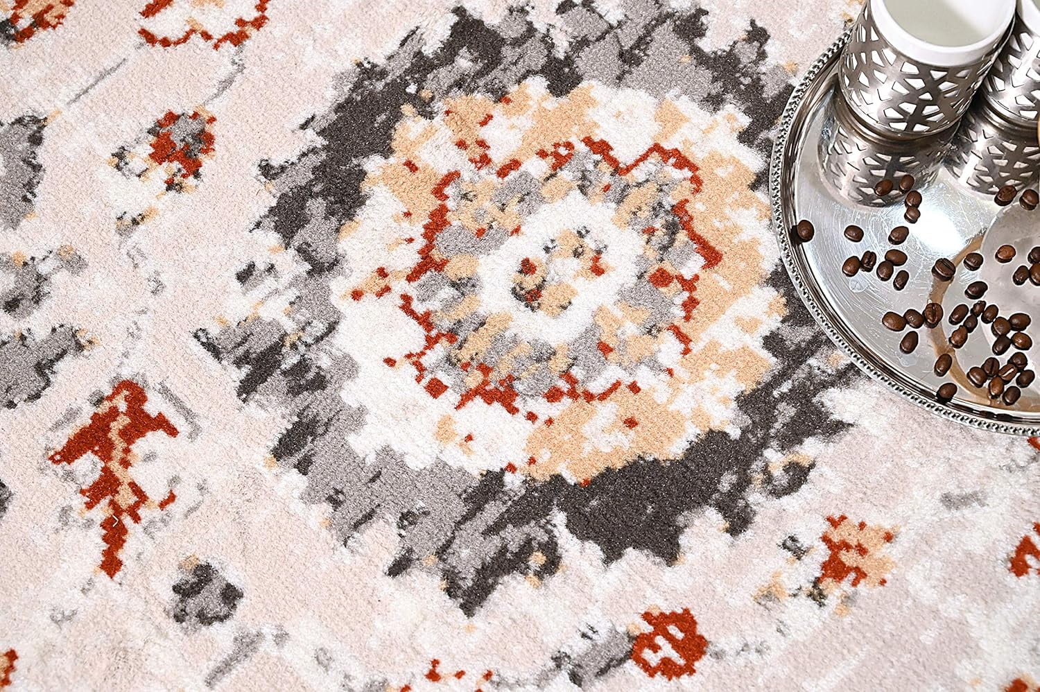 Ambient Rugs Abstract Area Rug - 5 ft. x 8 ft., Peach, Distressed, Floral Rug with Rustic Print
