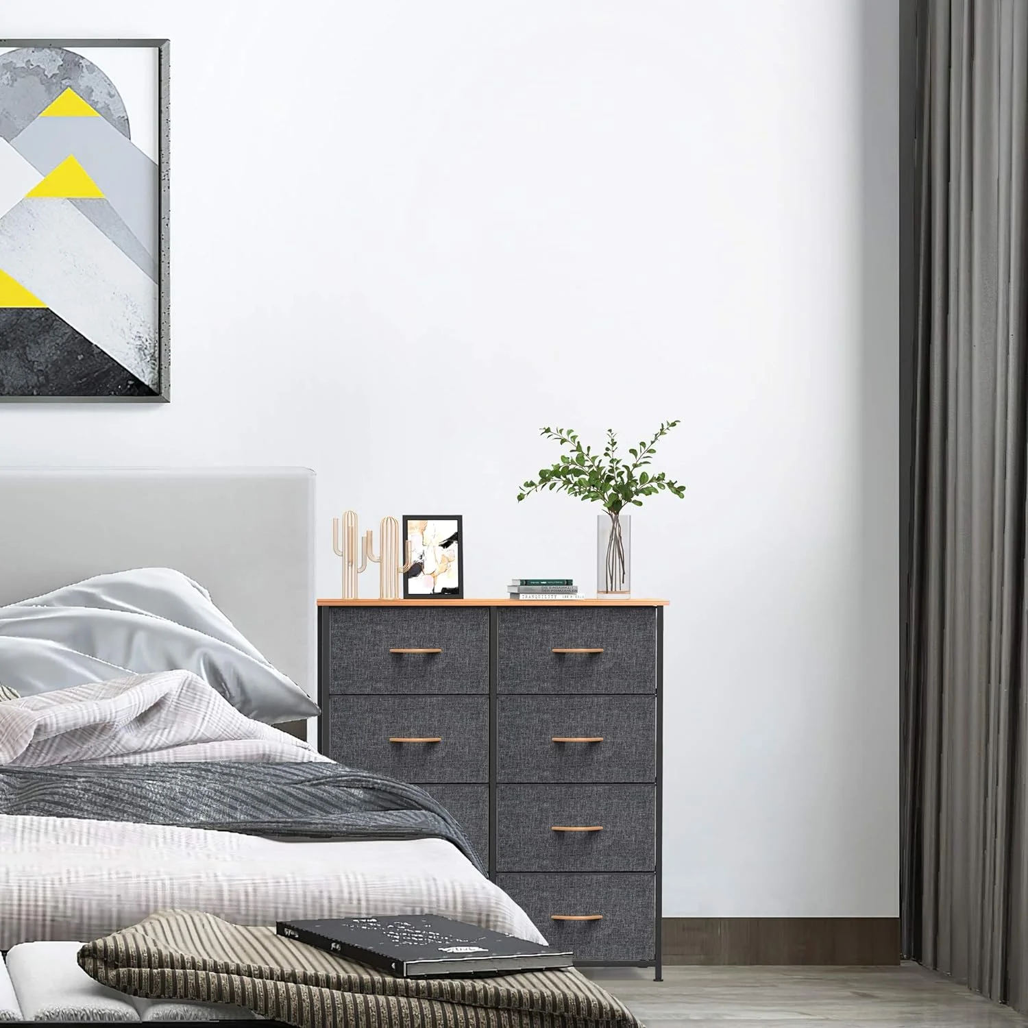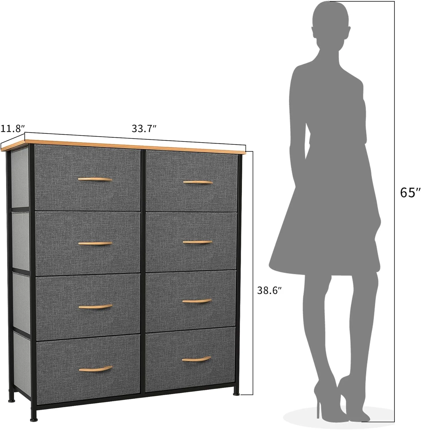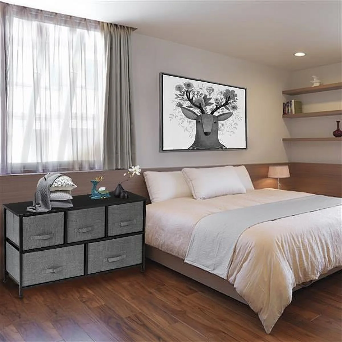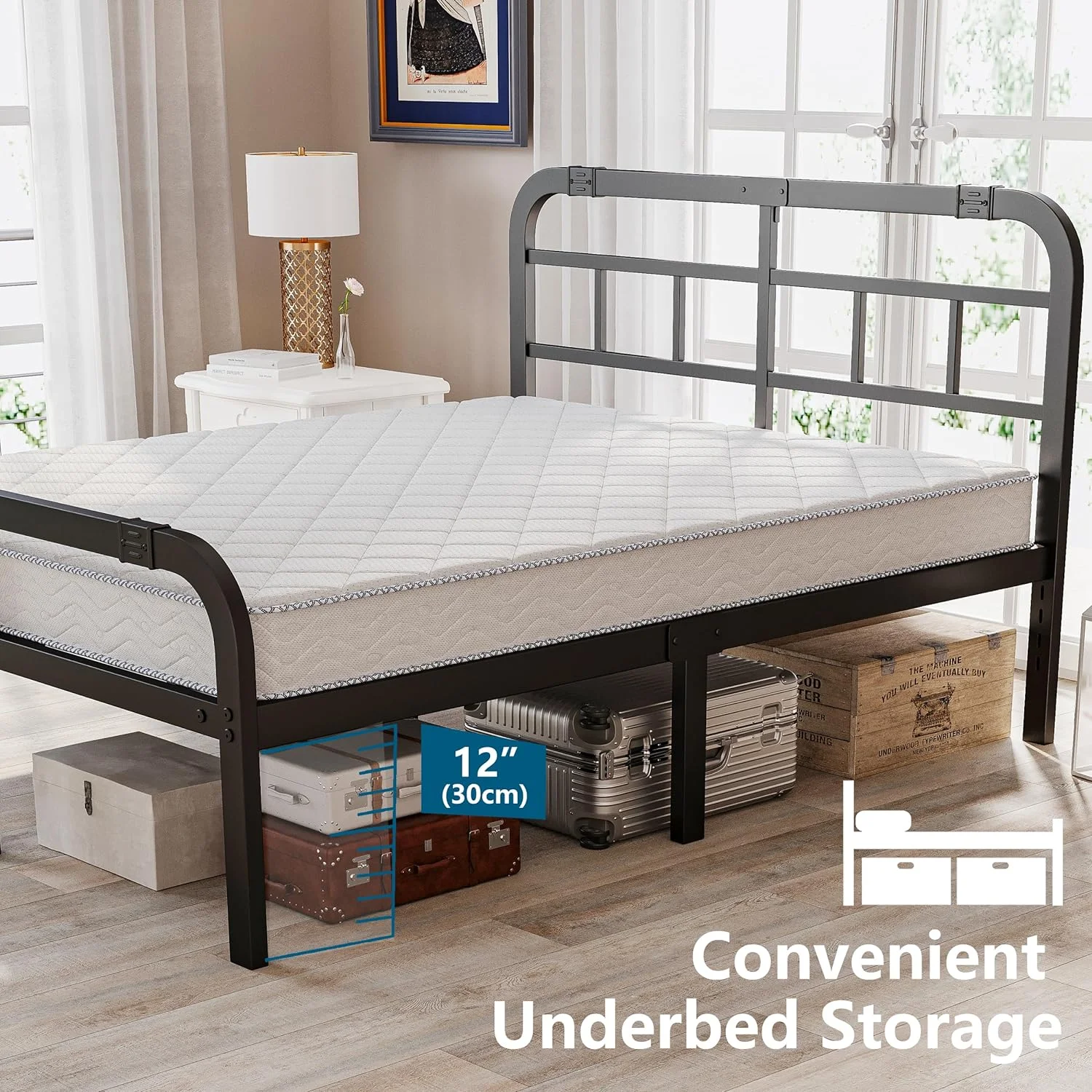 Full Size Wood Platform Bed with House-shaped Storage Headboard and 2 Drawers, Gray