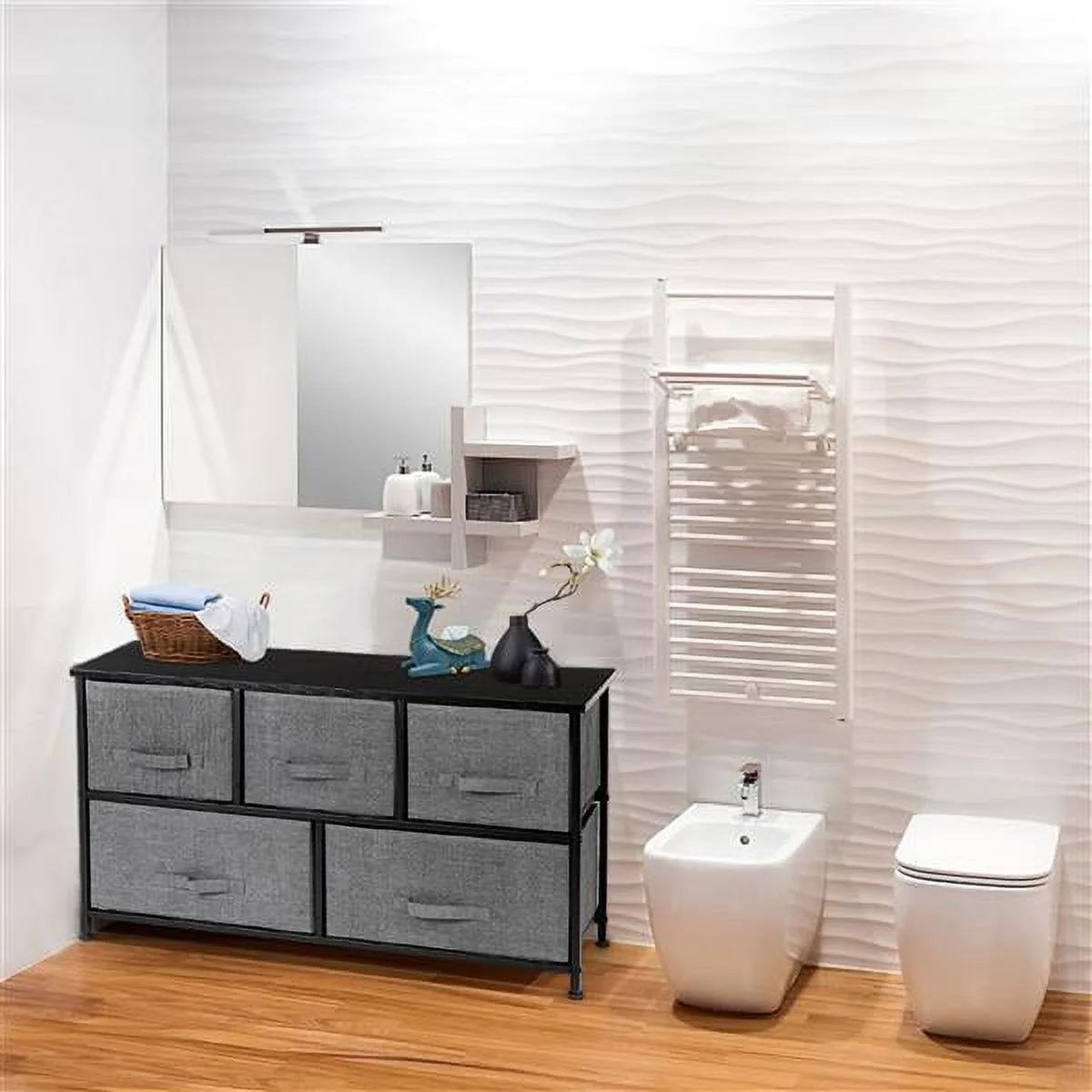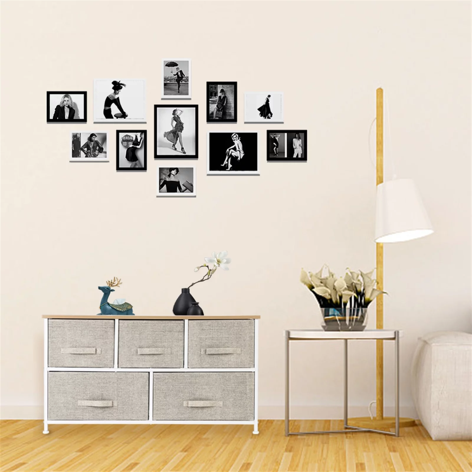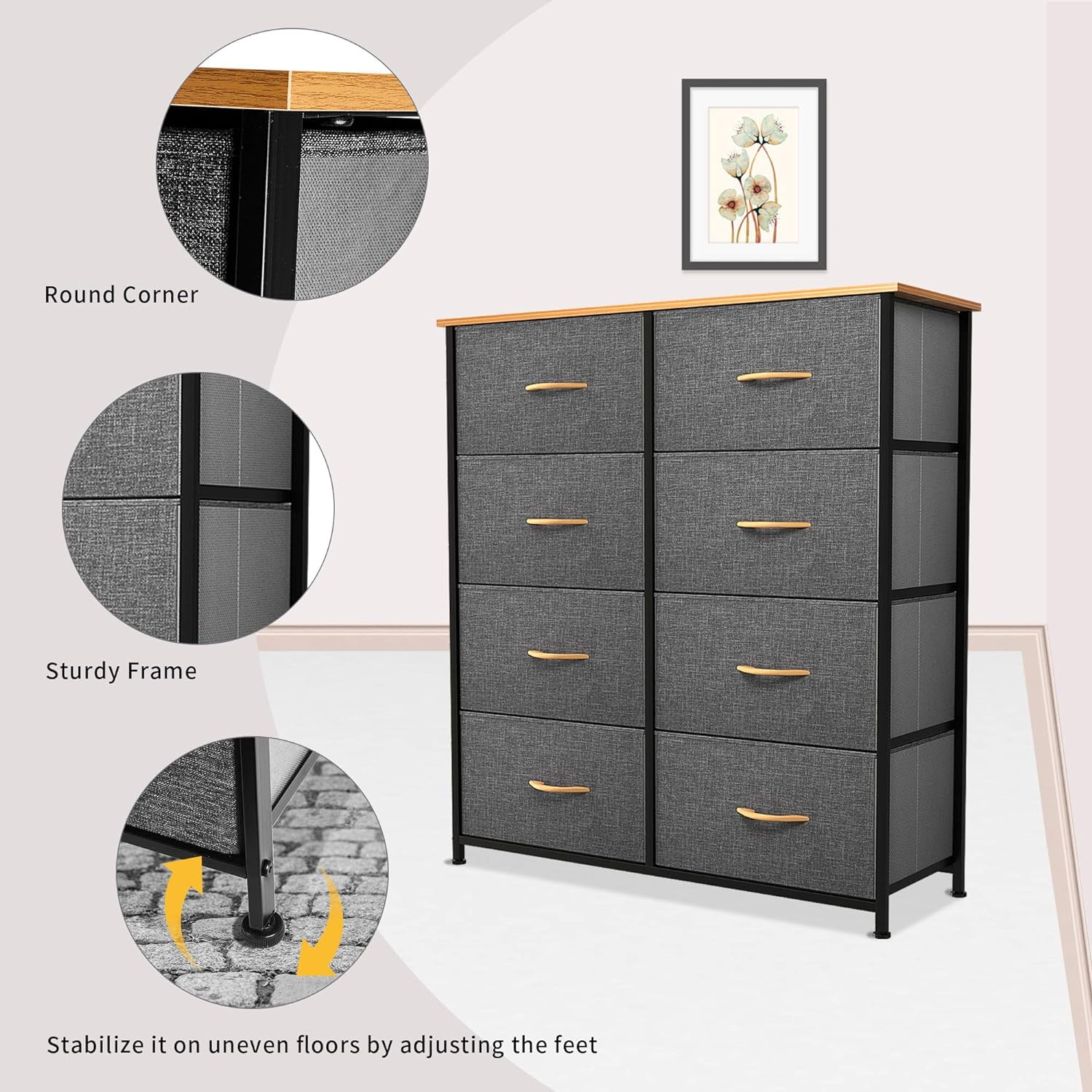 Full Size Wood Platform Bed with House-shaped Storage Headboard and 2 Drawers, Gray