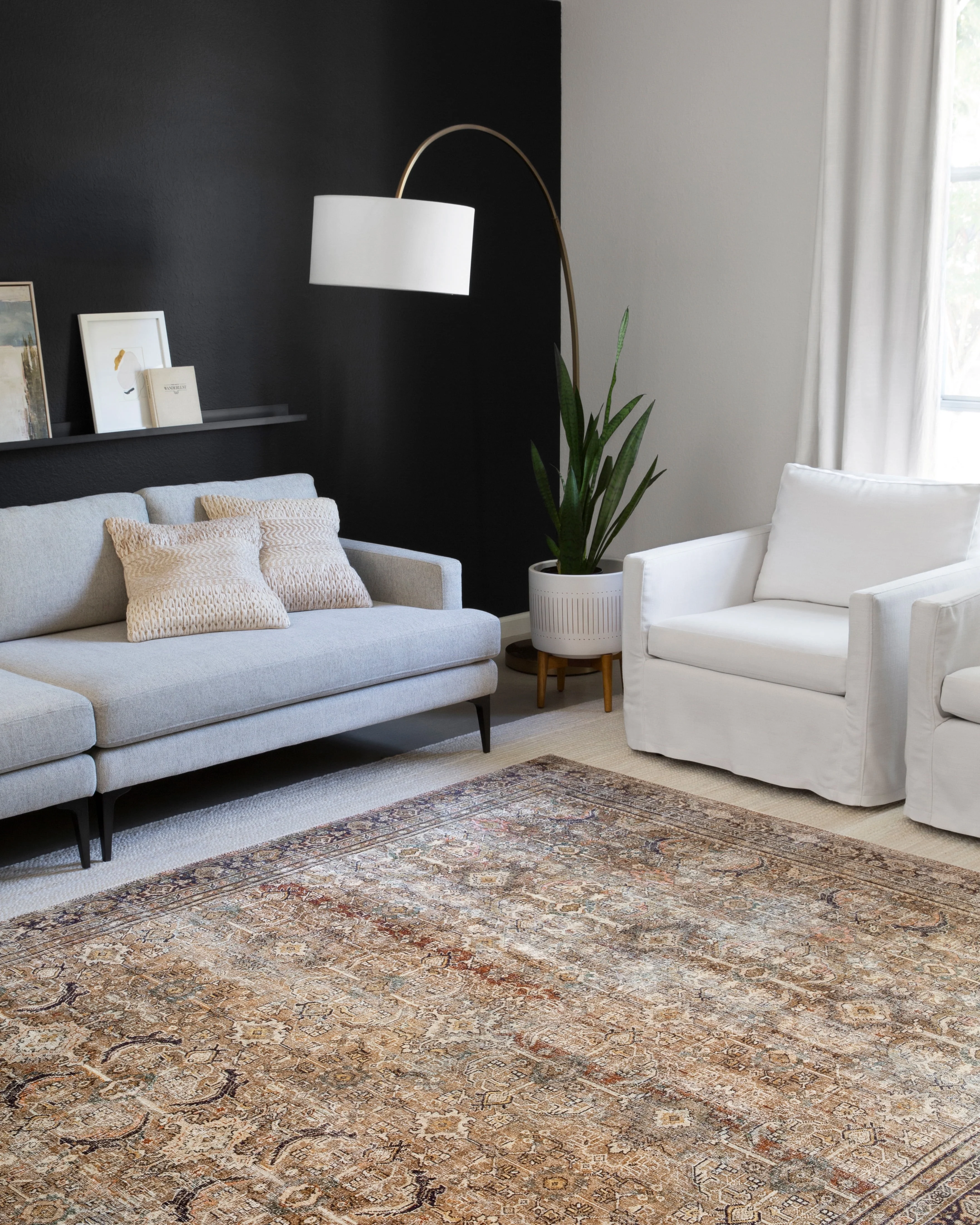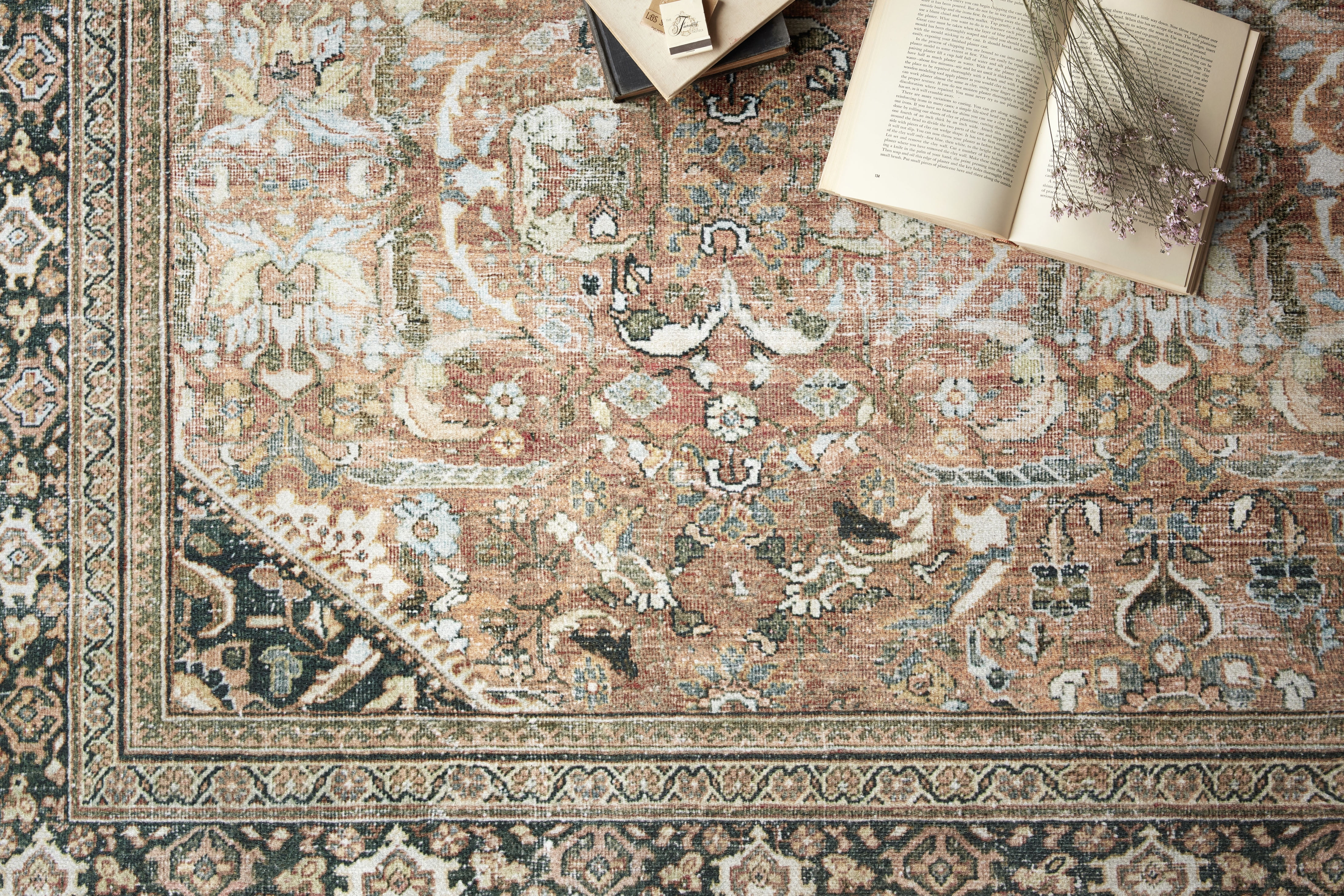 Loloi II Layla Printed Oriental Distressed Olive / Charcoal 7'-6" x 9'-6" Area Rug