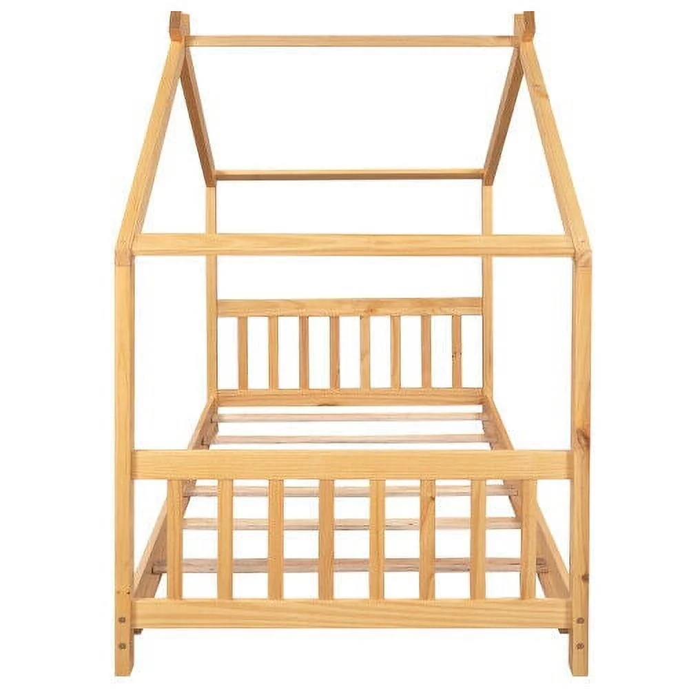 CHURANTY Wooden House Bed Twin Size Platform Bed Frames with Headboard and Footboard,Roof Design