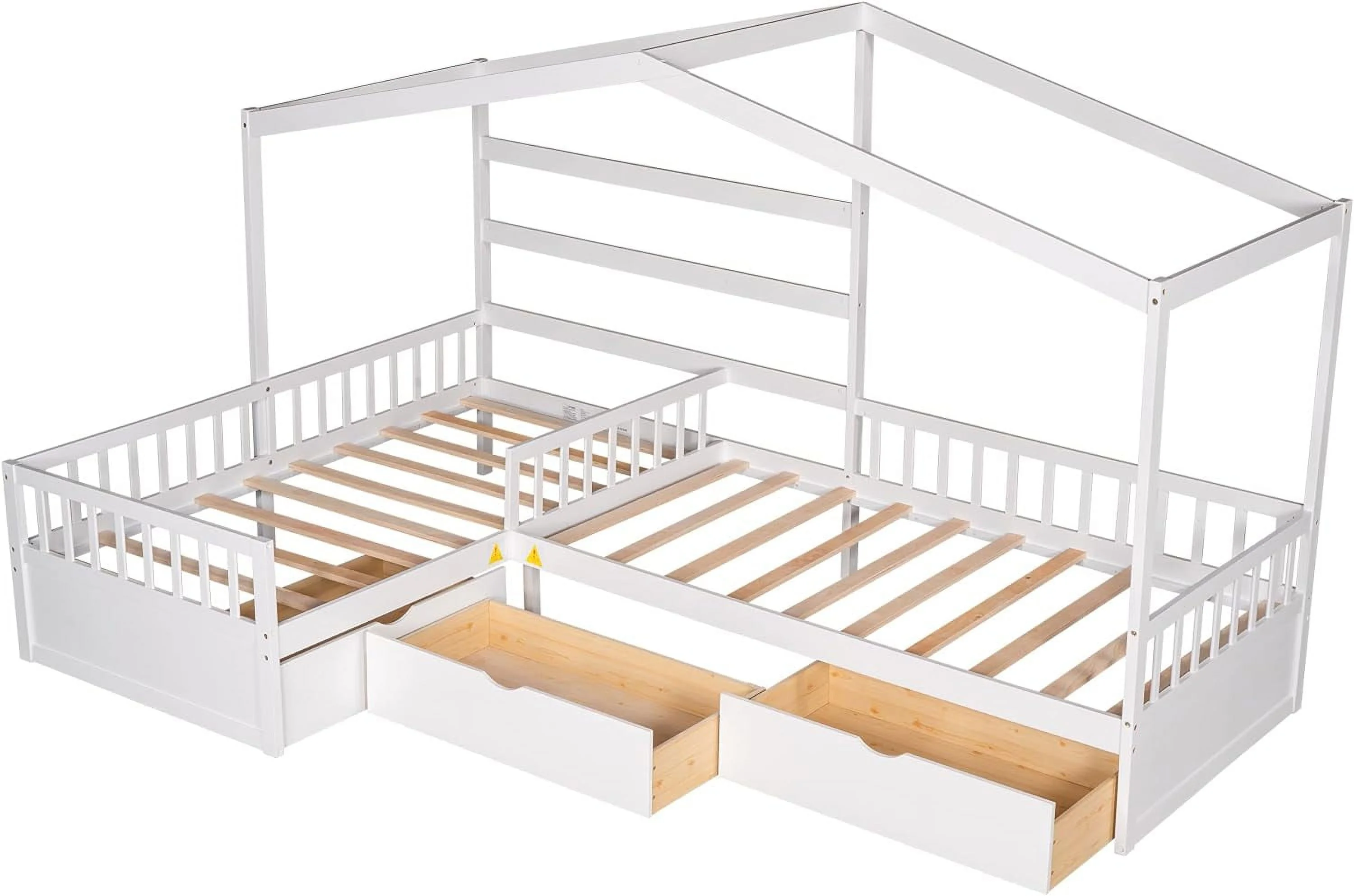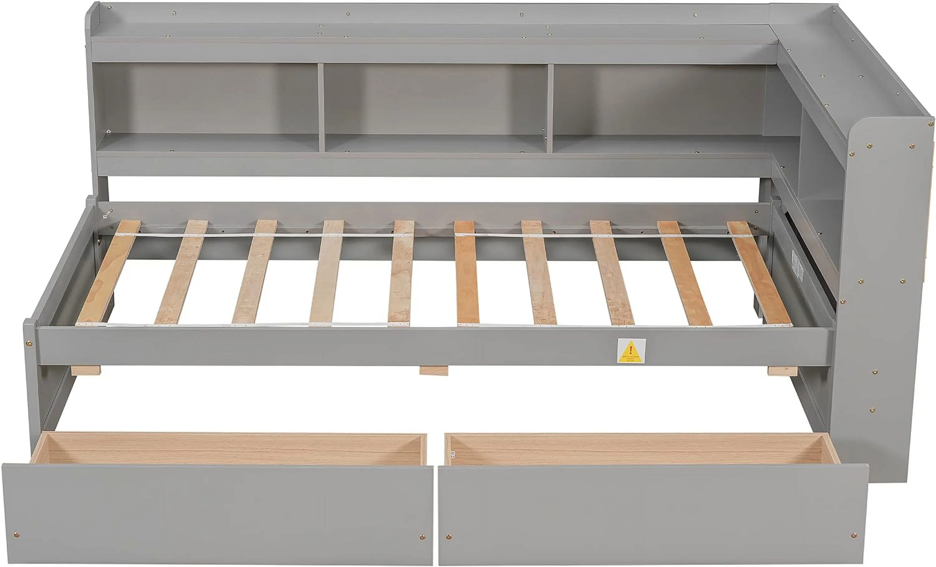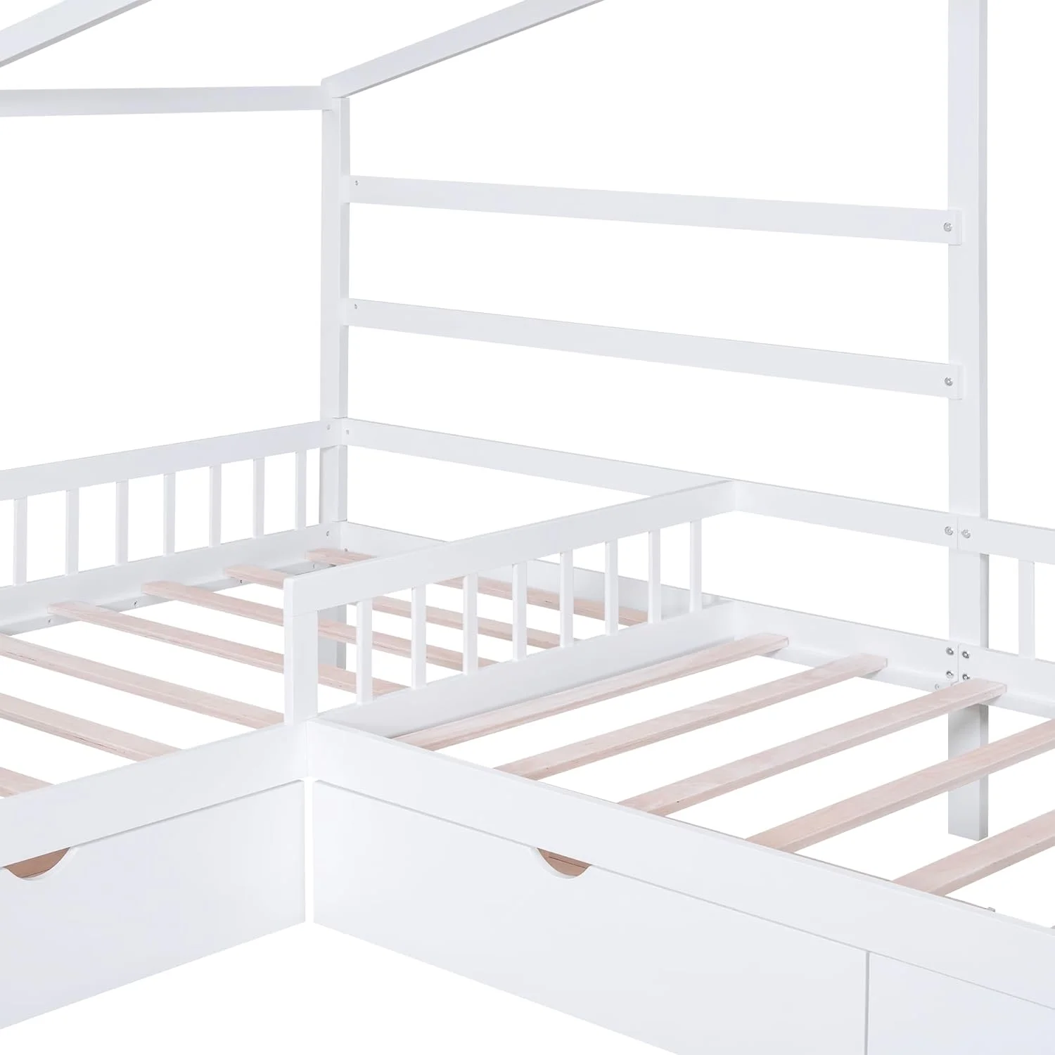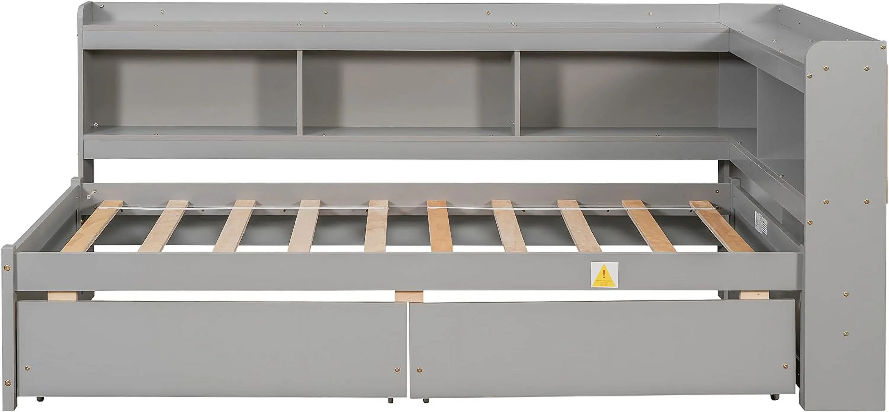 Upholstered L-Shaped 2 Beds With Trudle Ad Storage Drawer, Wood Lie Corer Bed For Kids Girls Boys Tees Bedroom, Gree