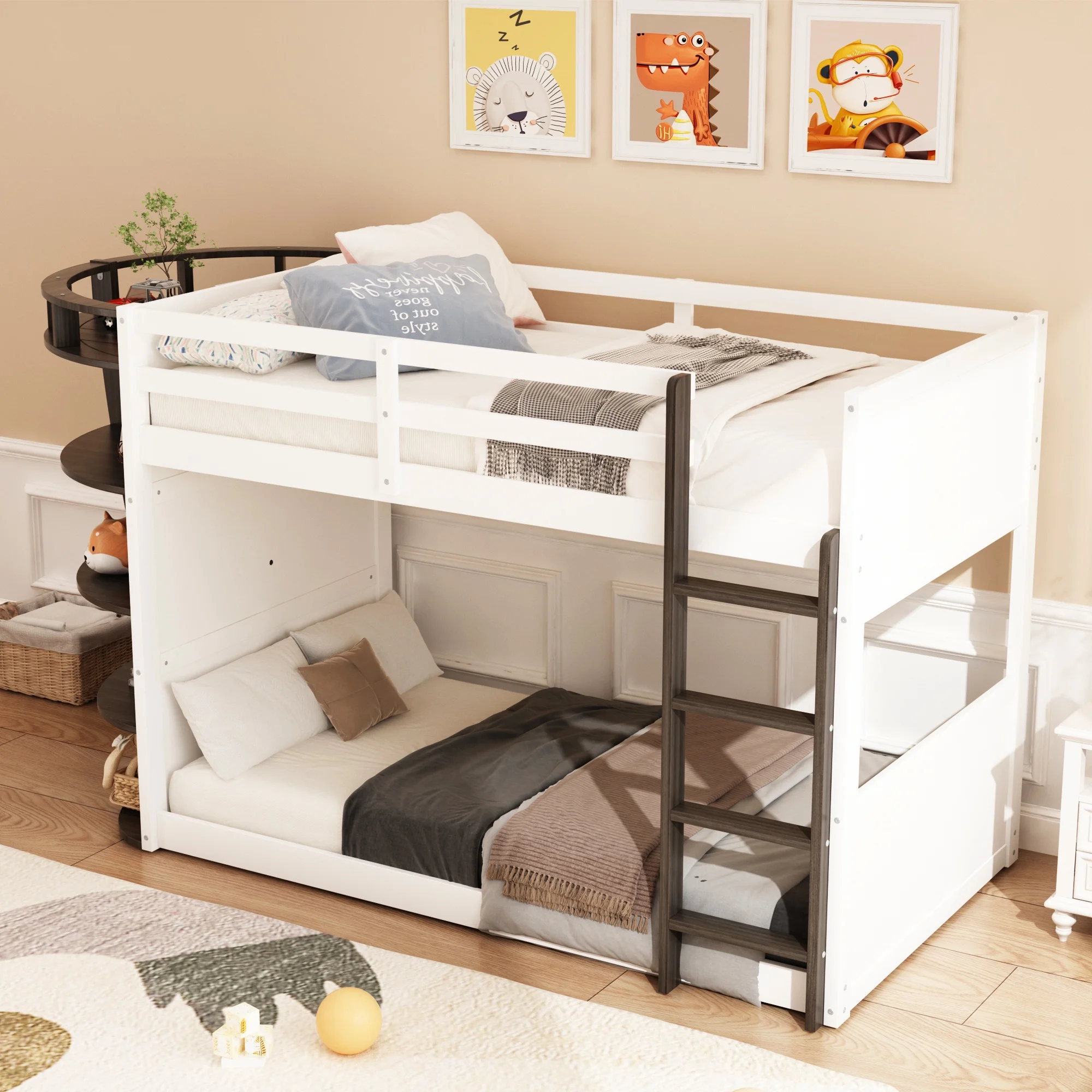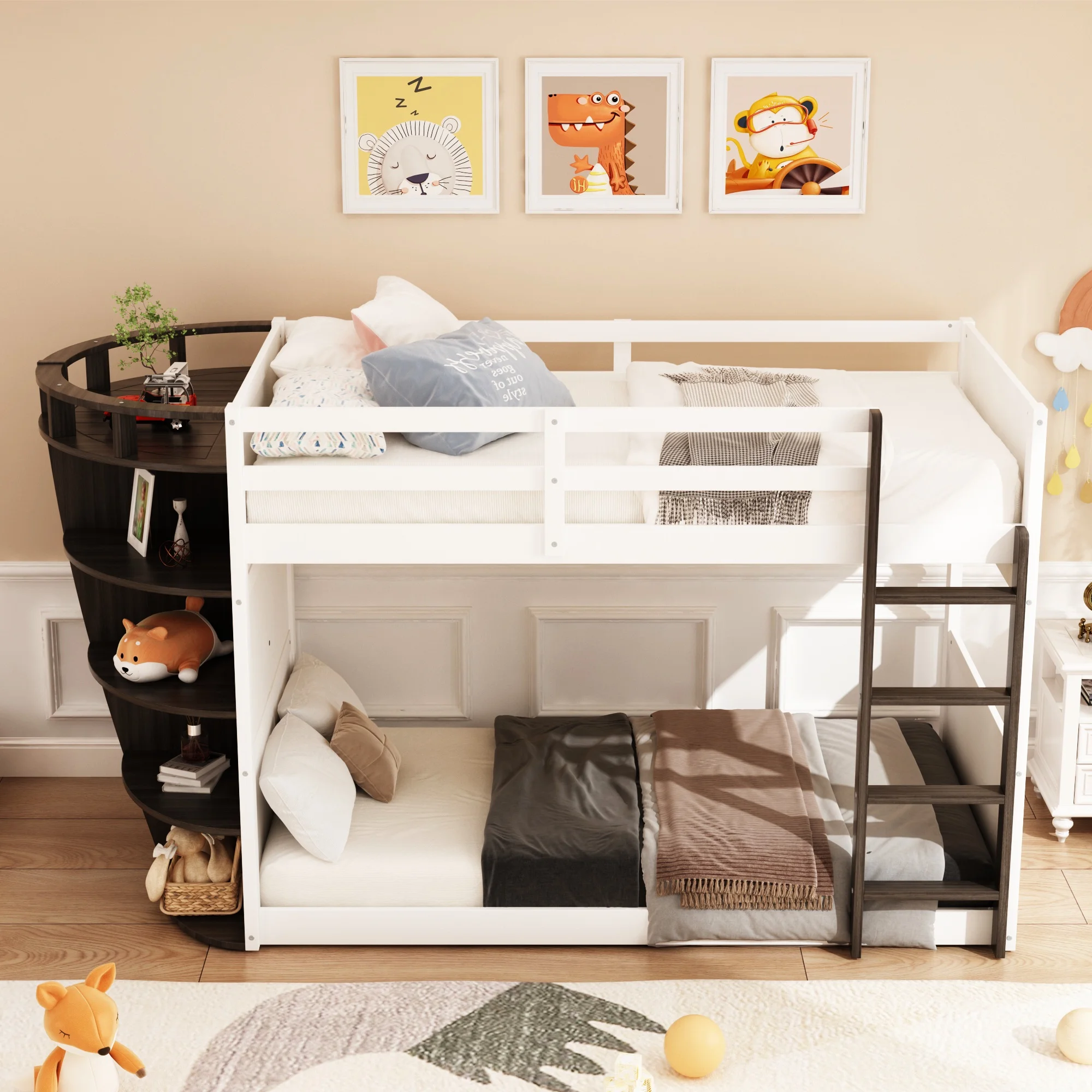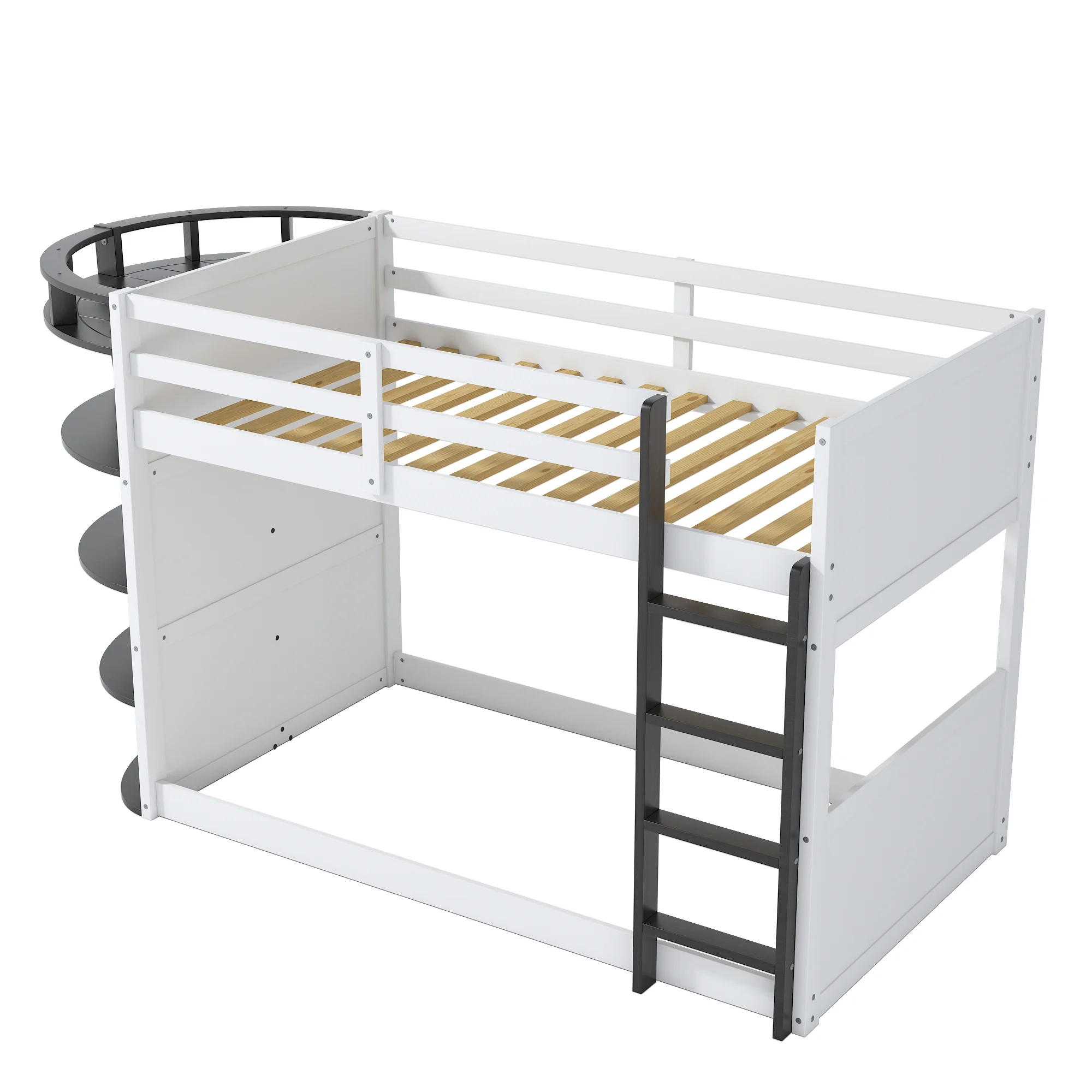 Bunk Bed Boat-Like Shape Design with Storage Shelves, Wooden Frame for Kids Teens (Espresso)