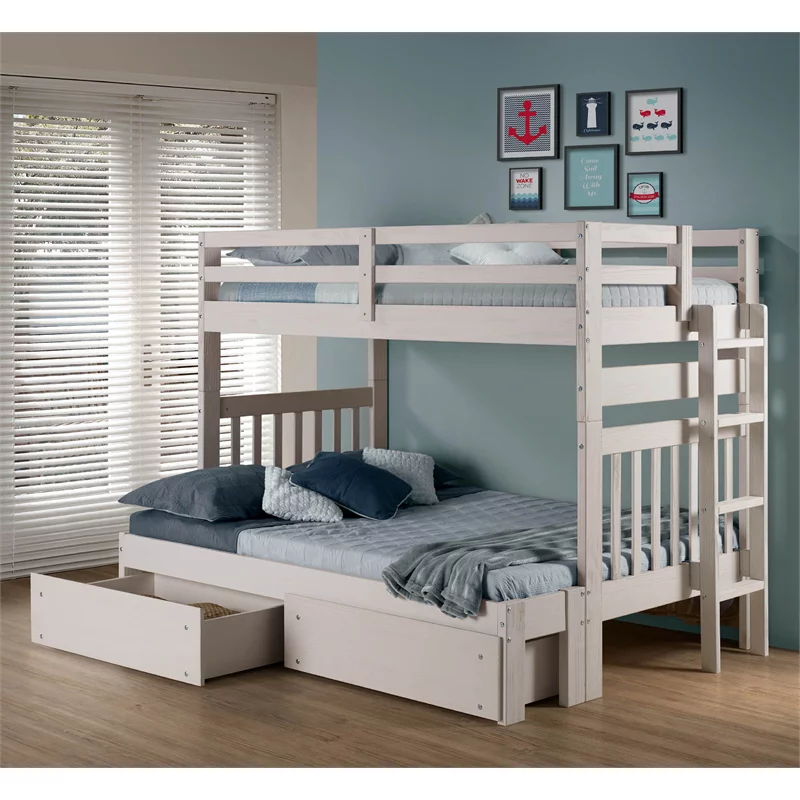 My Bed Now Olympus Twin-over-Full 2-Drawer Wood Bunk Bed w/ Ladder in White