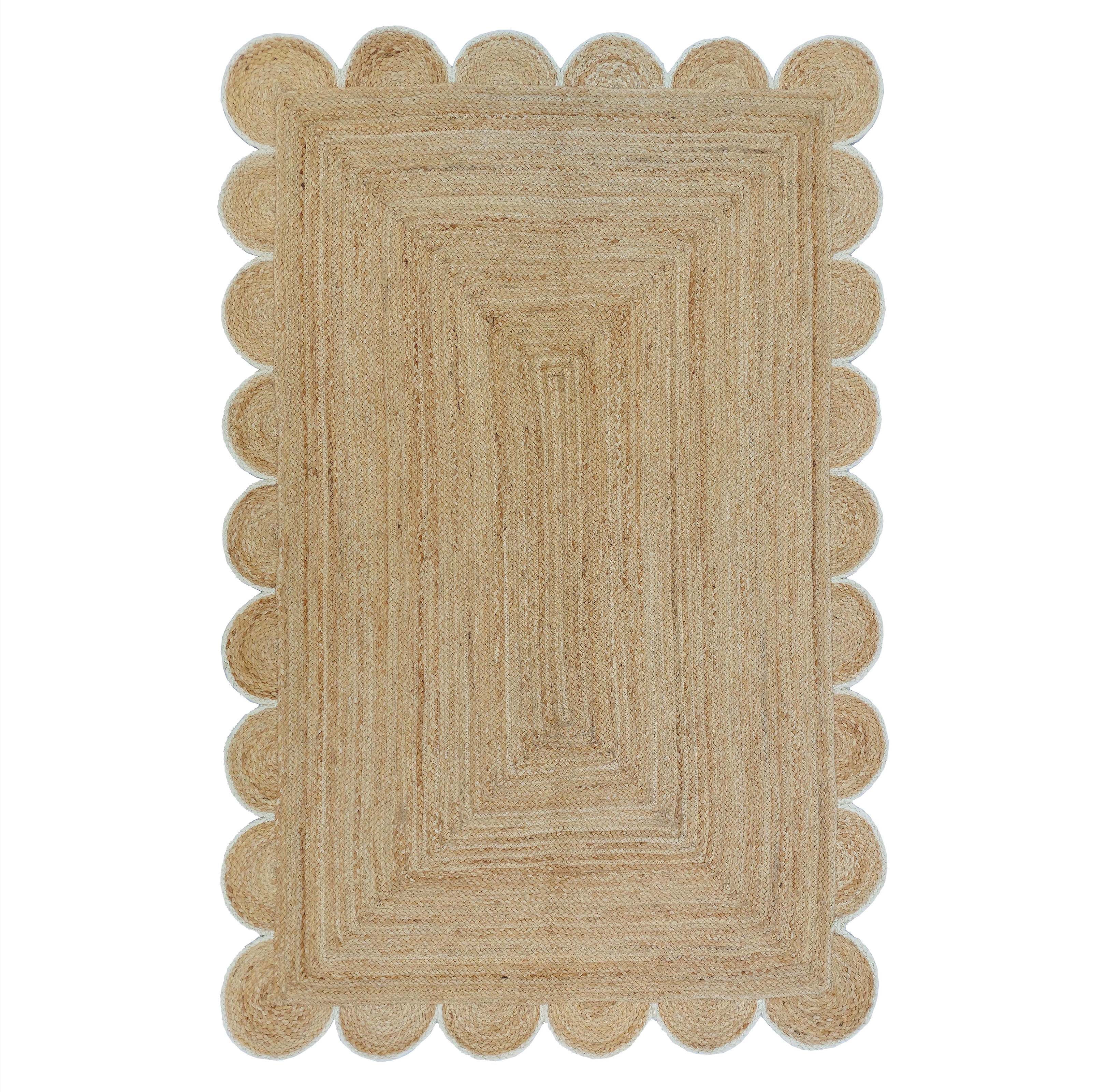 Weaving Village Scalloped Natural Jute Area Rug, Off White Color Trim, Size 5'x8'