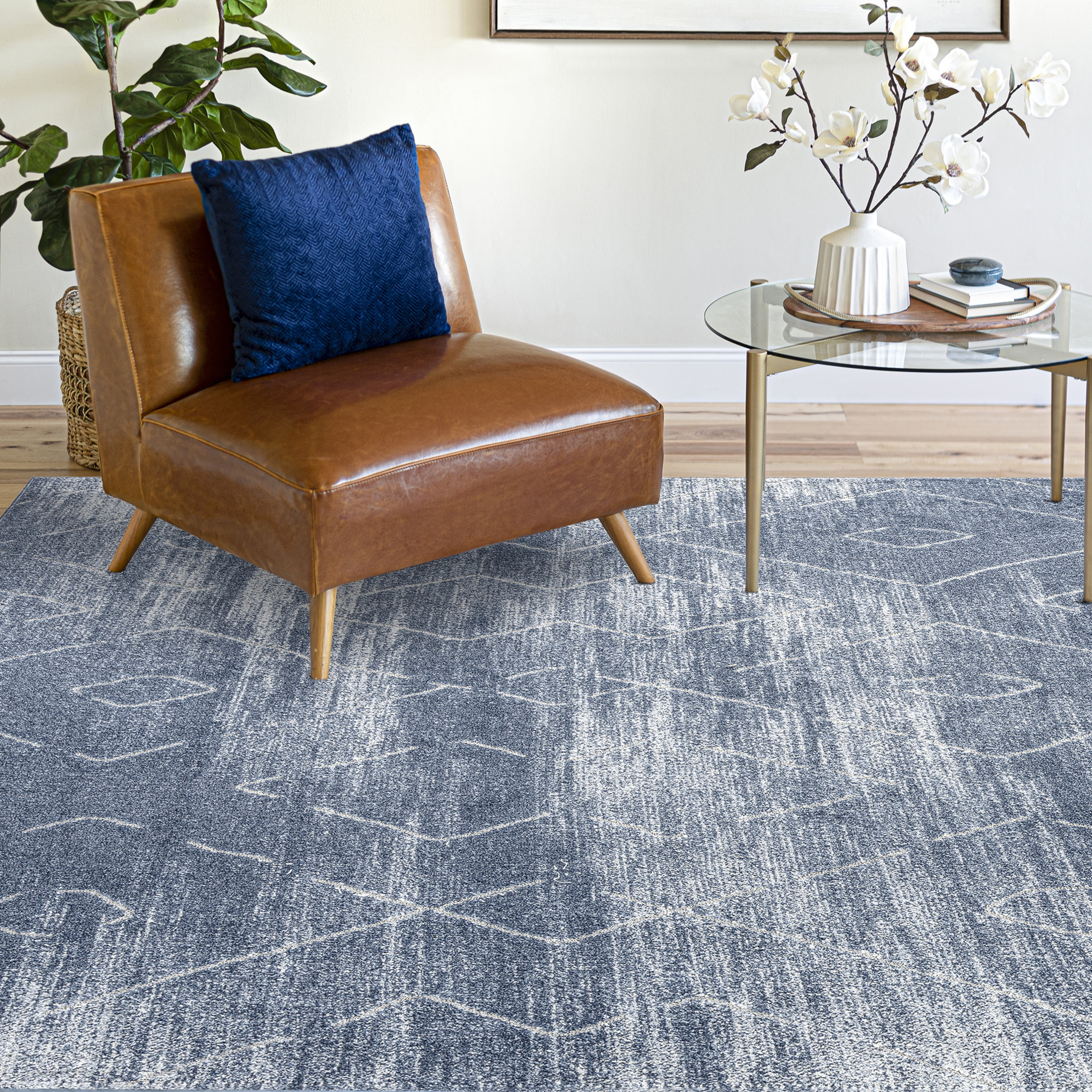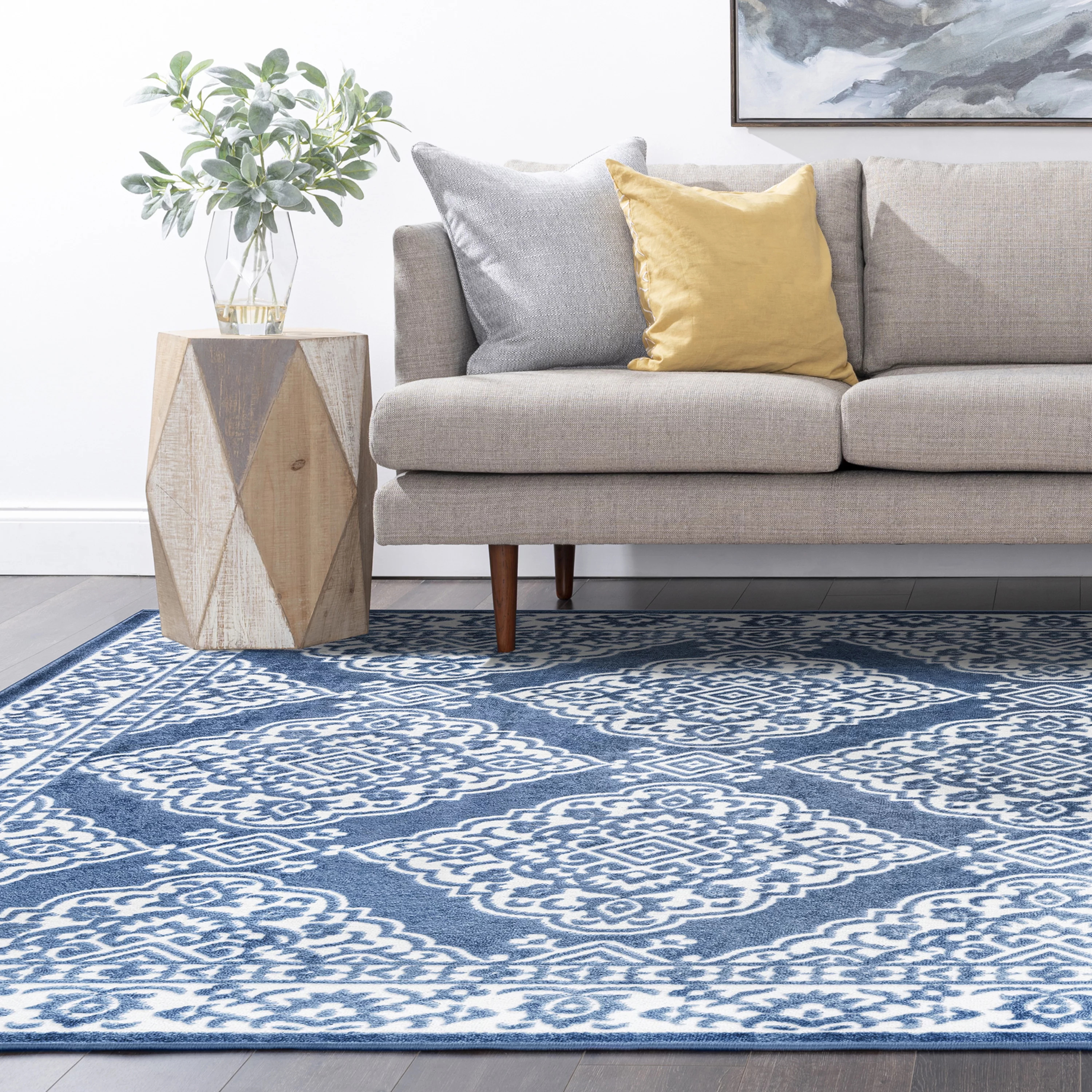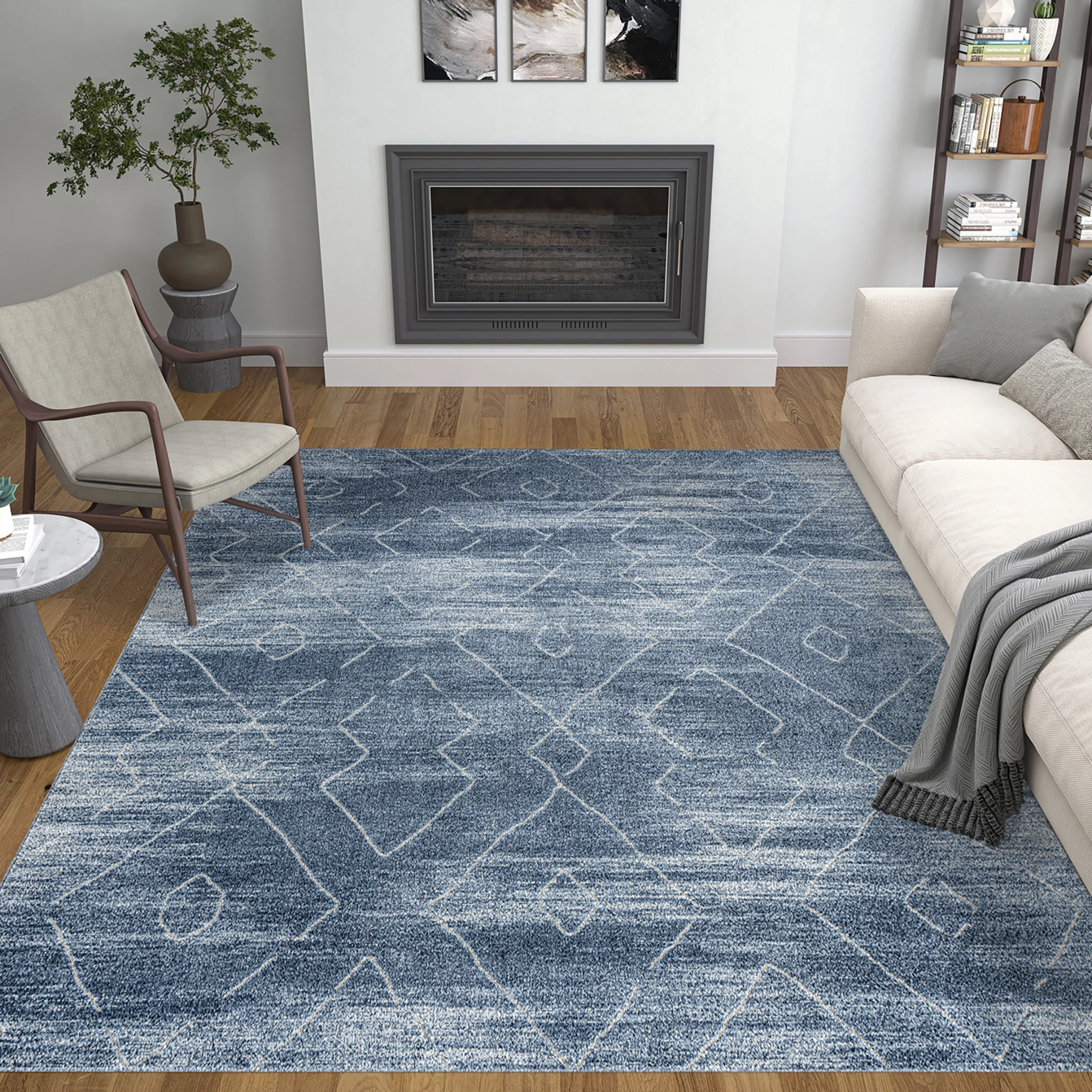 Contemporary 5x8 Area Rug (5'3'' x 7'3'') Geometric Blue, Gray Living Room Easy to Clean