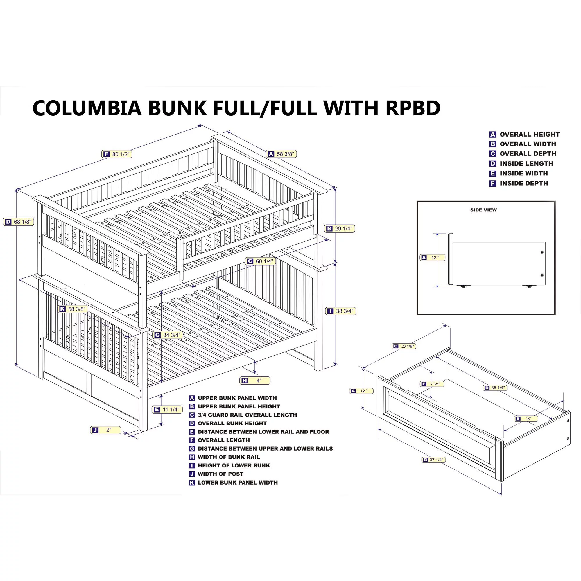 Columbia Bunk Bed Full over Full in Multiple Colors and Configurations