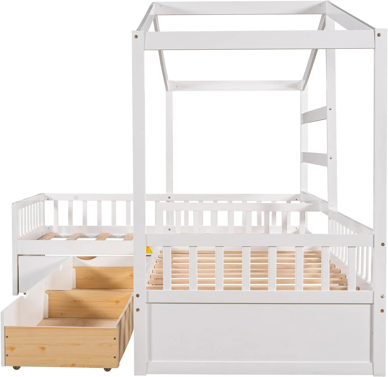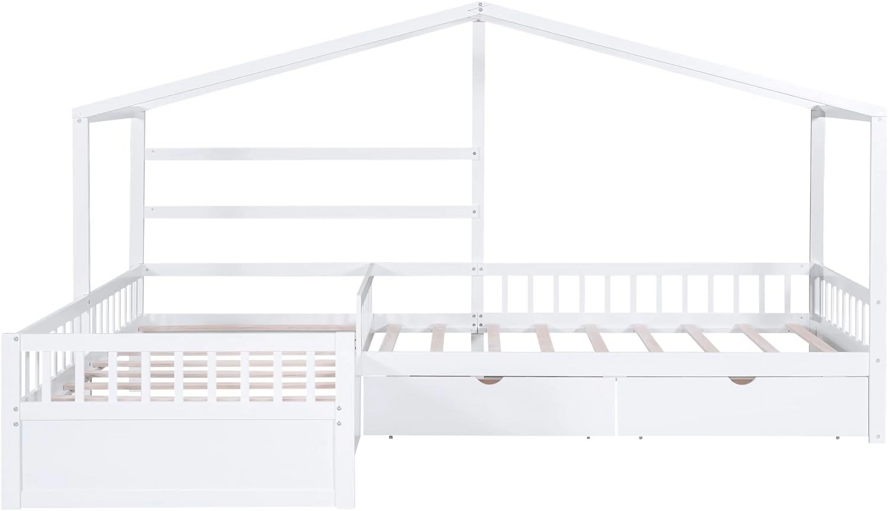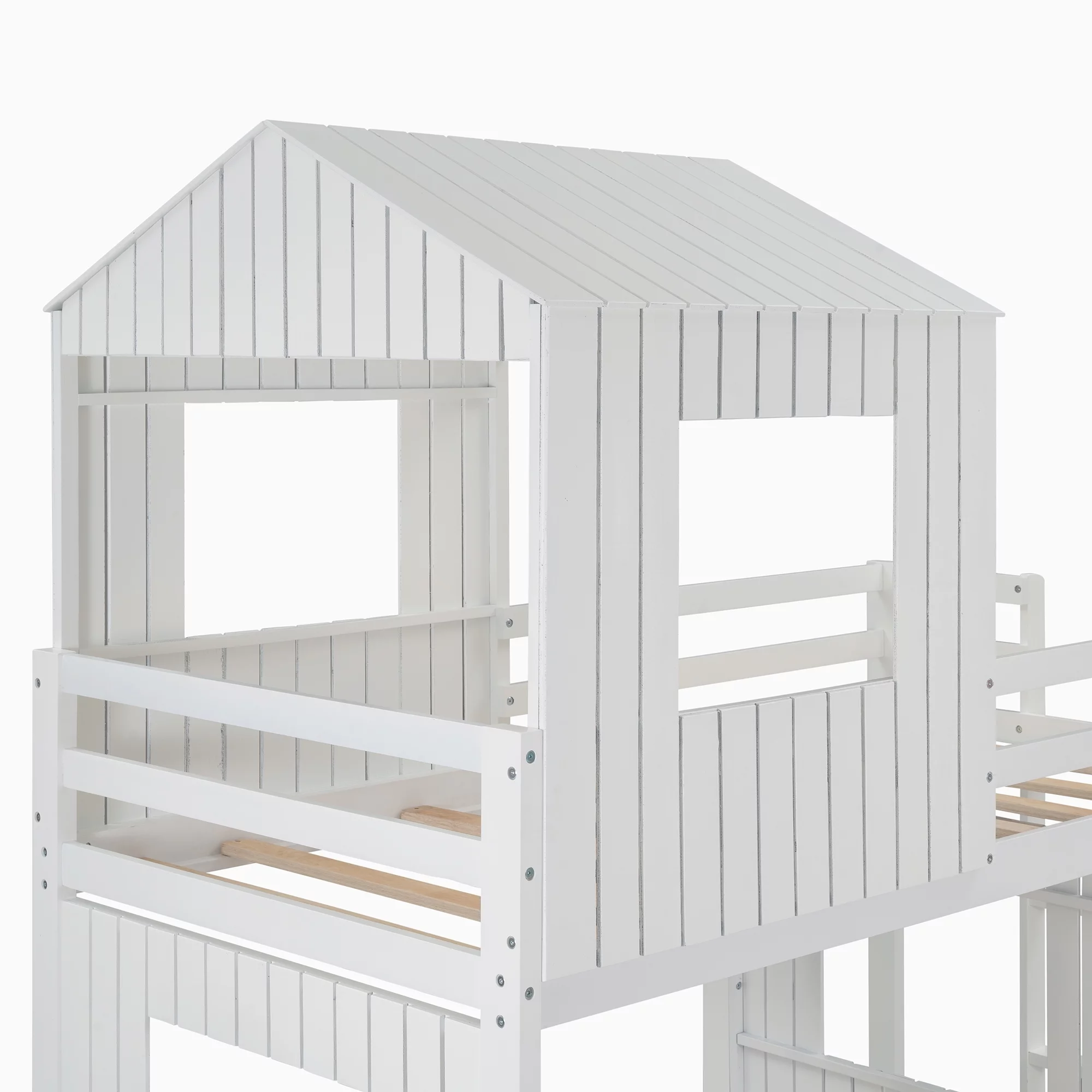 Wooden Twin Over Full Bunk Bed, Loft Bed with Playhouse, Farmhouse, Ladder and Guardrails, White( old sku: LT000027AAK )