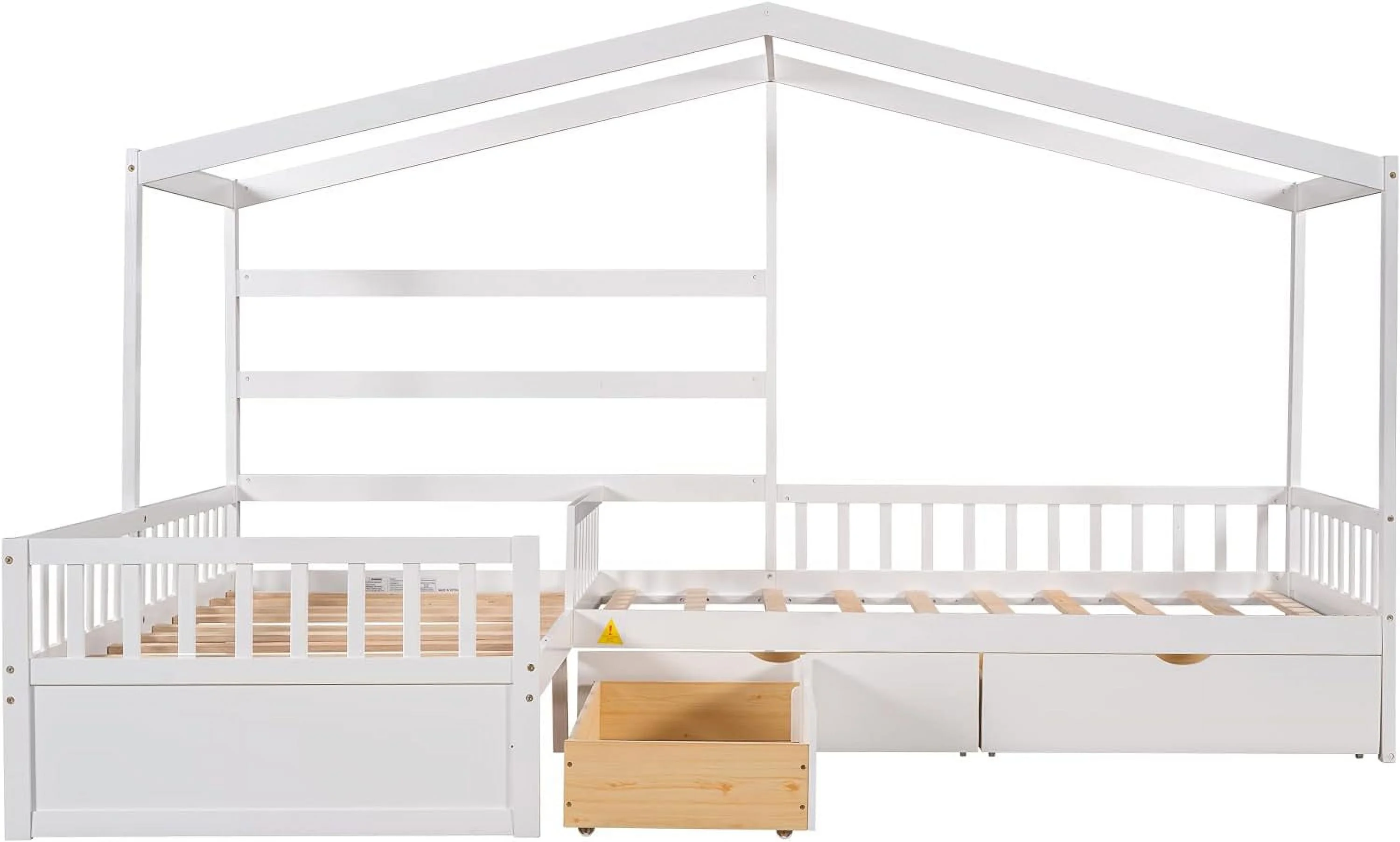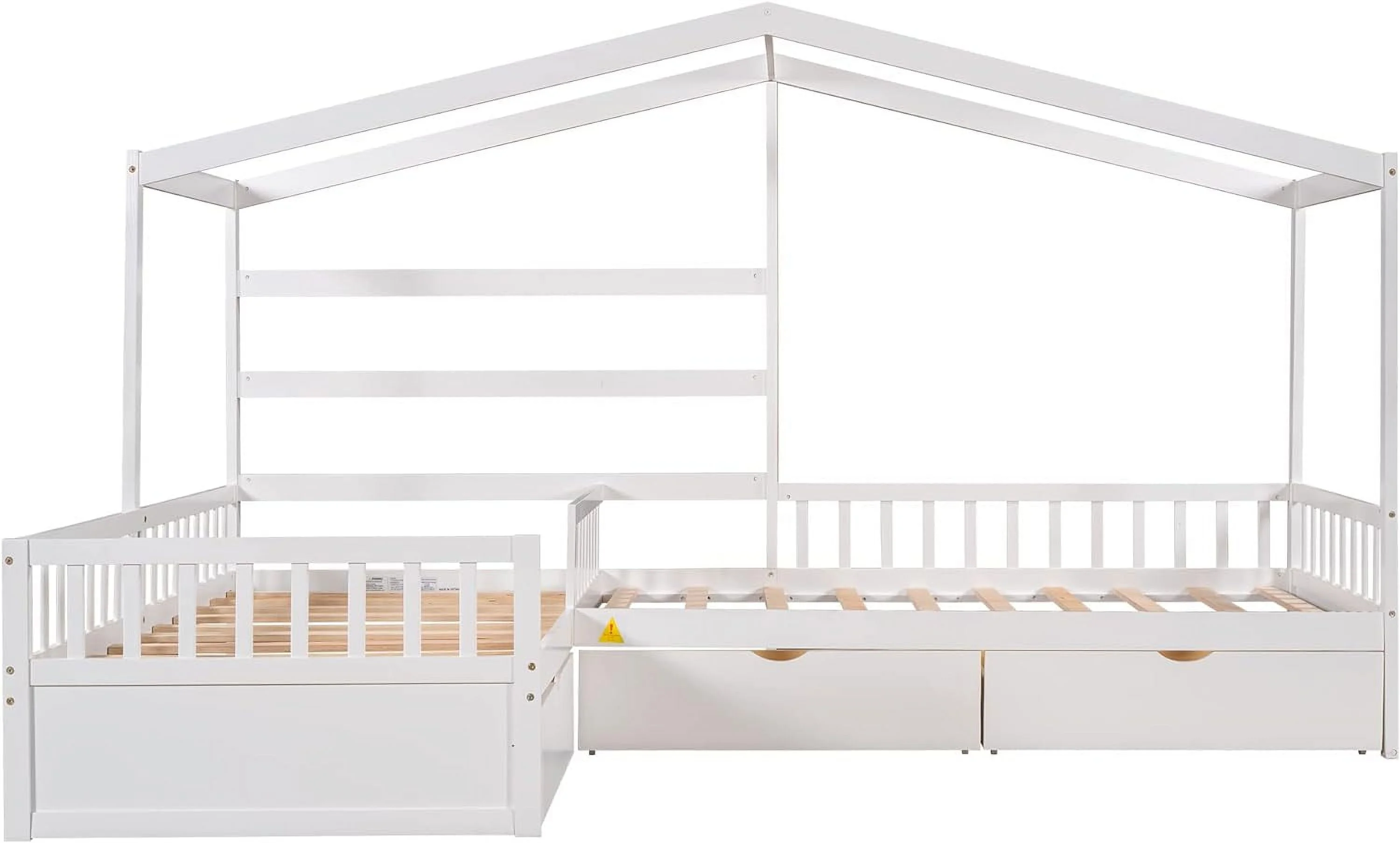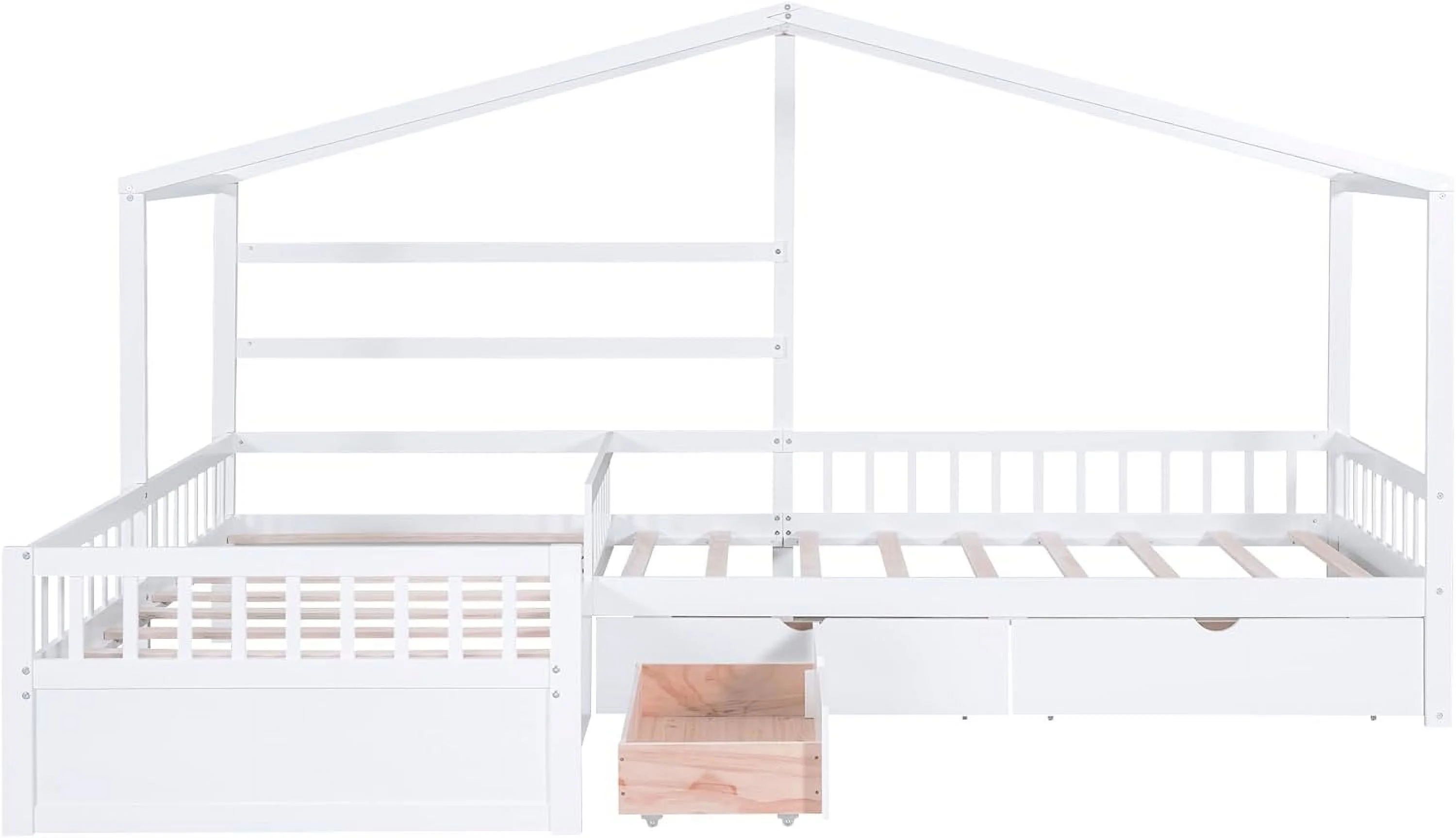 Wooden Twin Over Full Bunk Bed, Loft Bed with Playhouse, Farmhouse, Ladder and Guardrails, White( old sku: LT000027AAK )