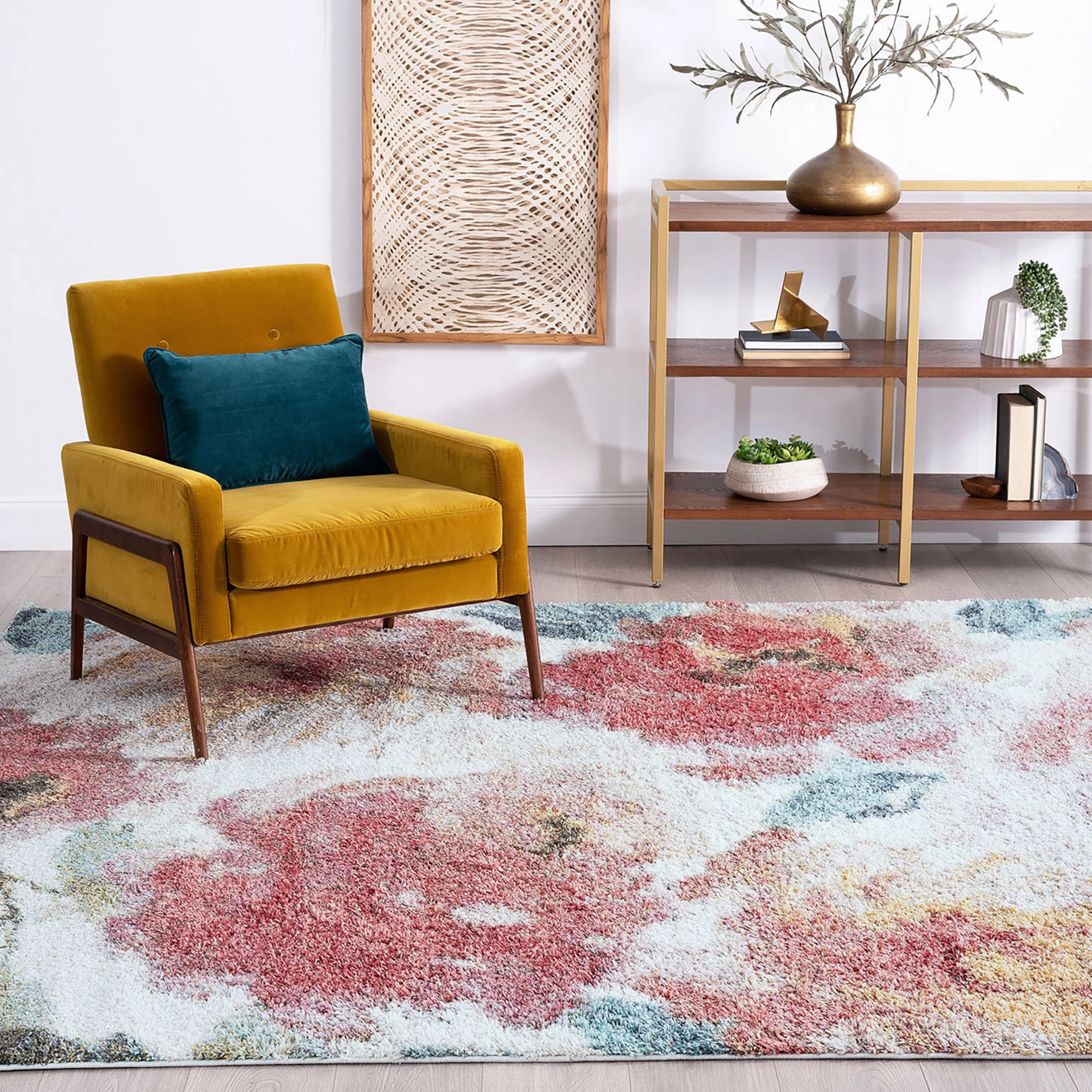 Shag 5x8 Area Rug Thick (5'3'' x 7'3'') Floral Multi-Color Living Room Easy to Clean