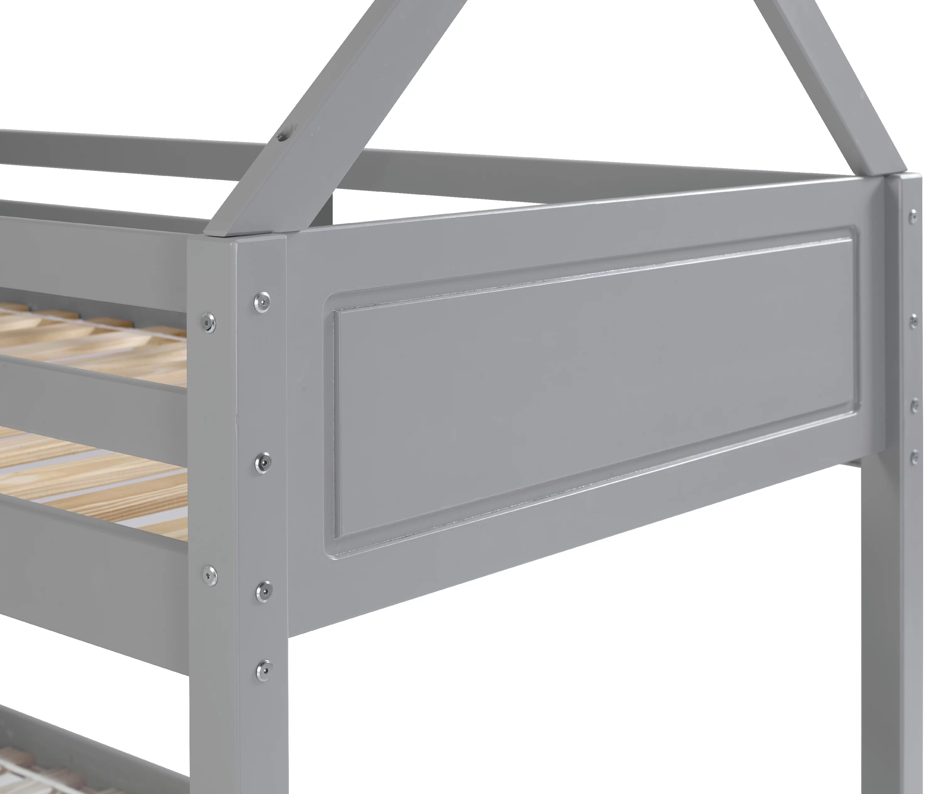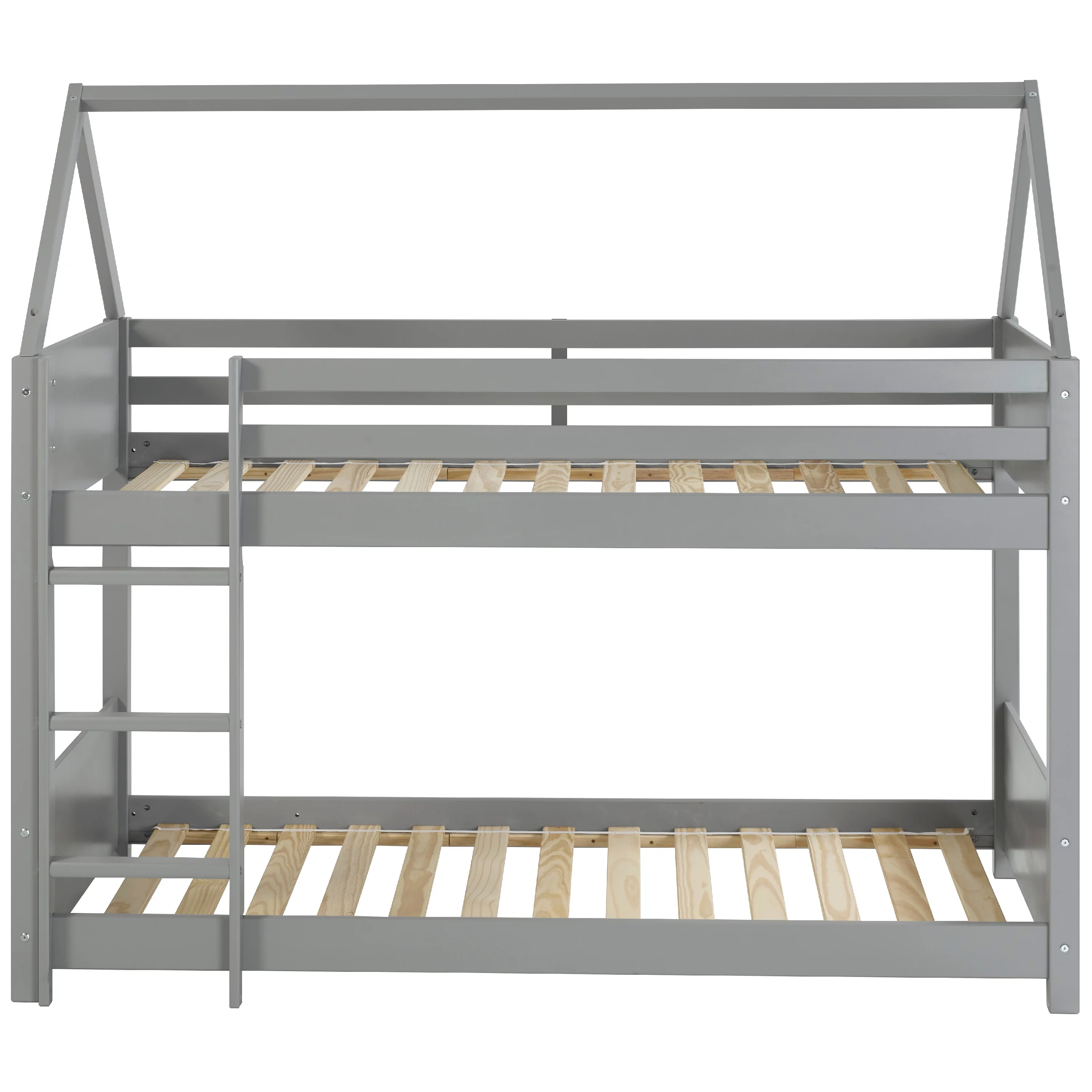 Lodgepole Kid's Twin Over Twin A-Frame Bunk Bed with Built-In Ladder, Gray