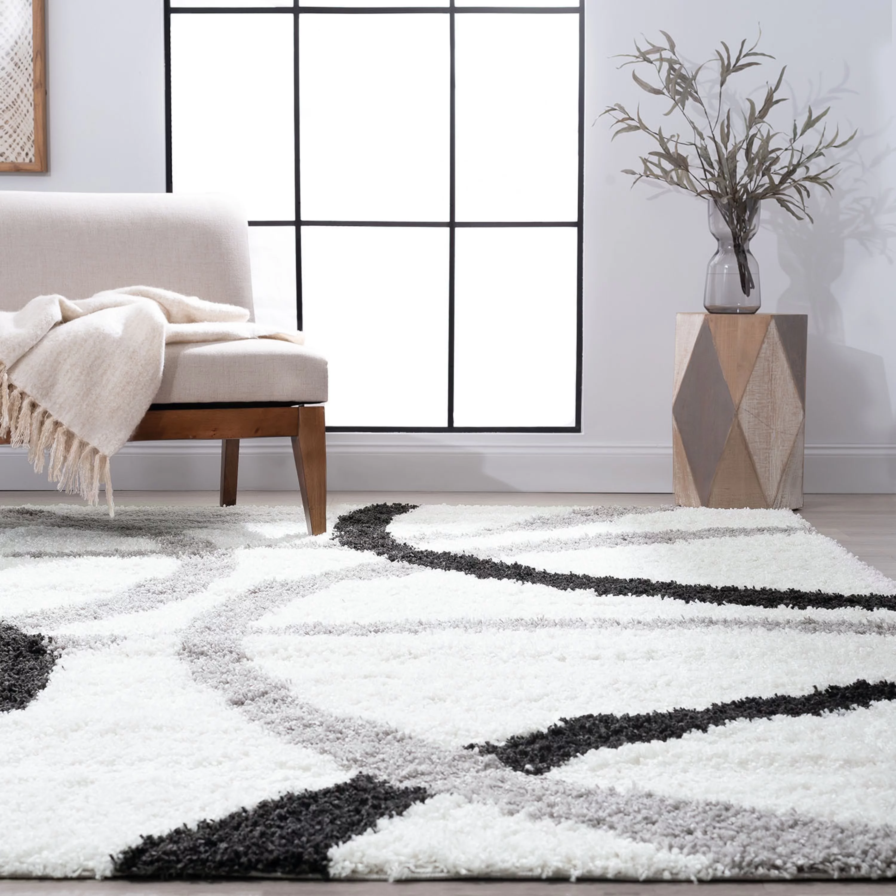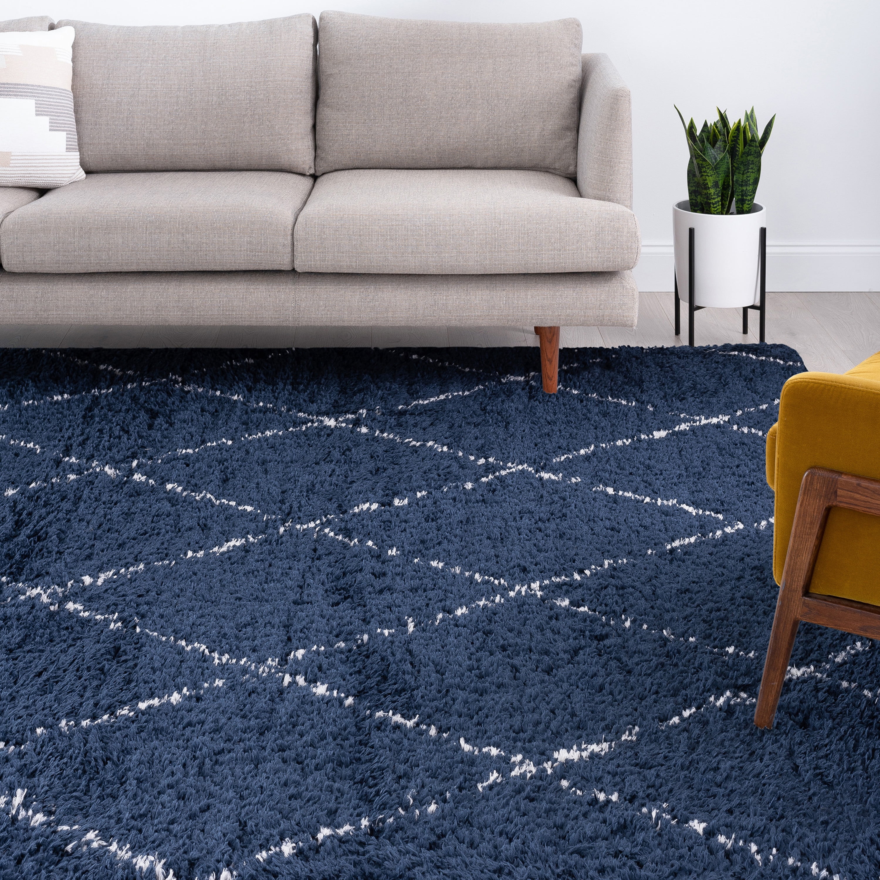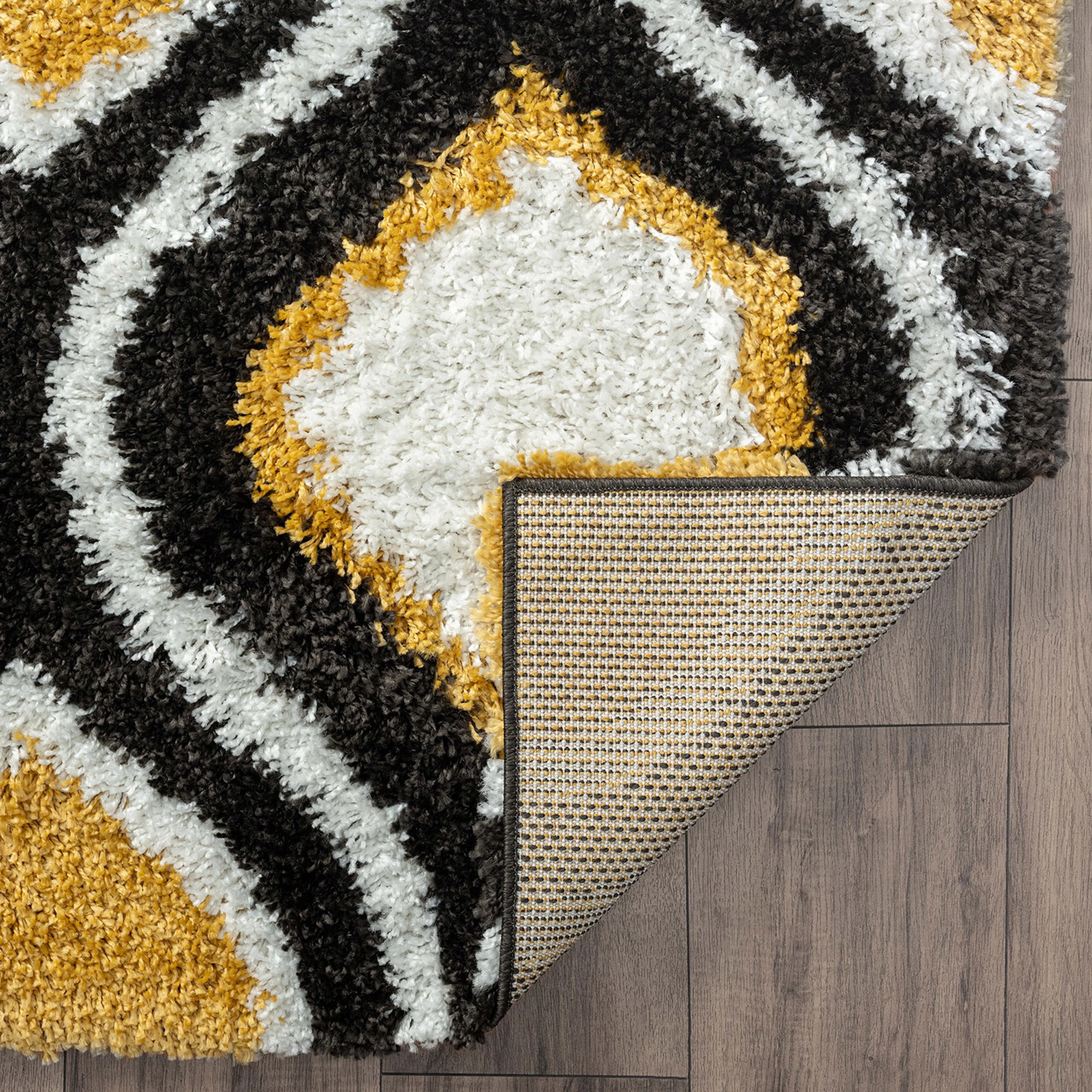 Contemporary 5x8 Area Rug Shag Thick (5'3'' x 7'3'') Geometric Gold, Dark Gray Living Room Easy to Clean