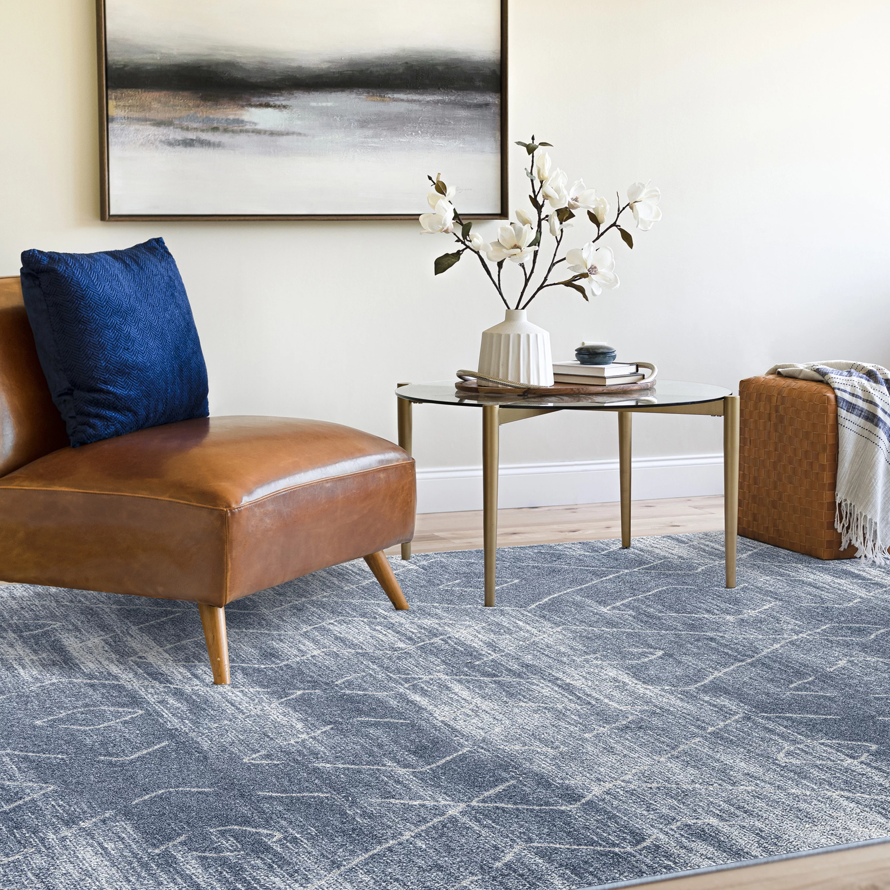 Contemporary 5x8 Area Rug (5'3'' x 7'3'') Abstract Blue, Blue Living Room Easy to Clean