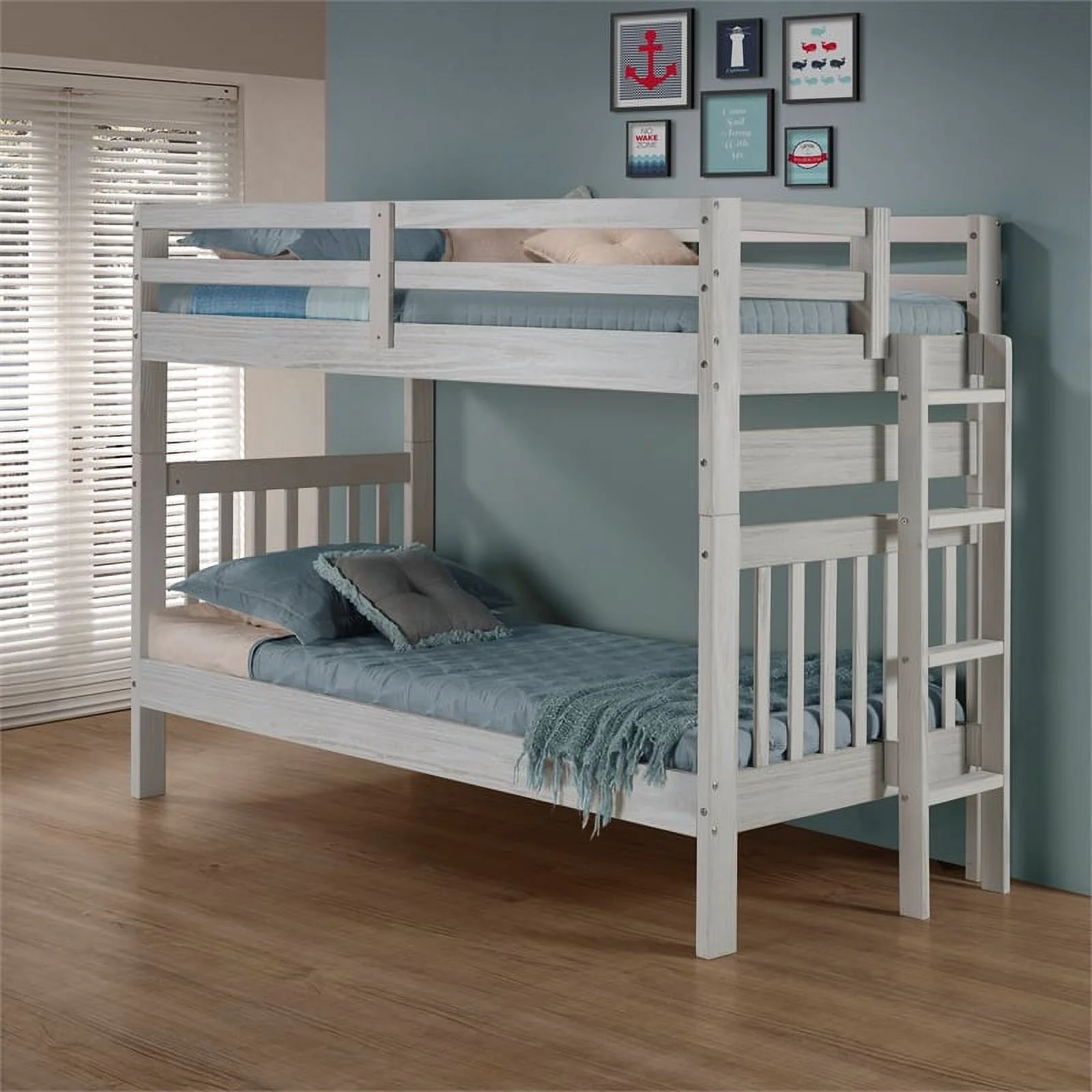 My Bed Now Olympus Twin-over-Twin Solid Wood Bunk Bed with Ladder in White Mist