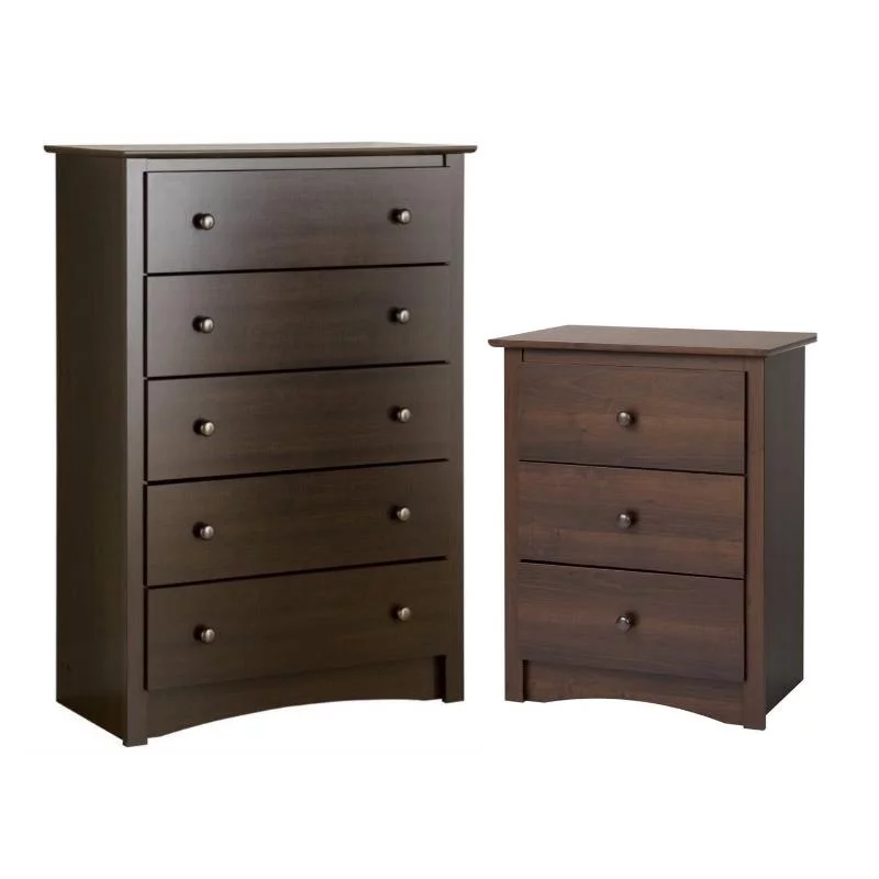 Home Square 2-Piece Set with 5-Drawer Chest and 3-Drawer Tall Nightstand