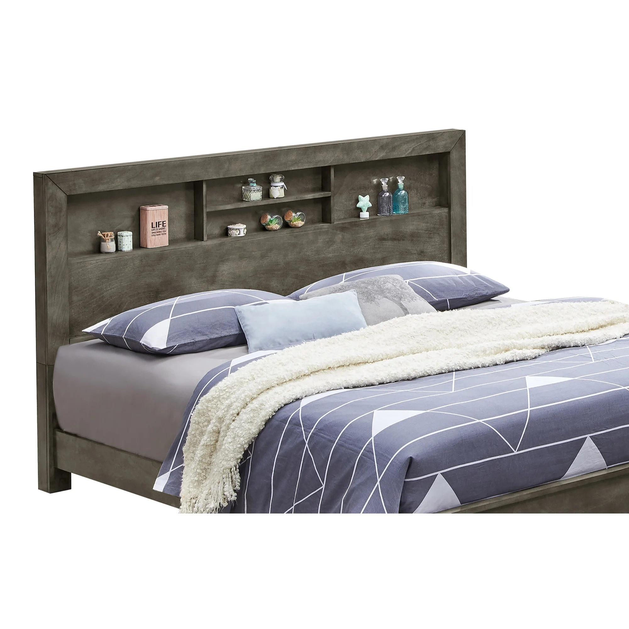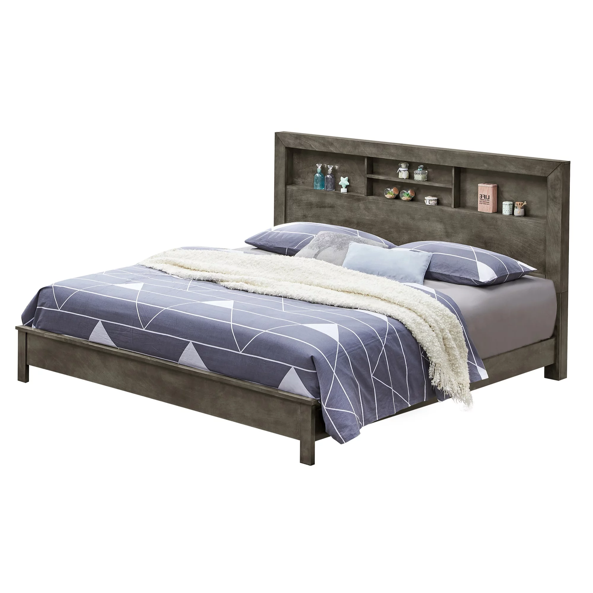 Passion Furniture Burlington Gray King Platform Bed with Storage Shelves