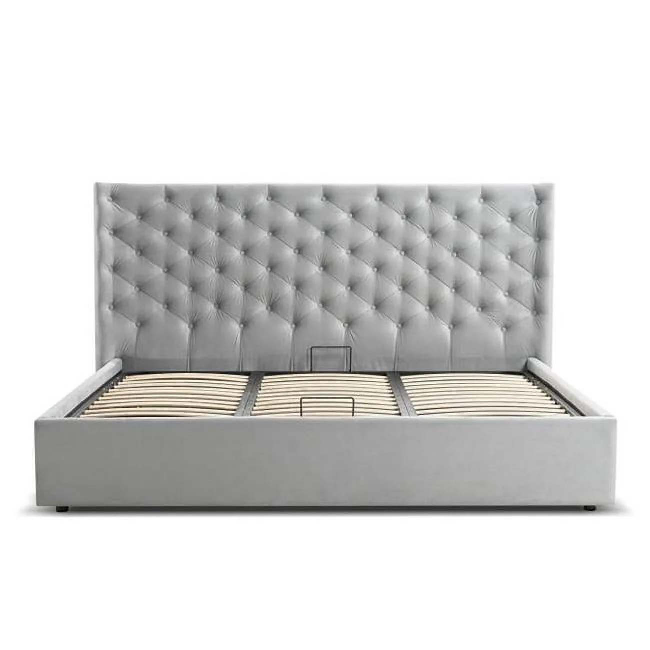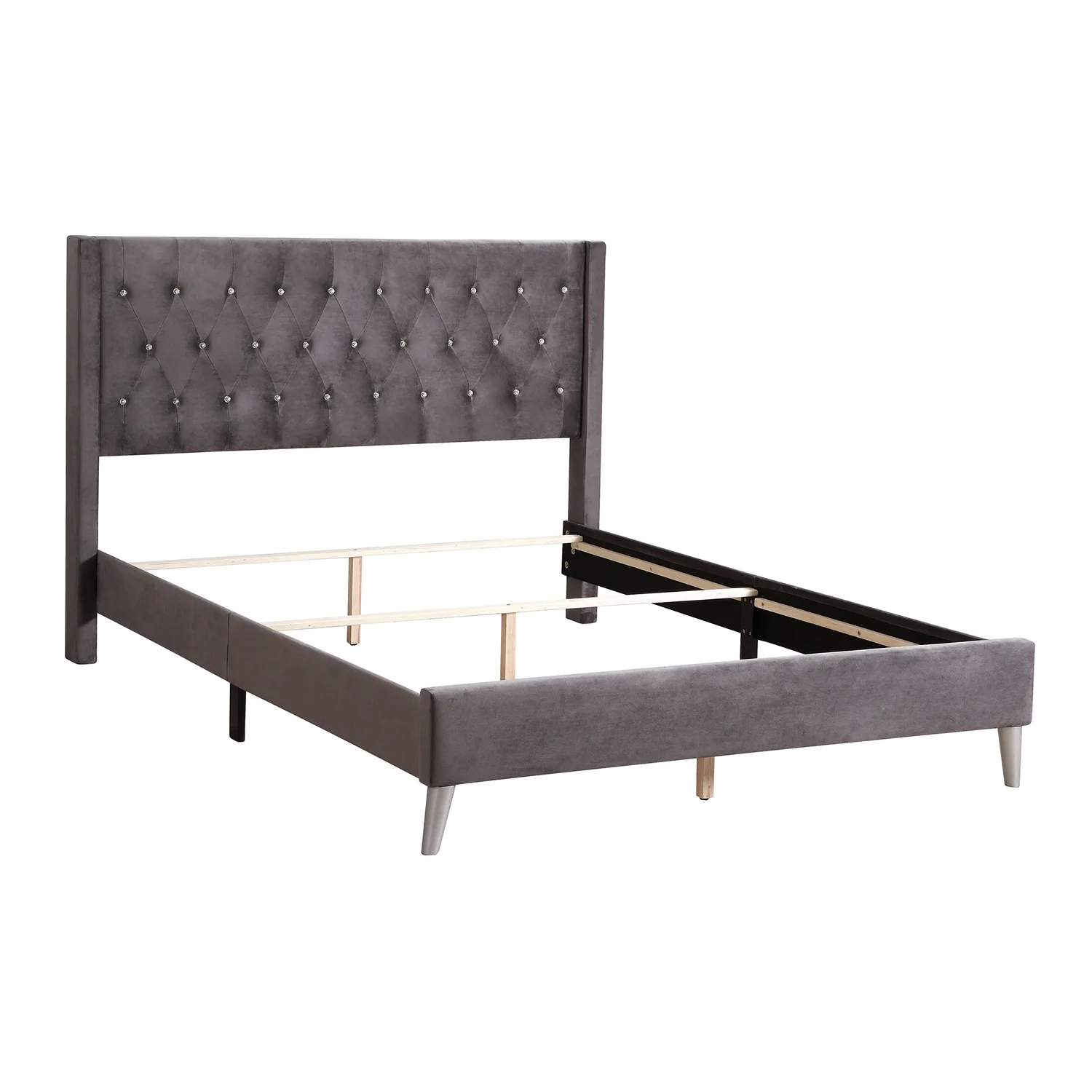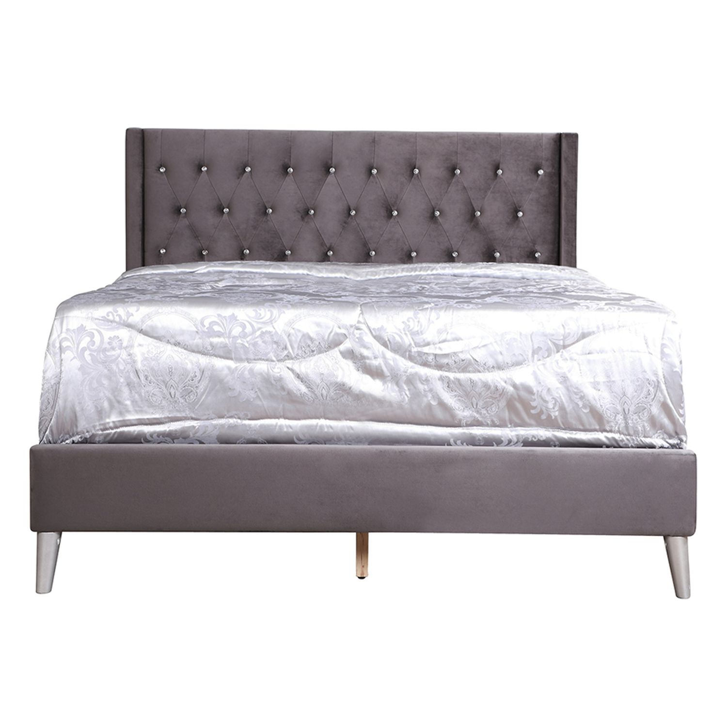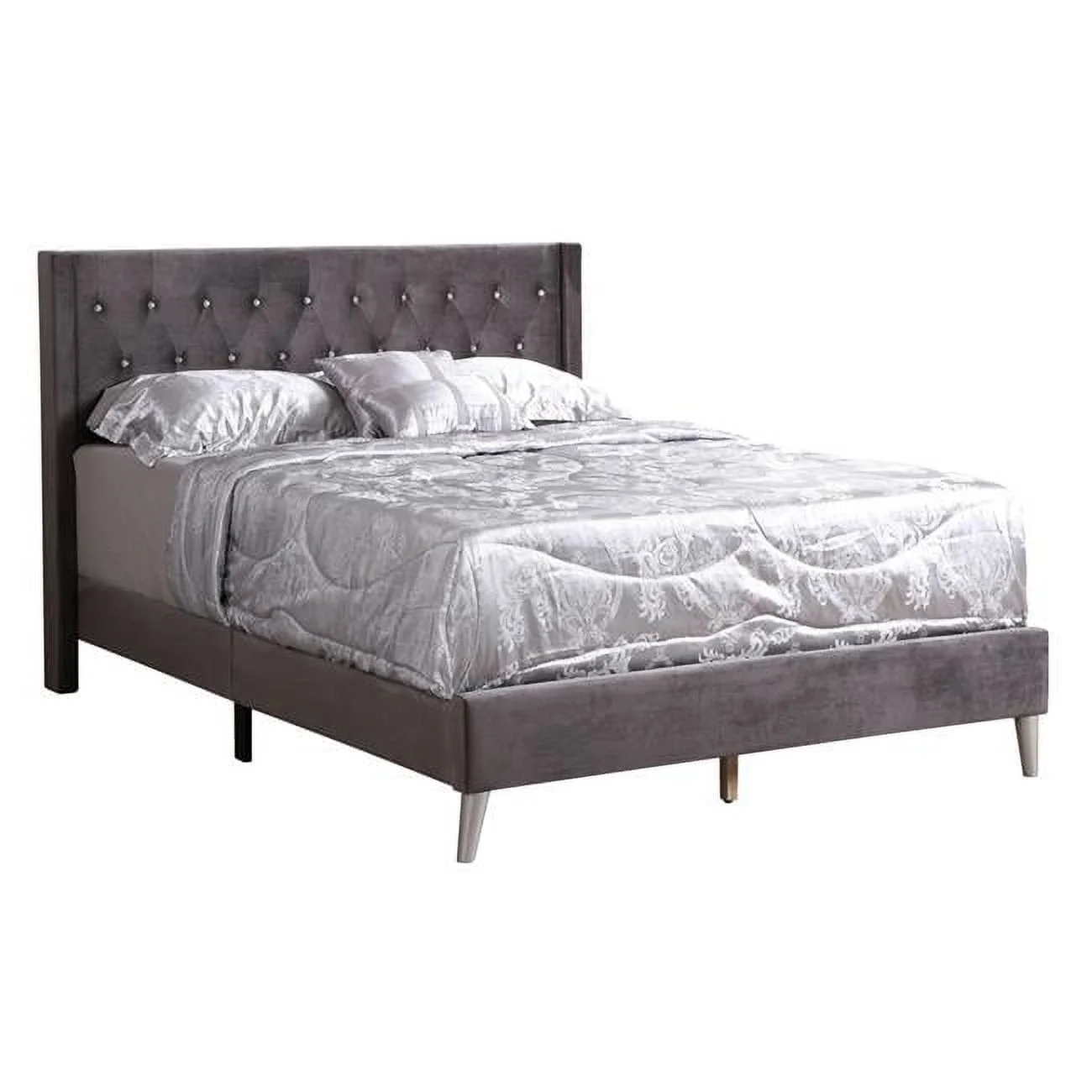 Casabianca Home CB-A100KGRY Parker King Size Bed, Gray Velvet Fabric Tufted Headboard with Storage