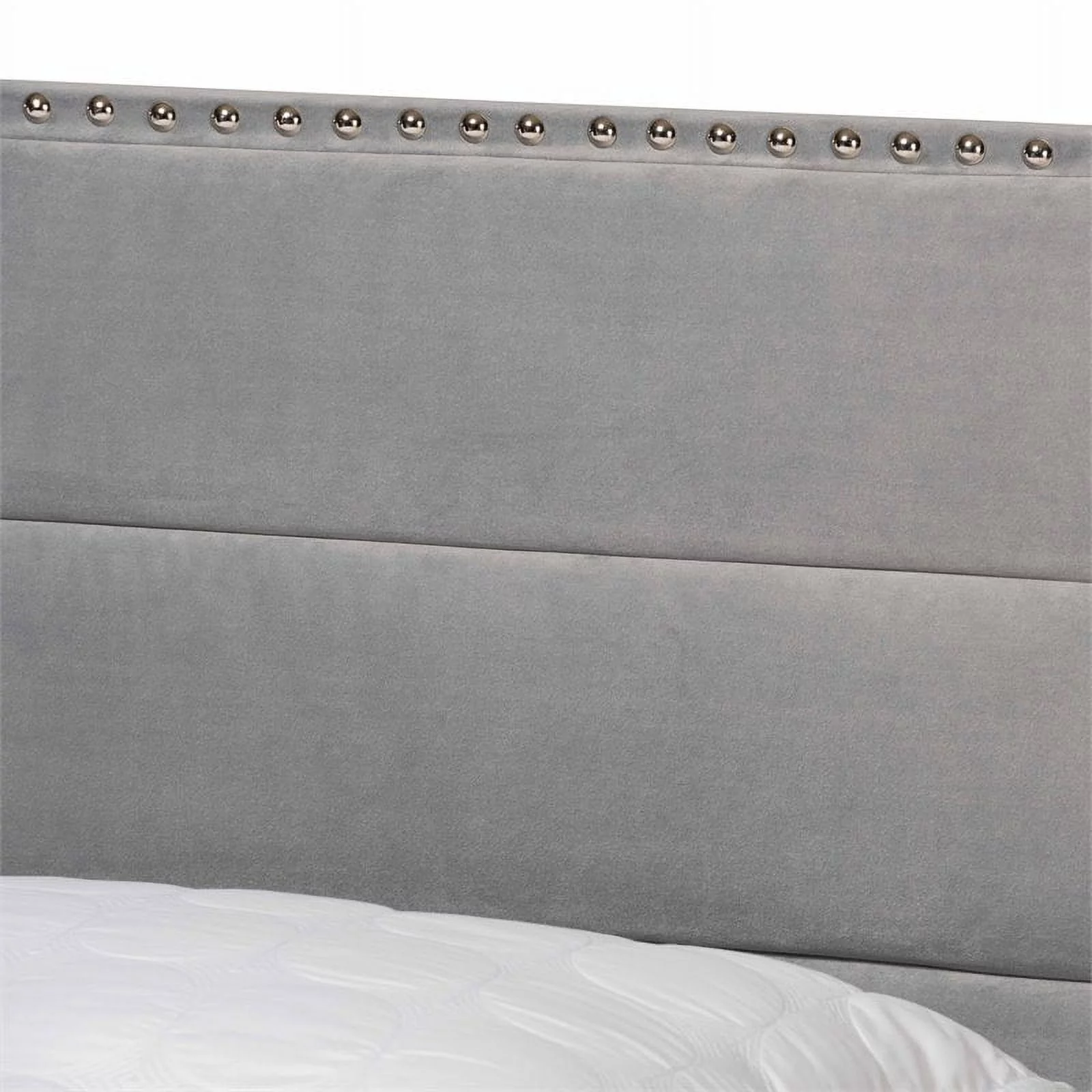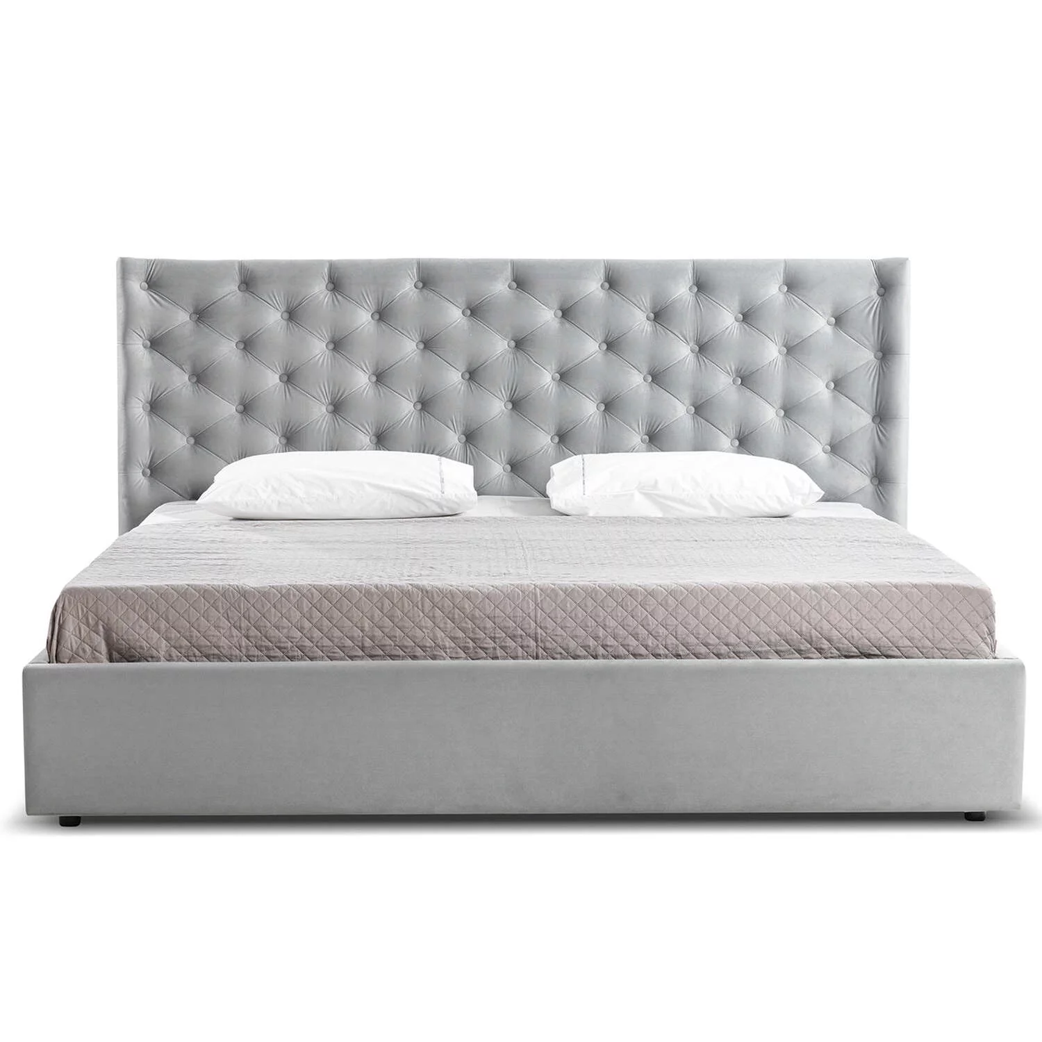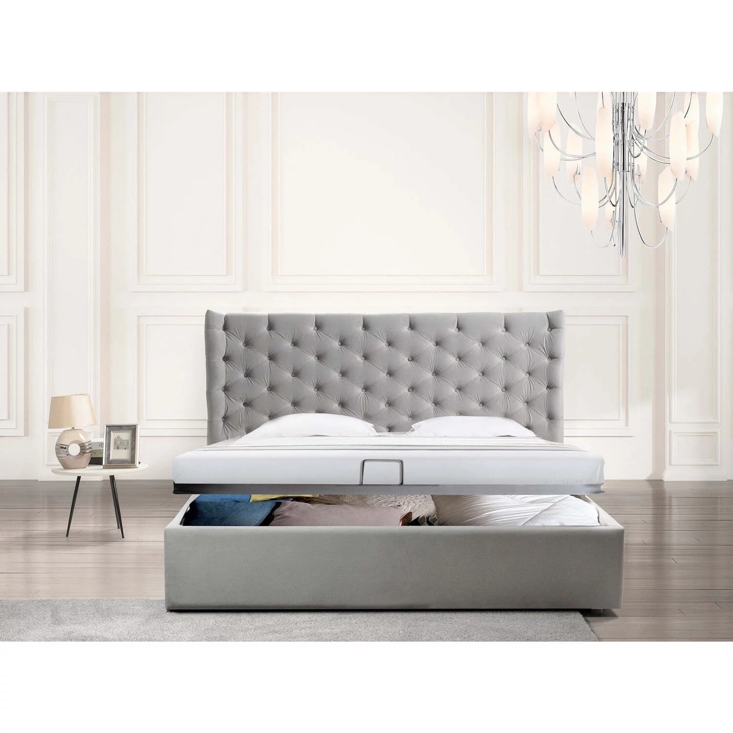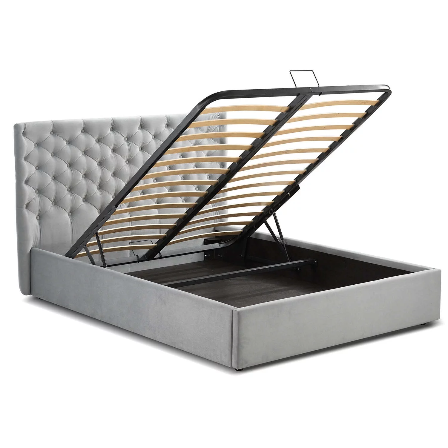 Casabianca Home CB-A100KGRY Parker King Size Bed, Gray Velvet Fabric Tufted Headboard with Storage