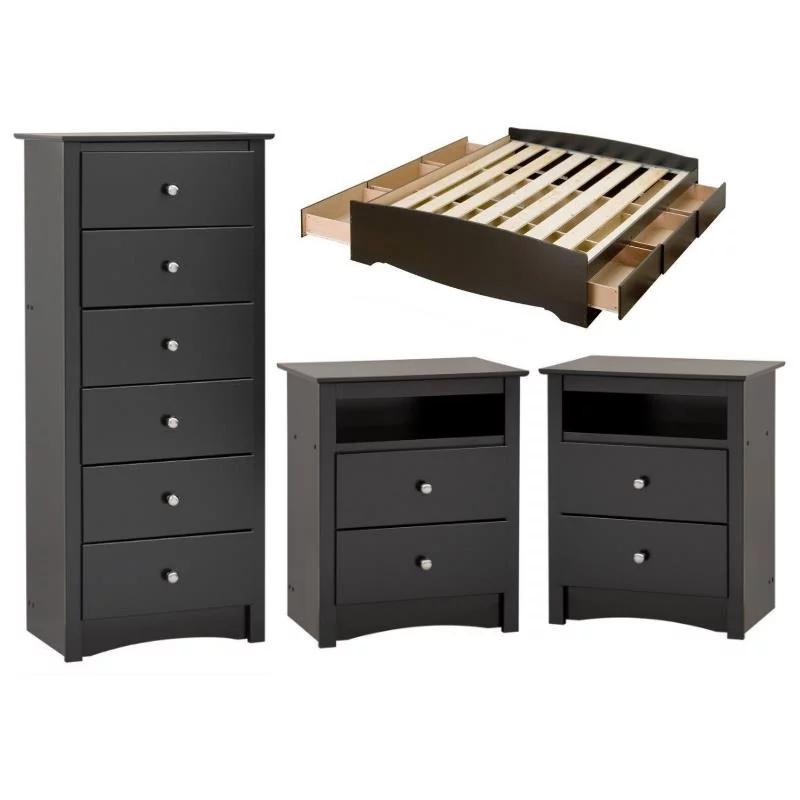 Home Square 4-Piece Set with Tall Twin Storage 5-Drawer Chest & 2 Nightstands