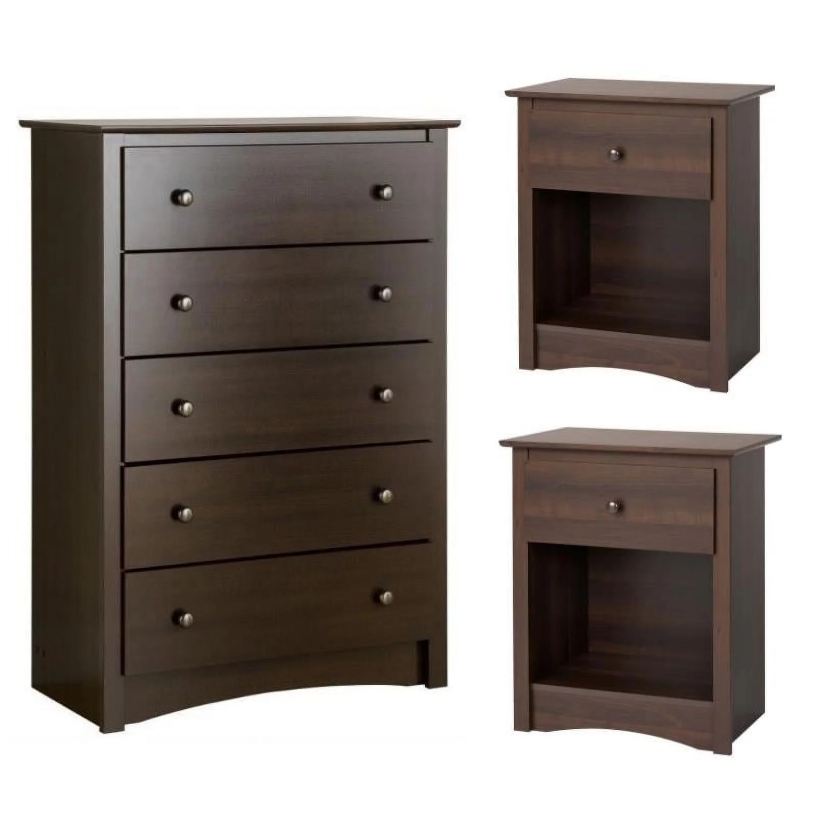Home Square 3-Piece Set with 2 Tall Nightstands and 5 Drawer Chest in Espresso