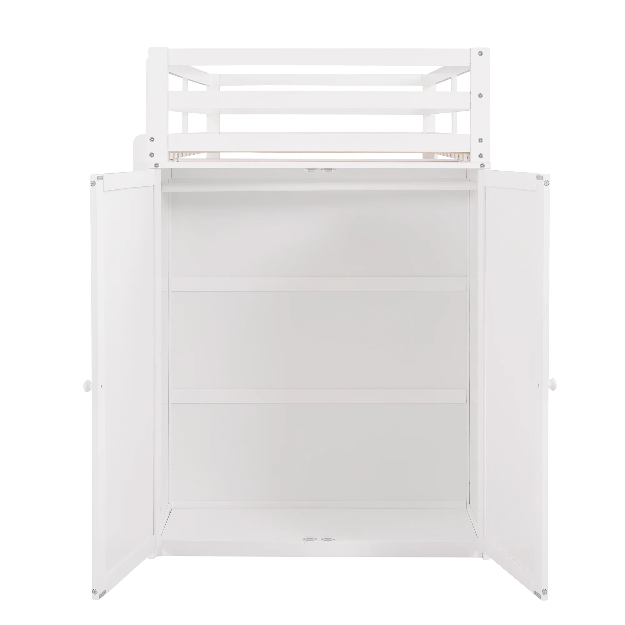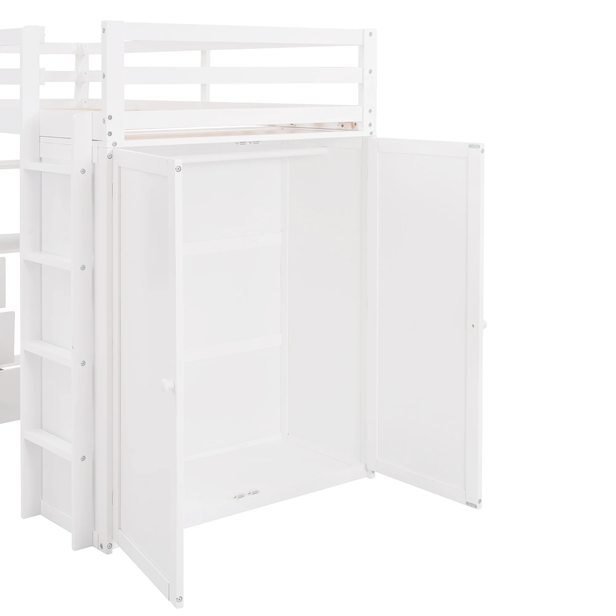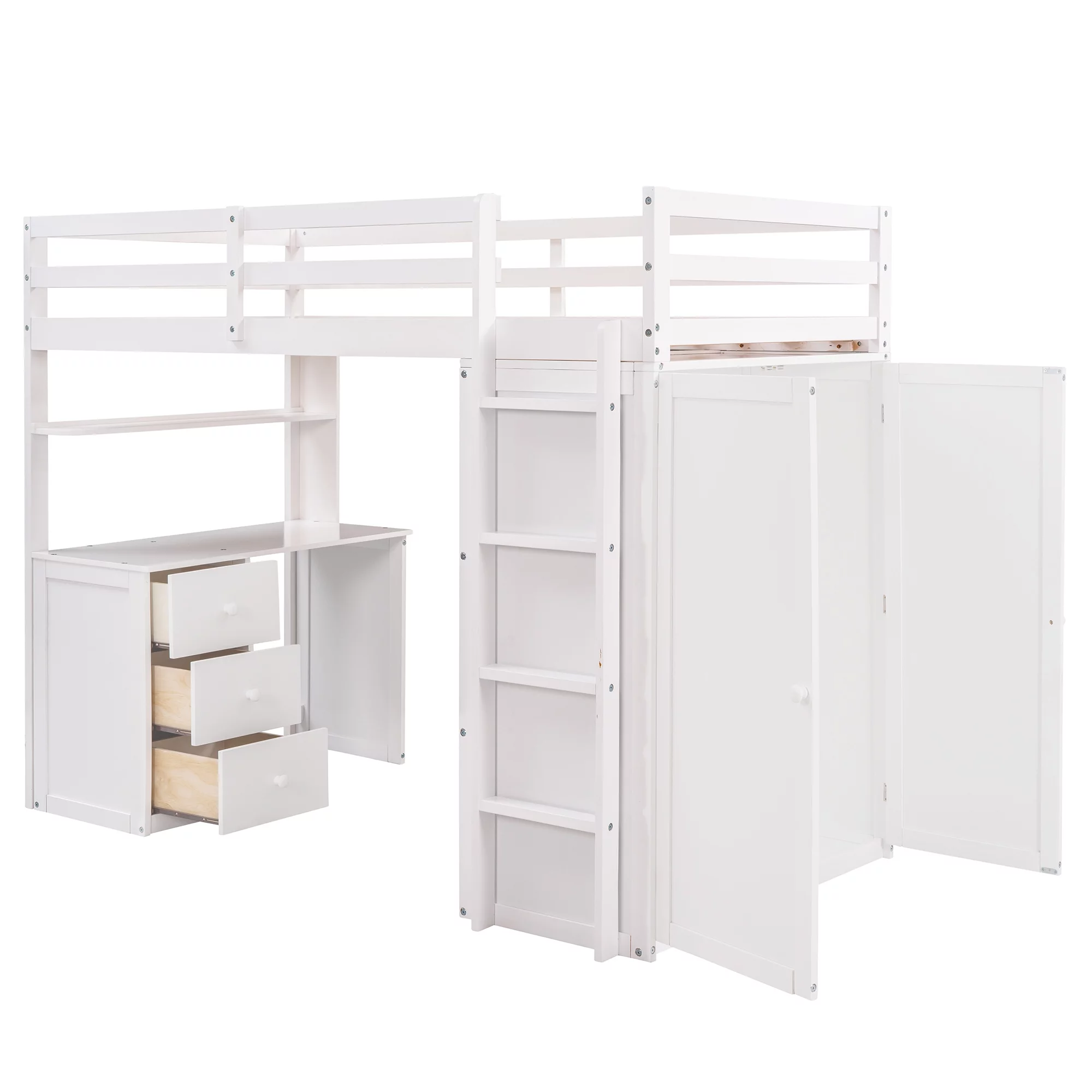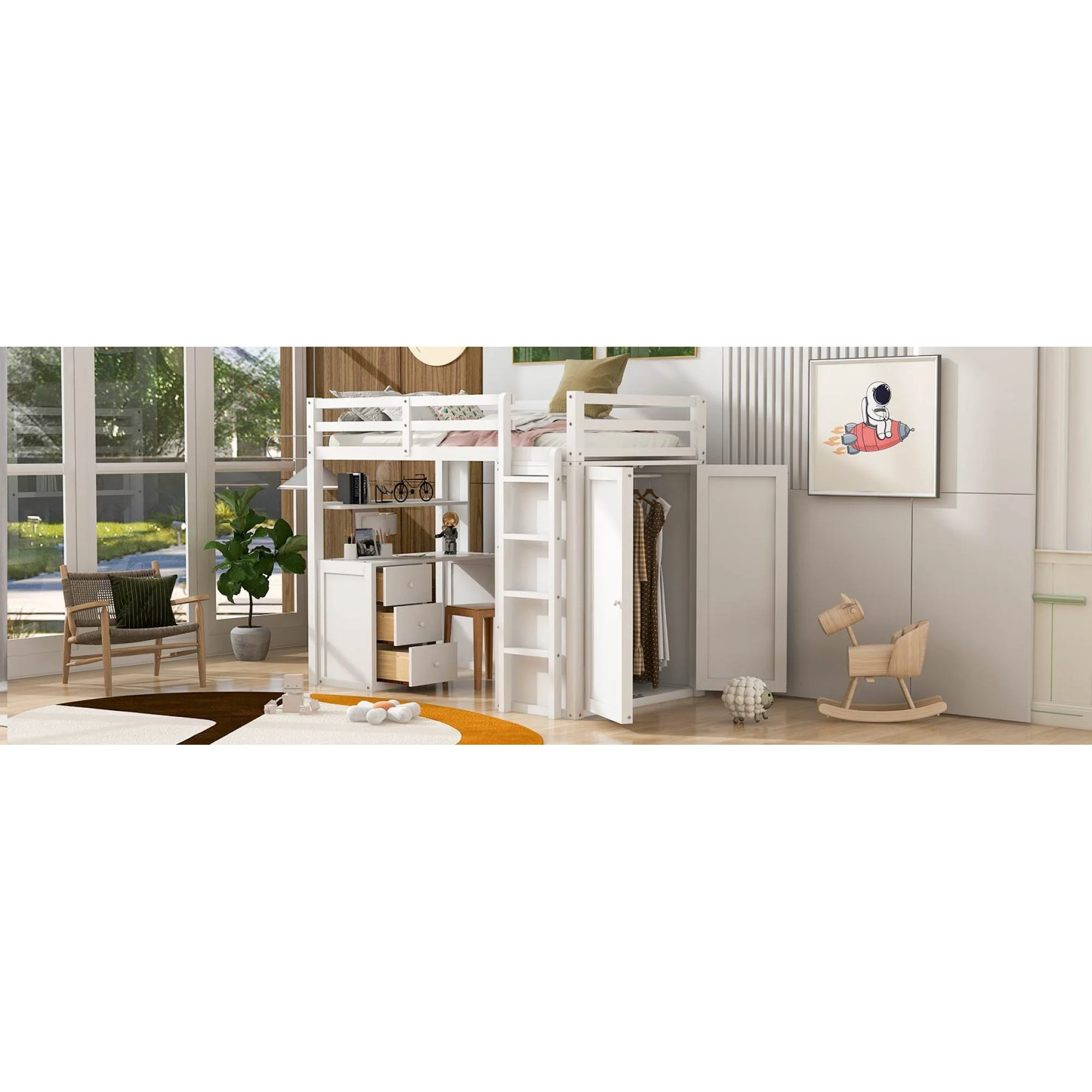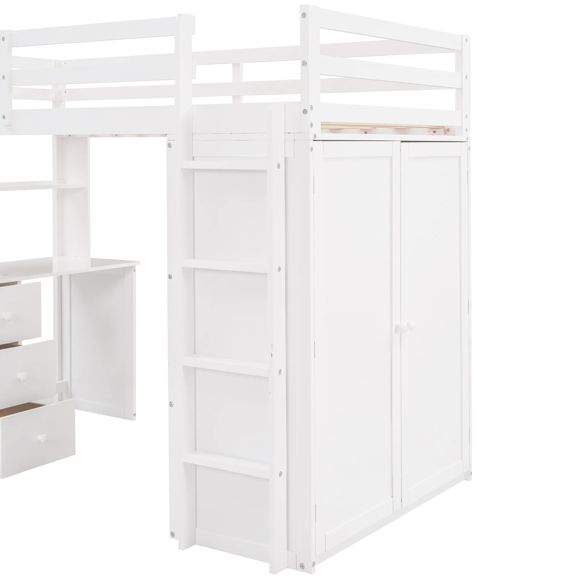Dawn Whisper Twin size Loft Bed with Drawers, Desk and Wardrobe, White