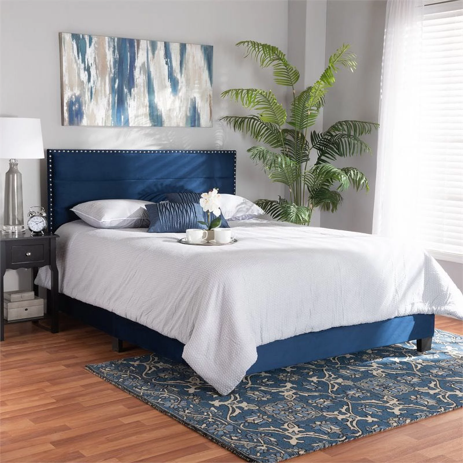 Passion Furniture Julie Tufted Upholstered Low Profile Panel Bed, Light Navy Blue - Full Size