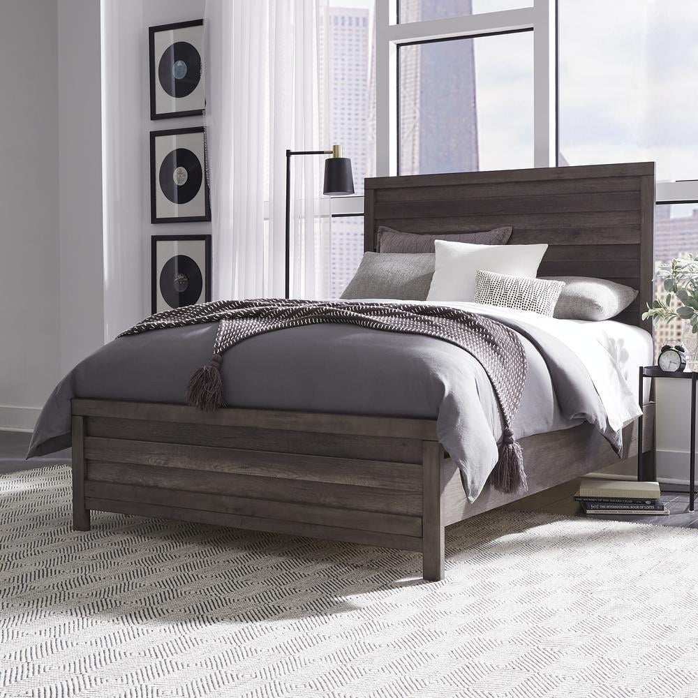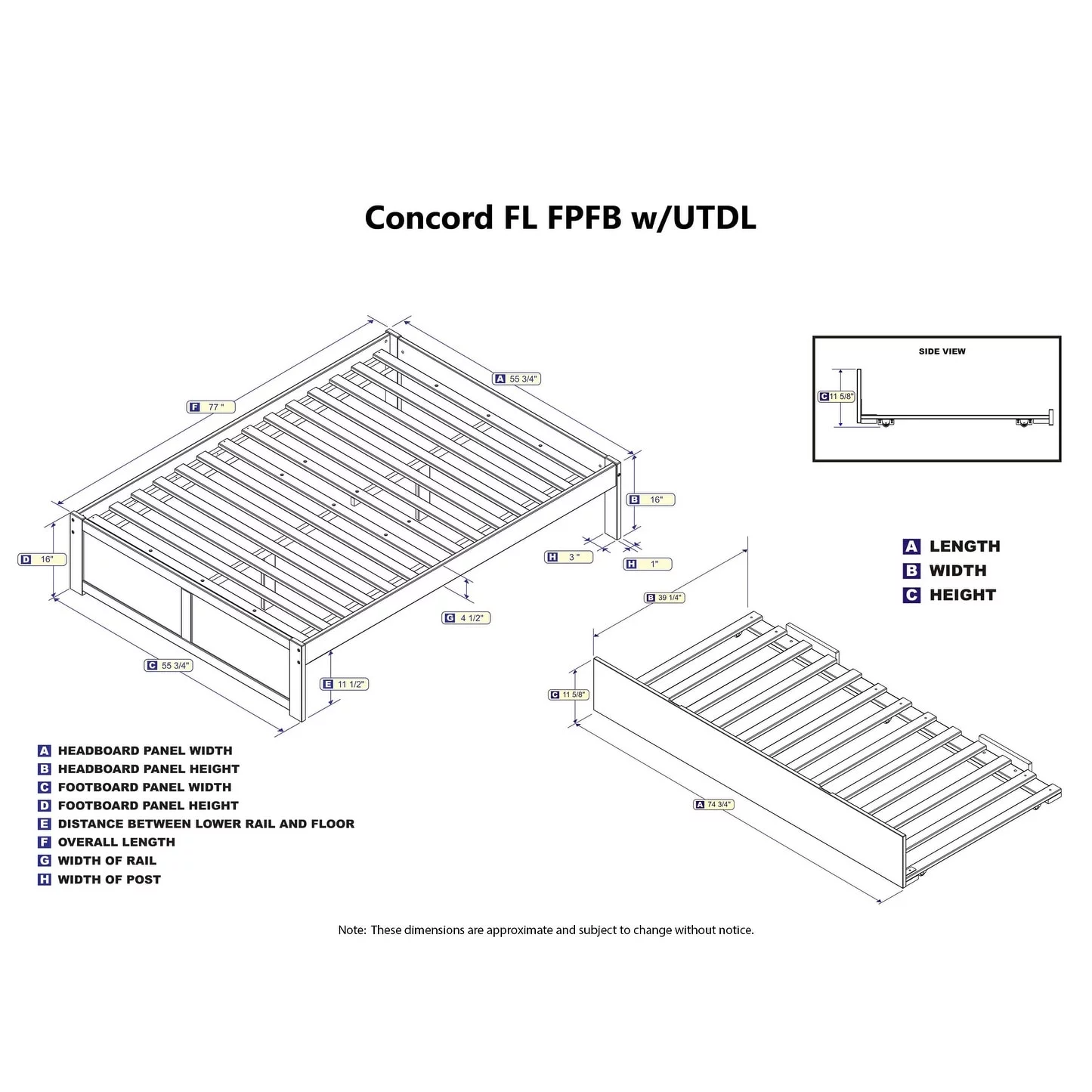 Concord Full Platform Bed with Flat Panel Foot Board and Full Size Urban Trundle Bed in Grey