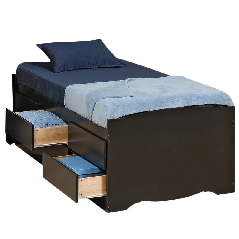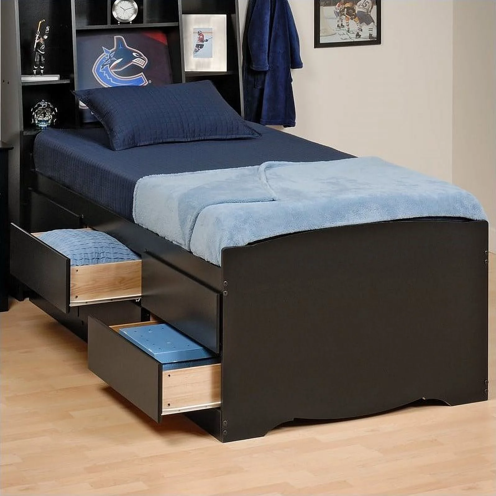 Passion Furniture Burlington Black King Platform Bed with Storage Shelves