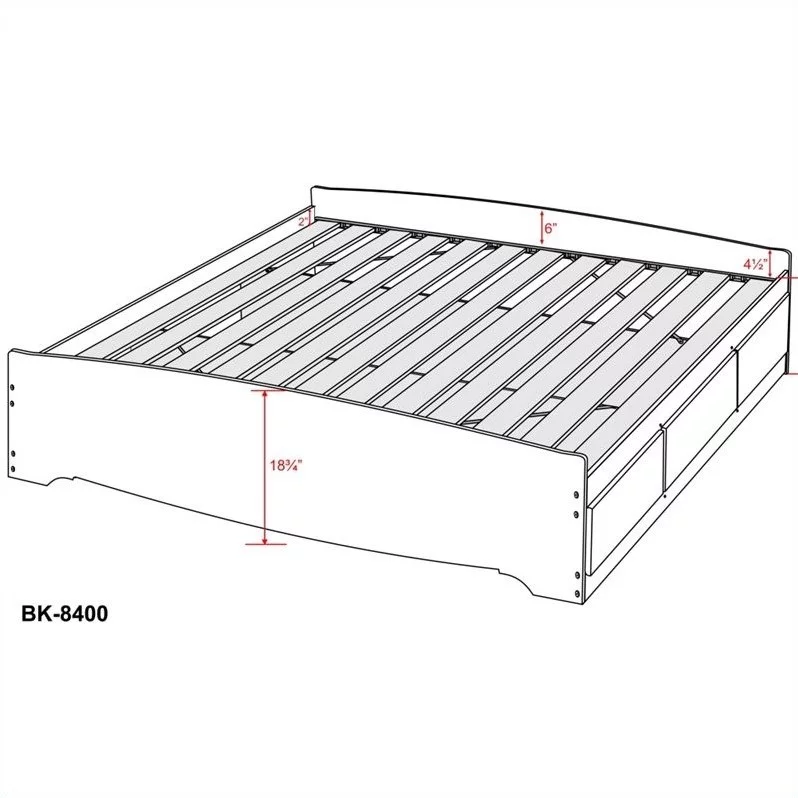 Passion Furniture Burlington Platform Bed with Storage Shelves, White - King Size