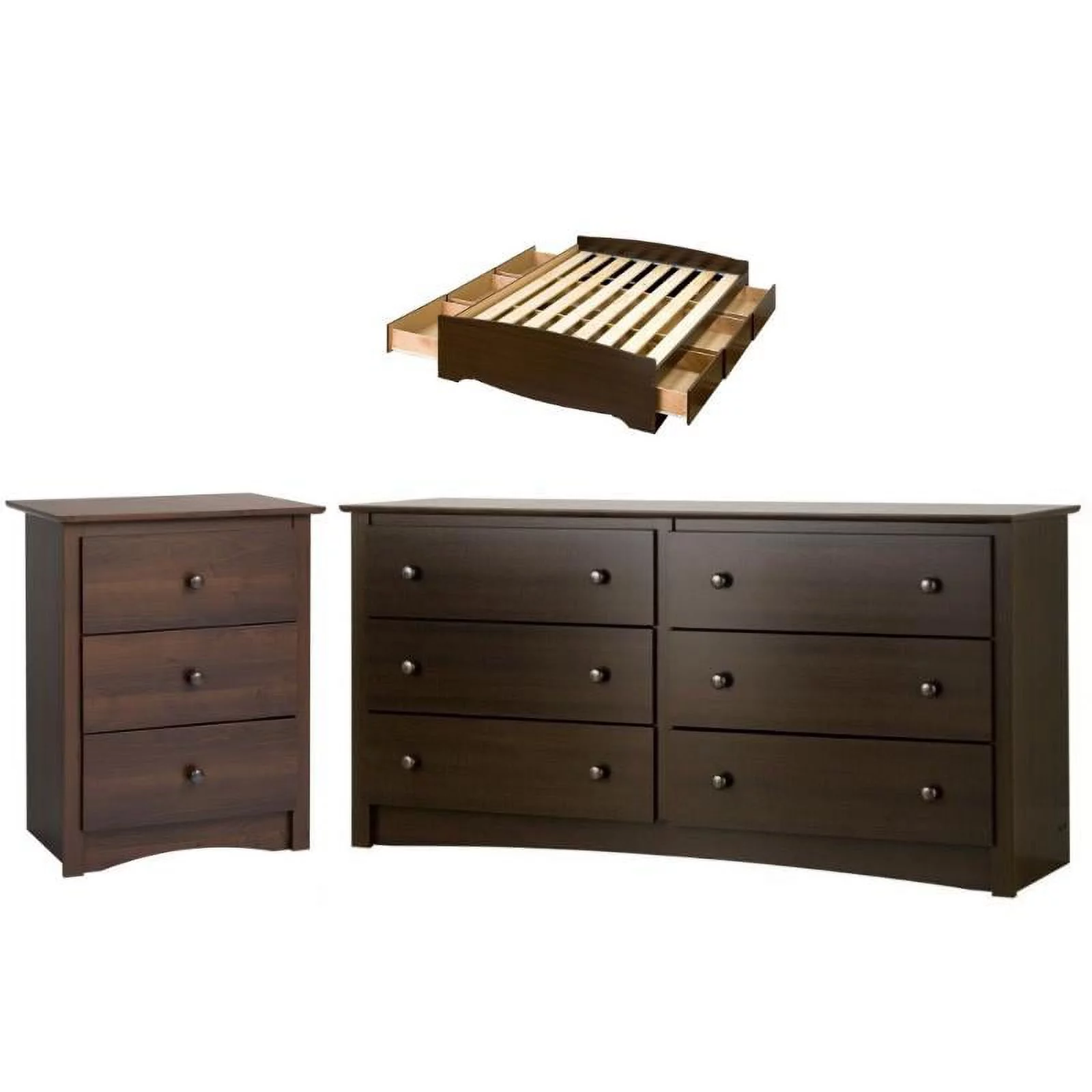 Home Square 3-Piece Set with King Storage Bed 6-Drawer Chest & Tall Nightstand